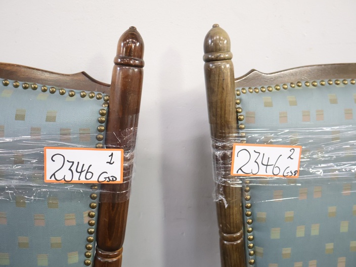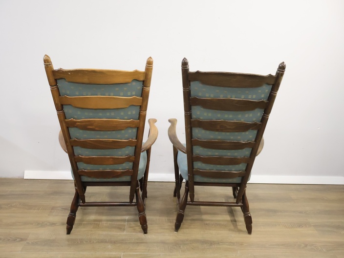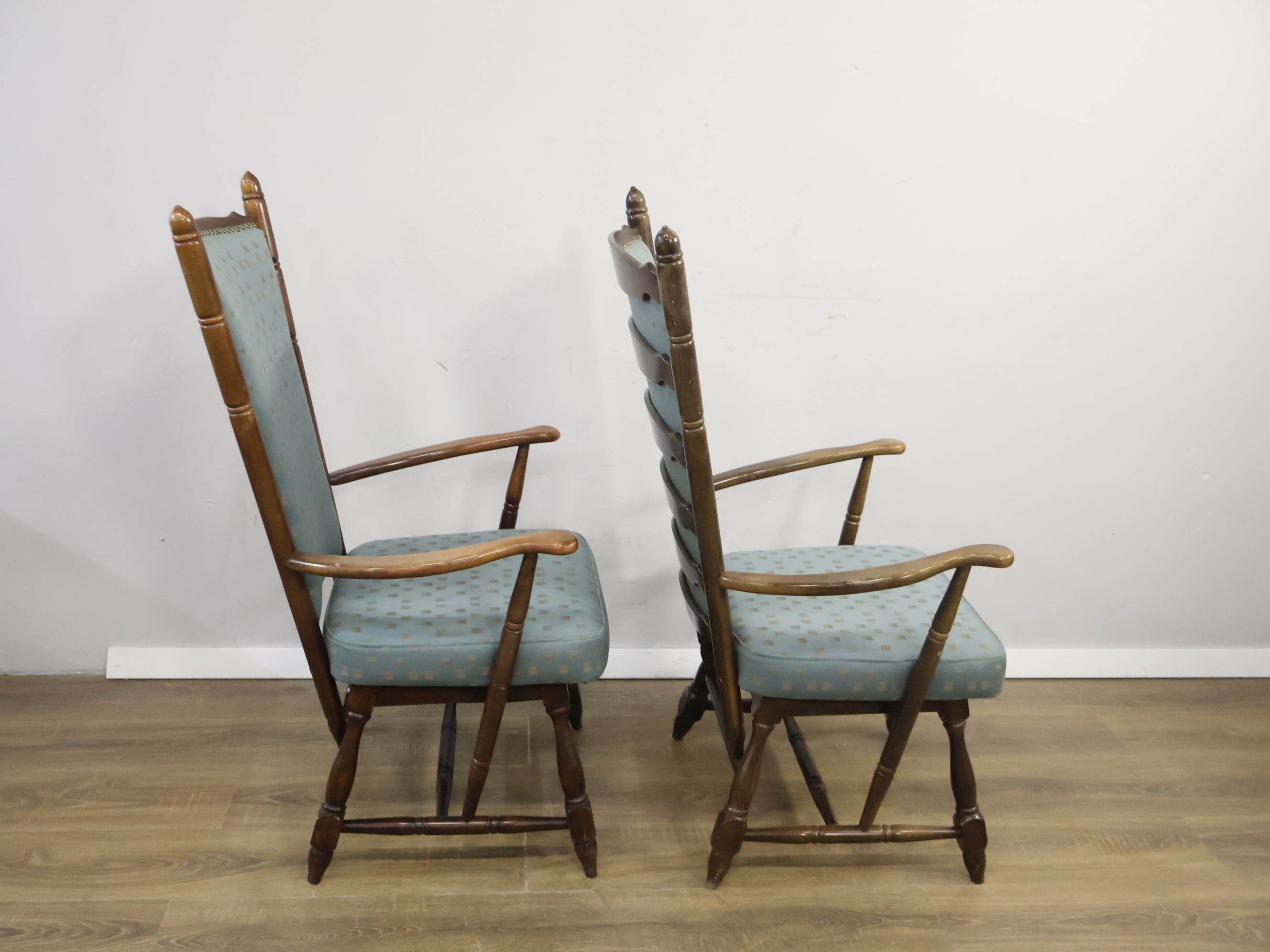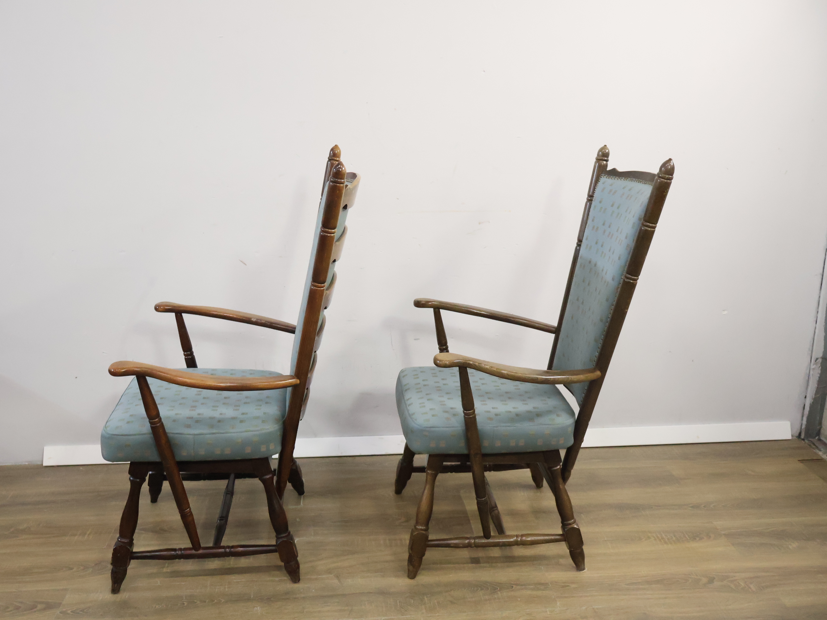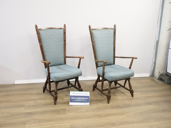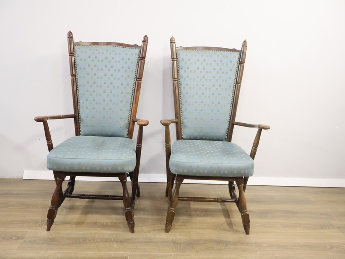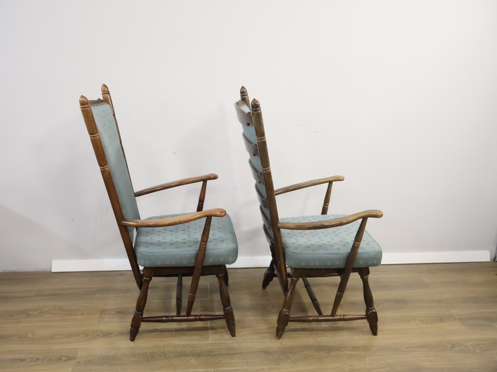 Set van 2 Houten Lichtblauwe Troon-Armstoelen'