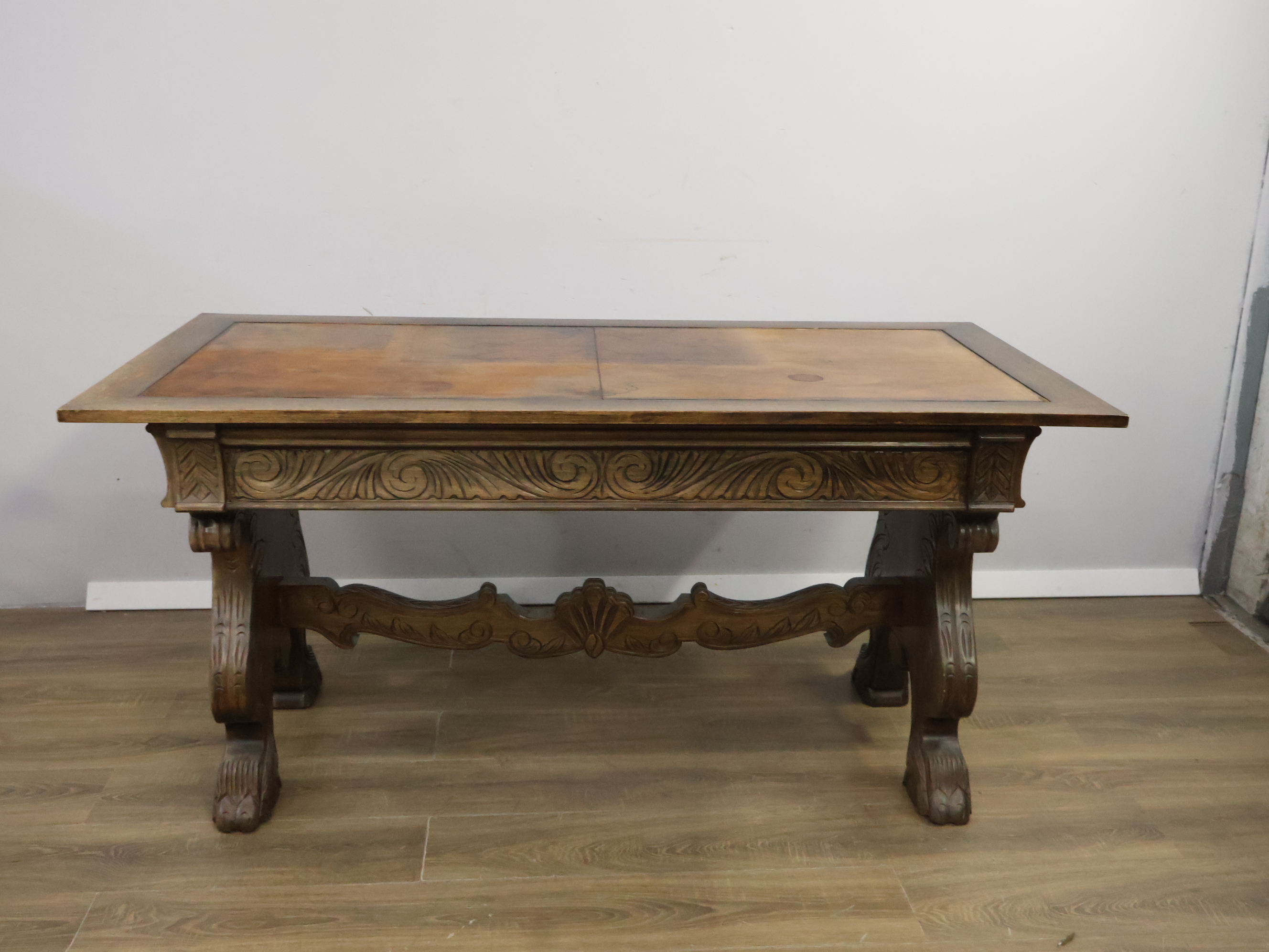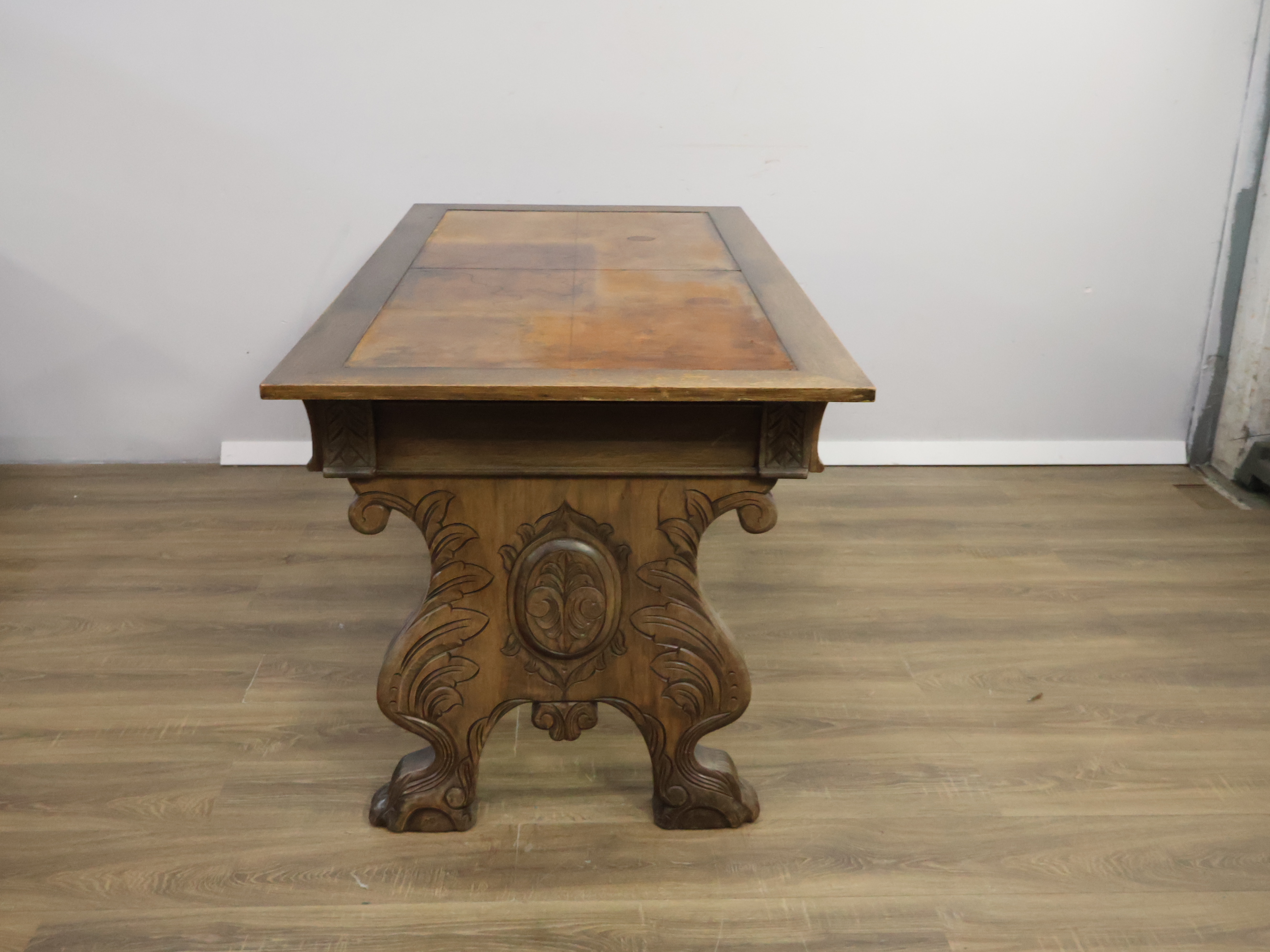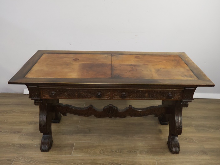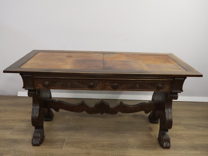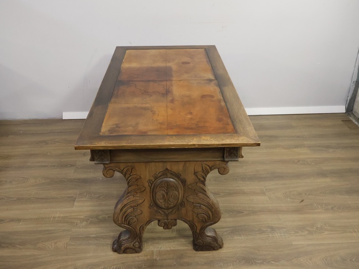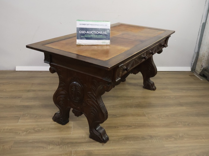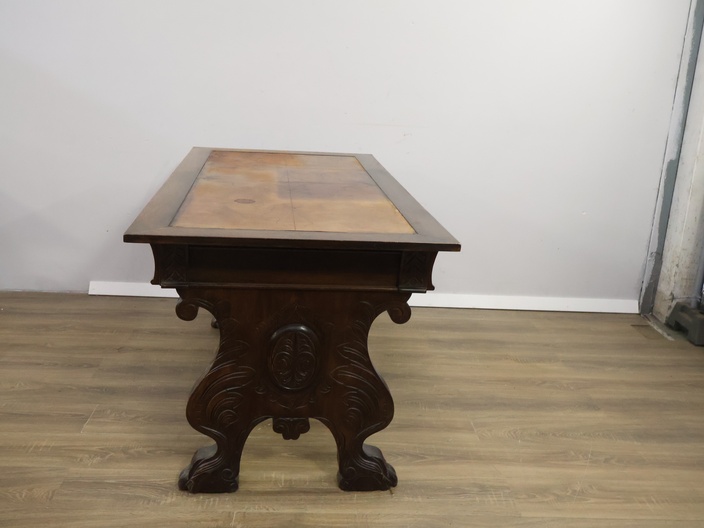 Antiek Massiefhouten Schrijftafel - Met Lederen Inleg'