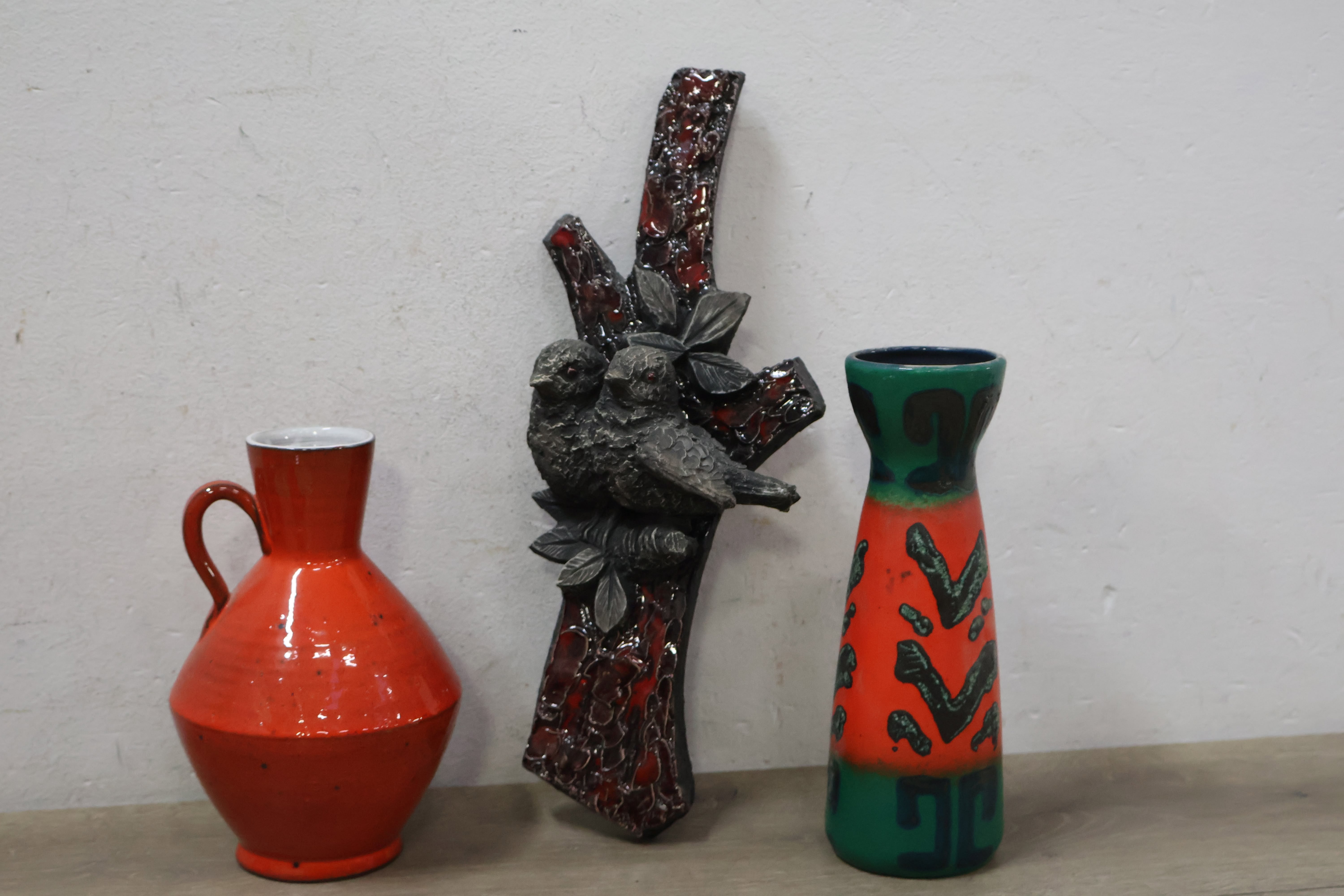 Jaren'60 Lovebirds Wandreliëf met 9 Fatlava-stijl Stukken