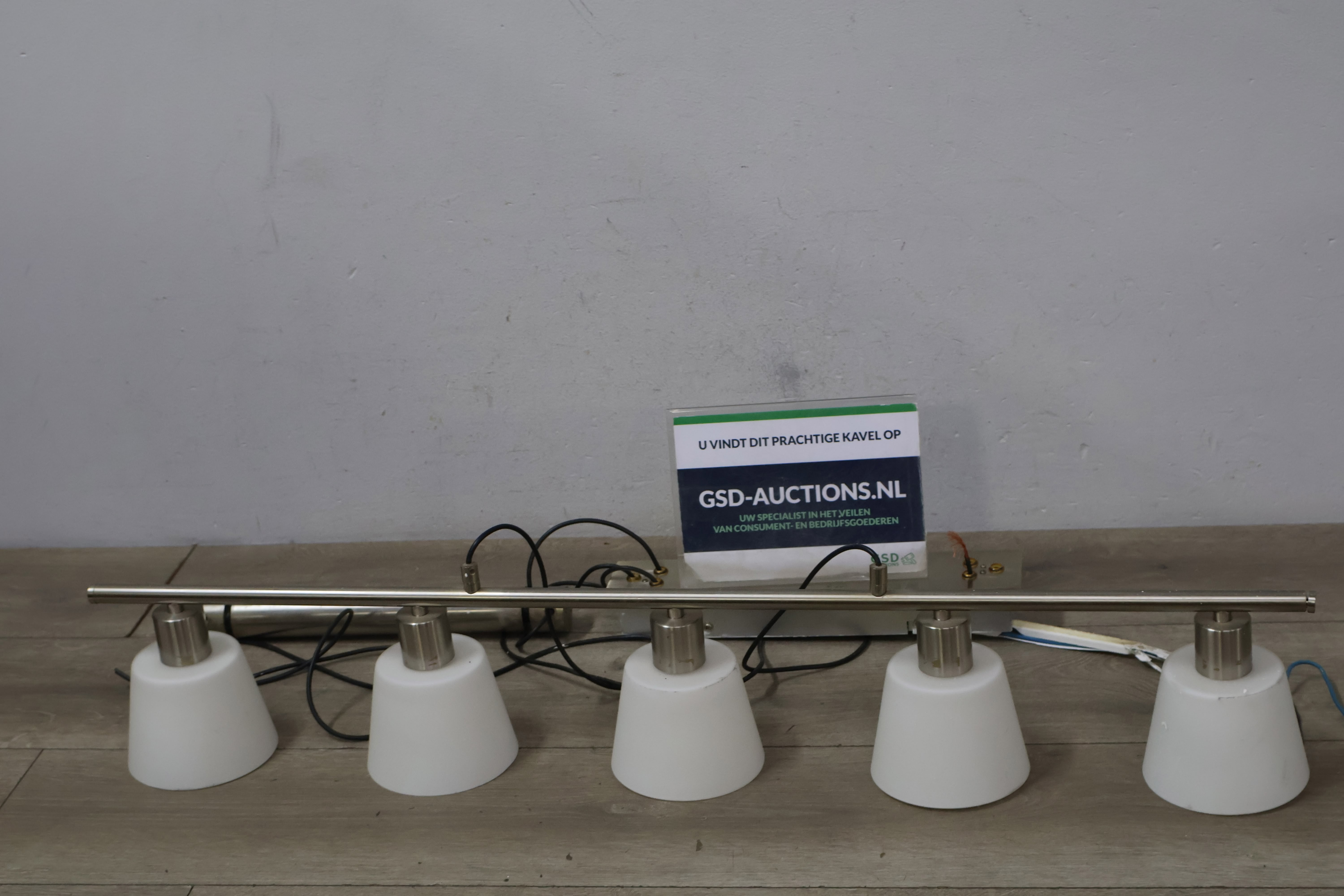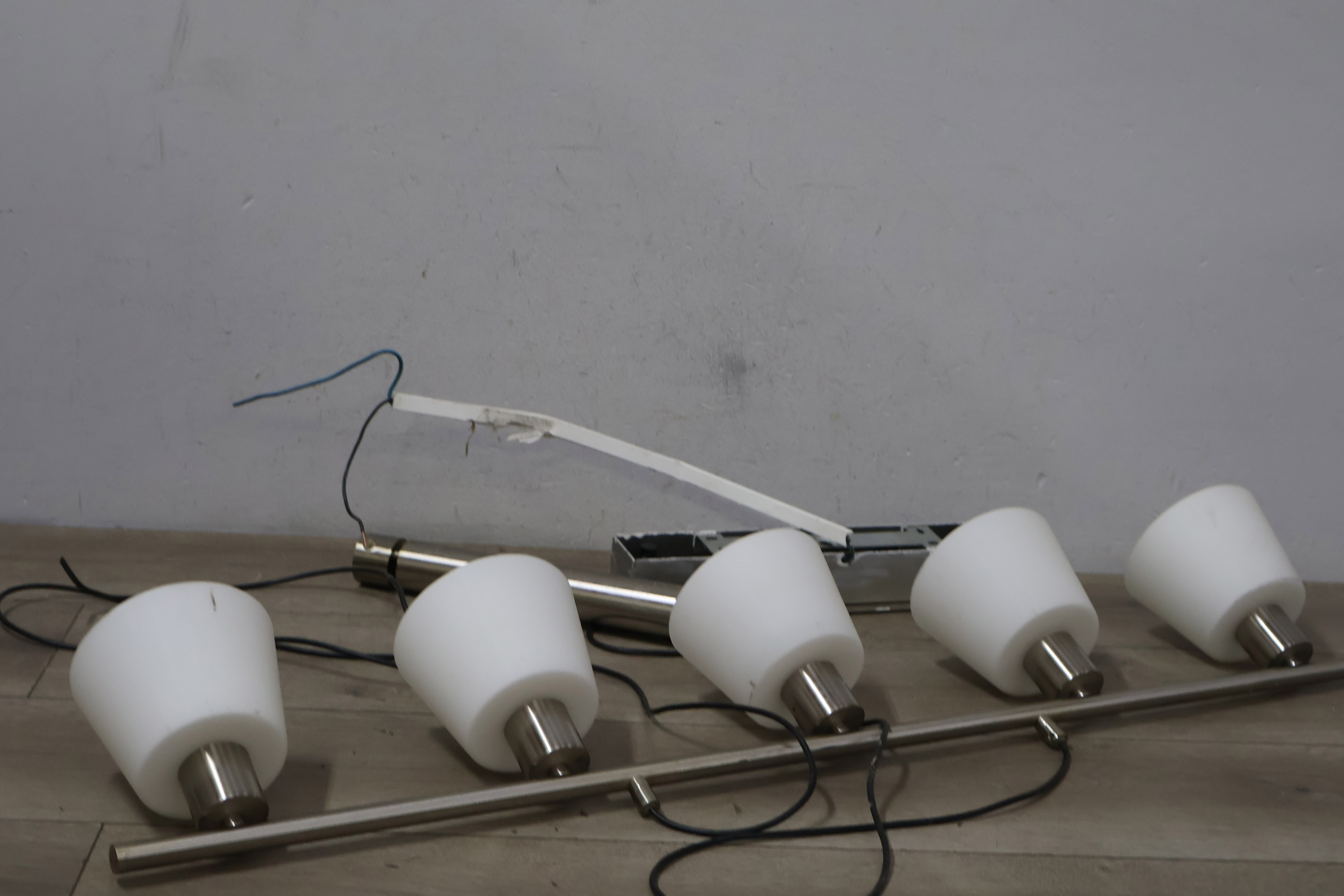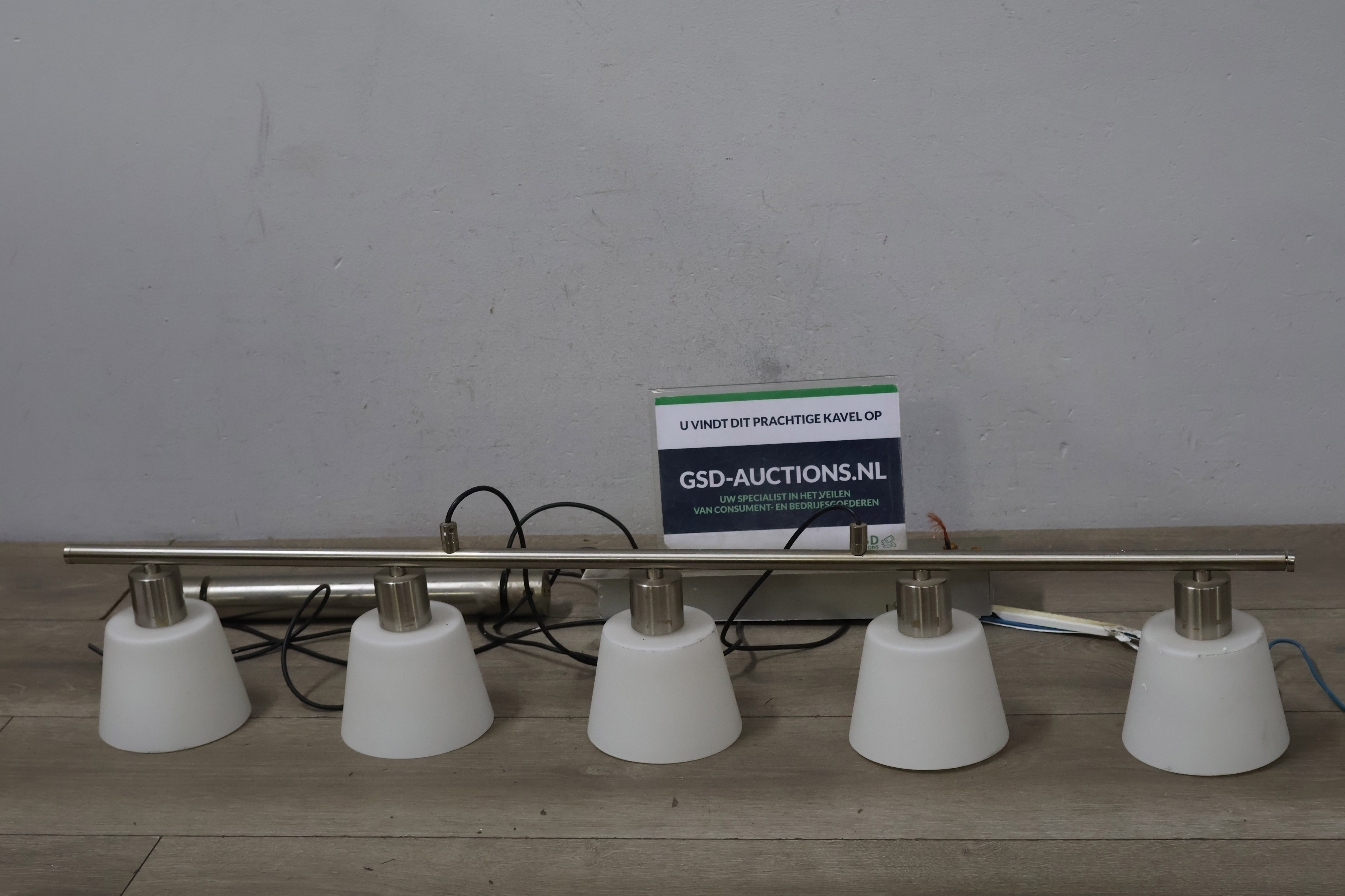 5-Koppige Aluminium Hanglamp met Witte Kapjes'