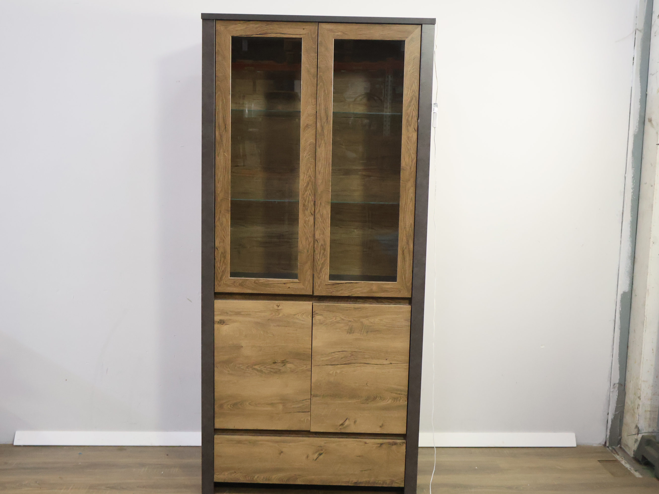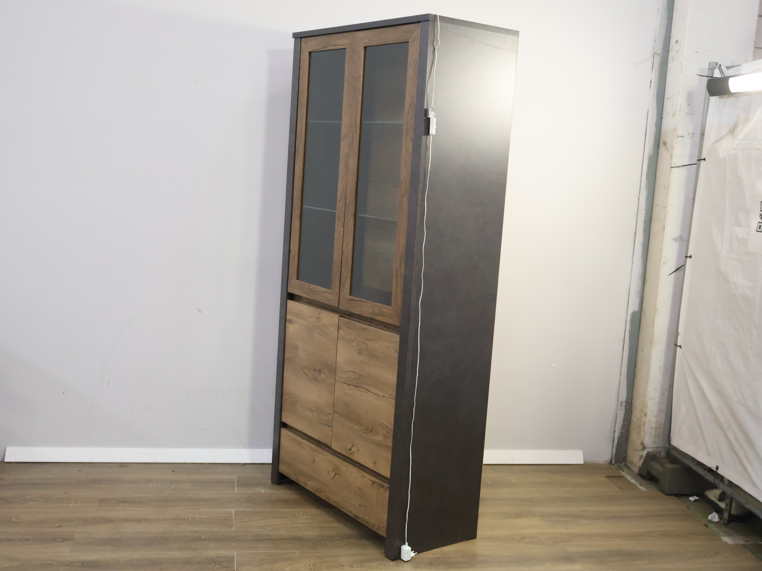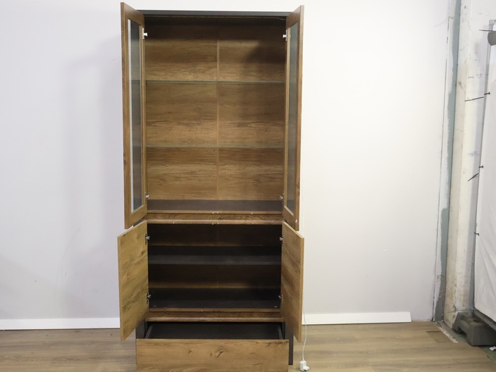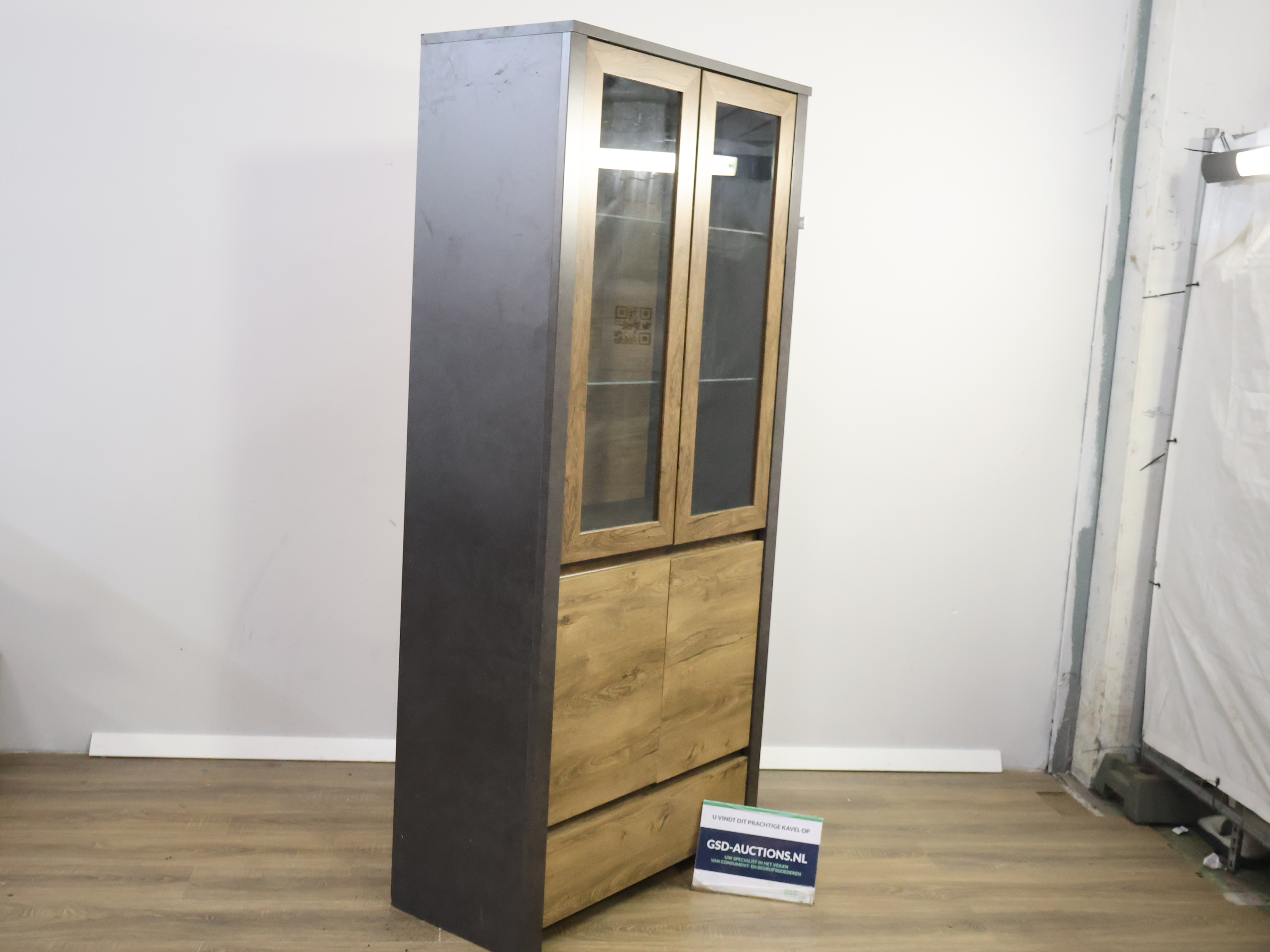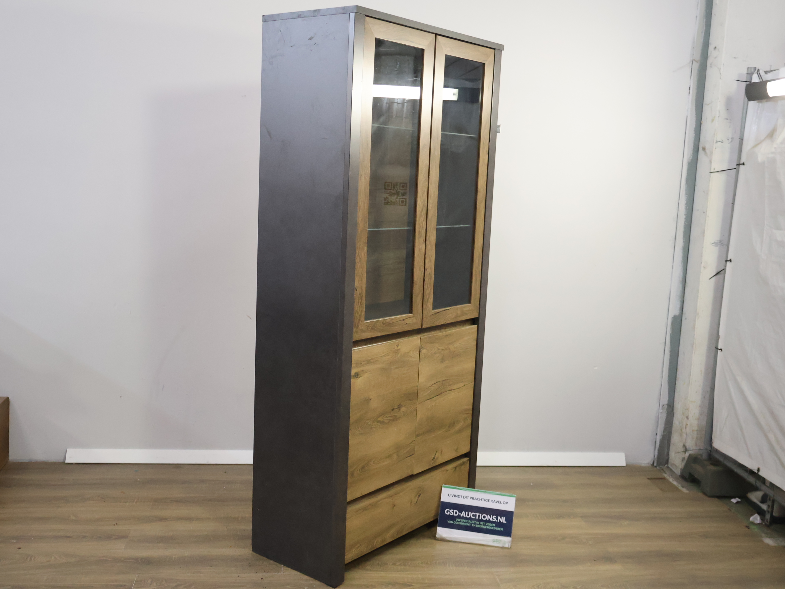 Moderne Vitrinekast met Inbouwverlichting & Zwarte Panelen