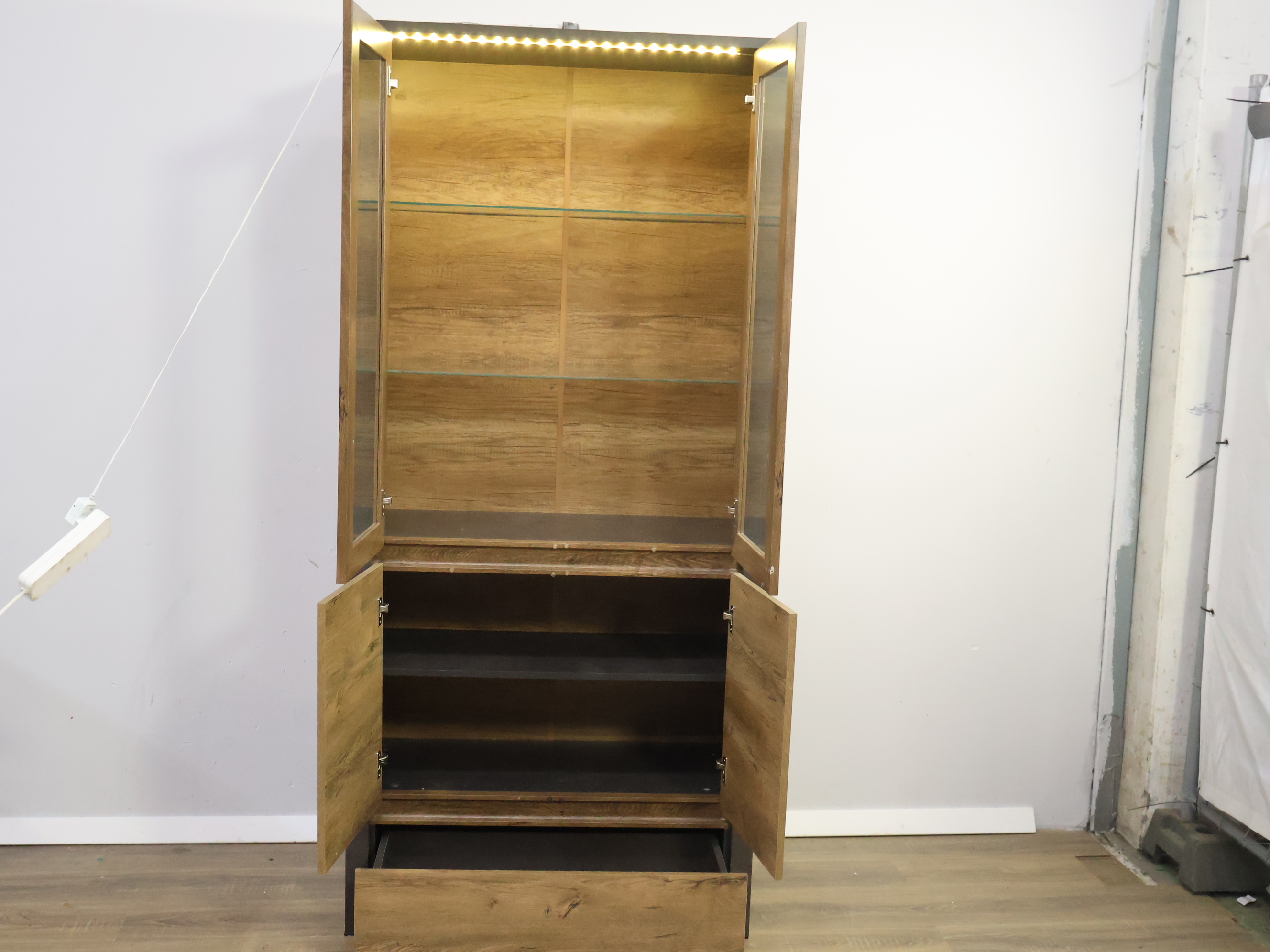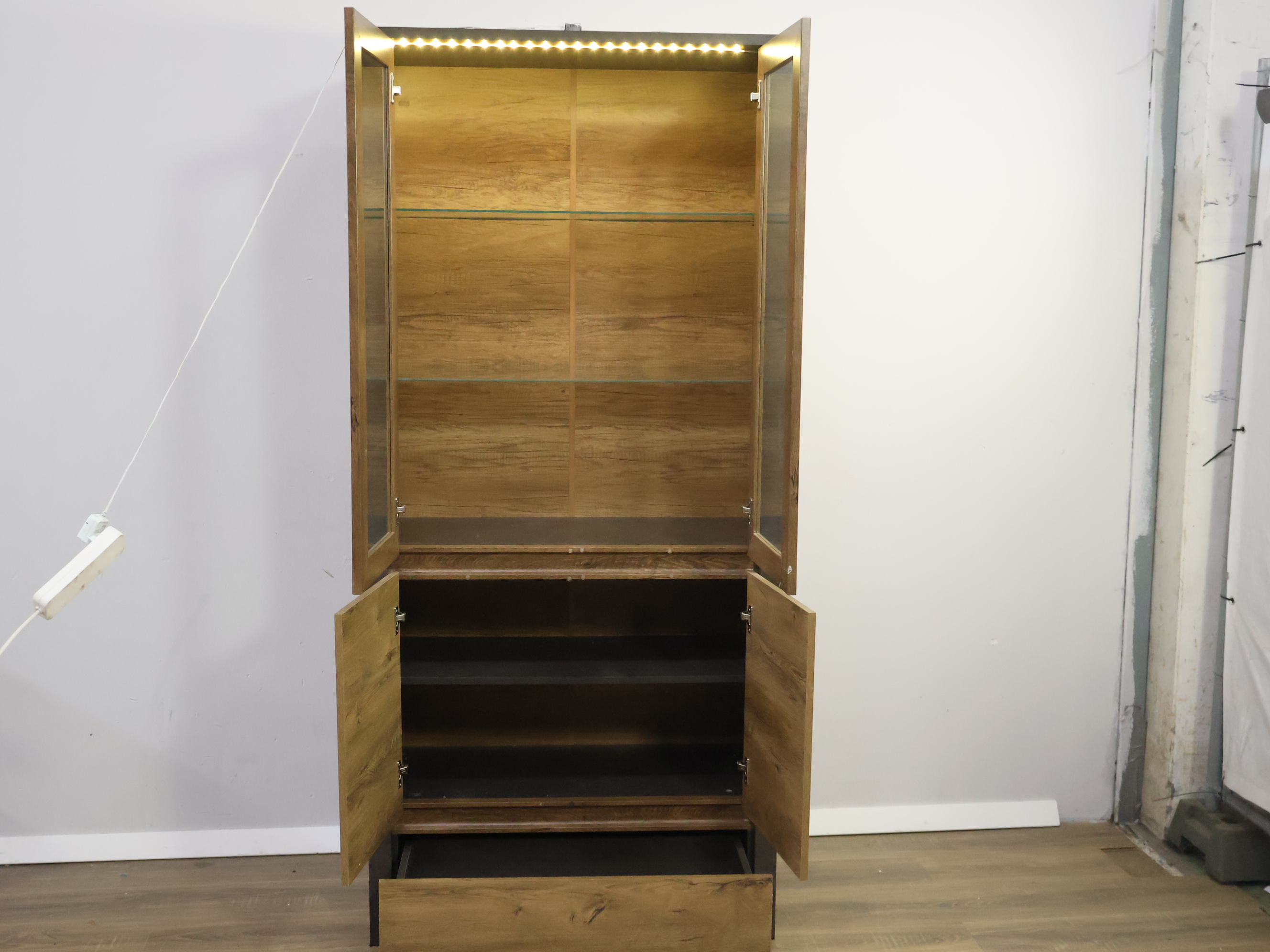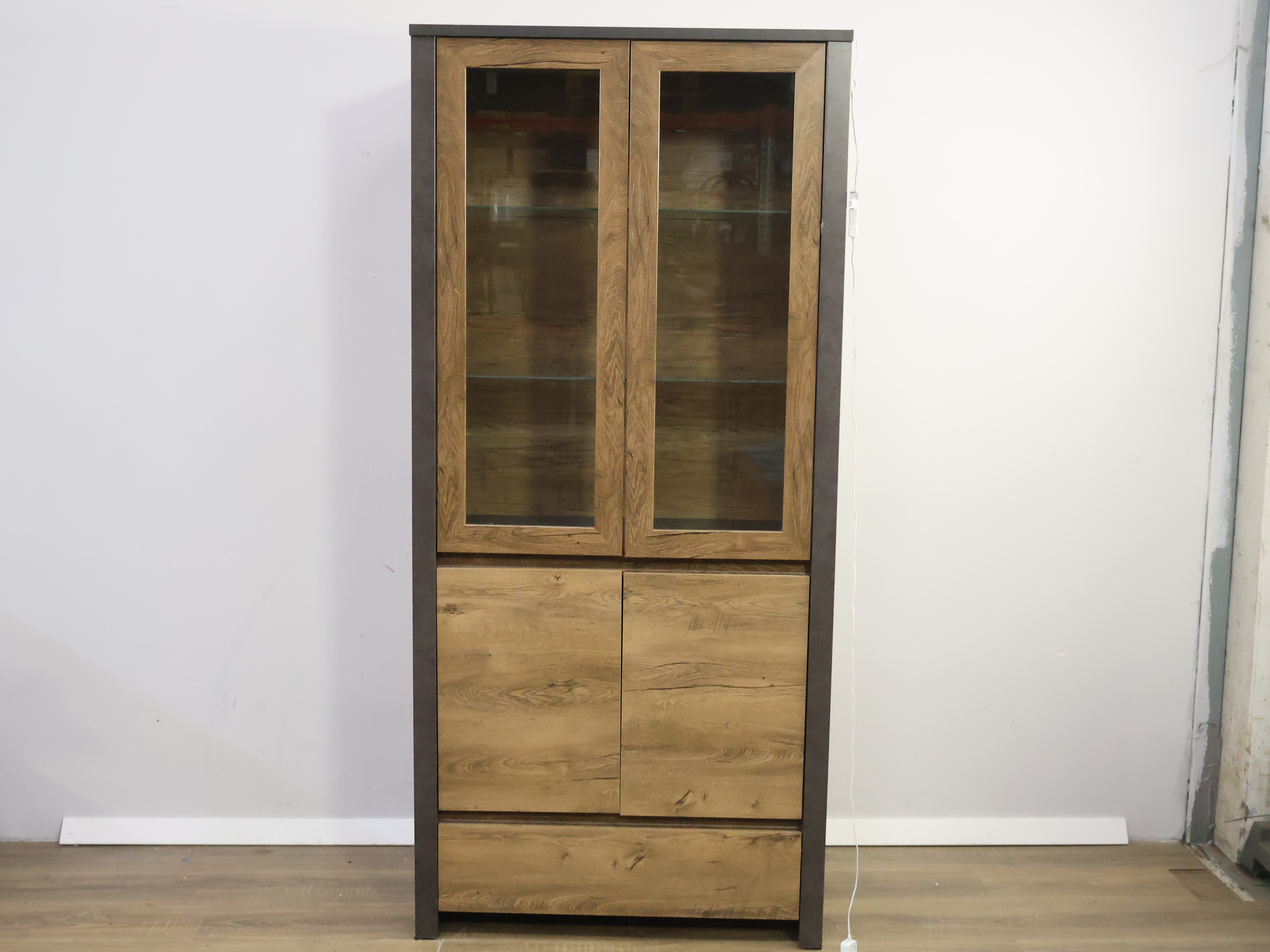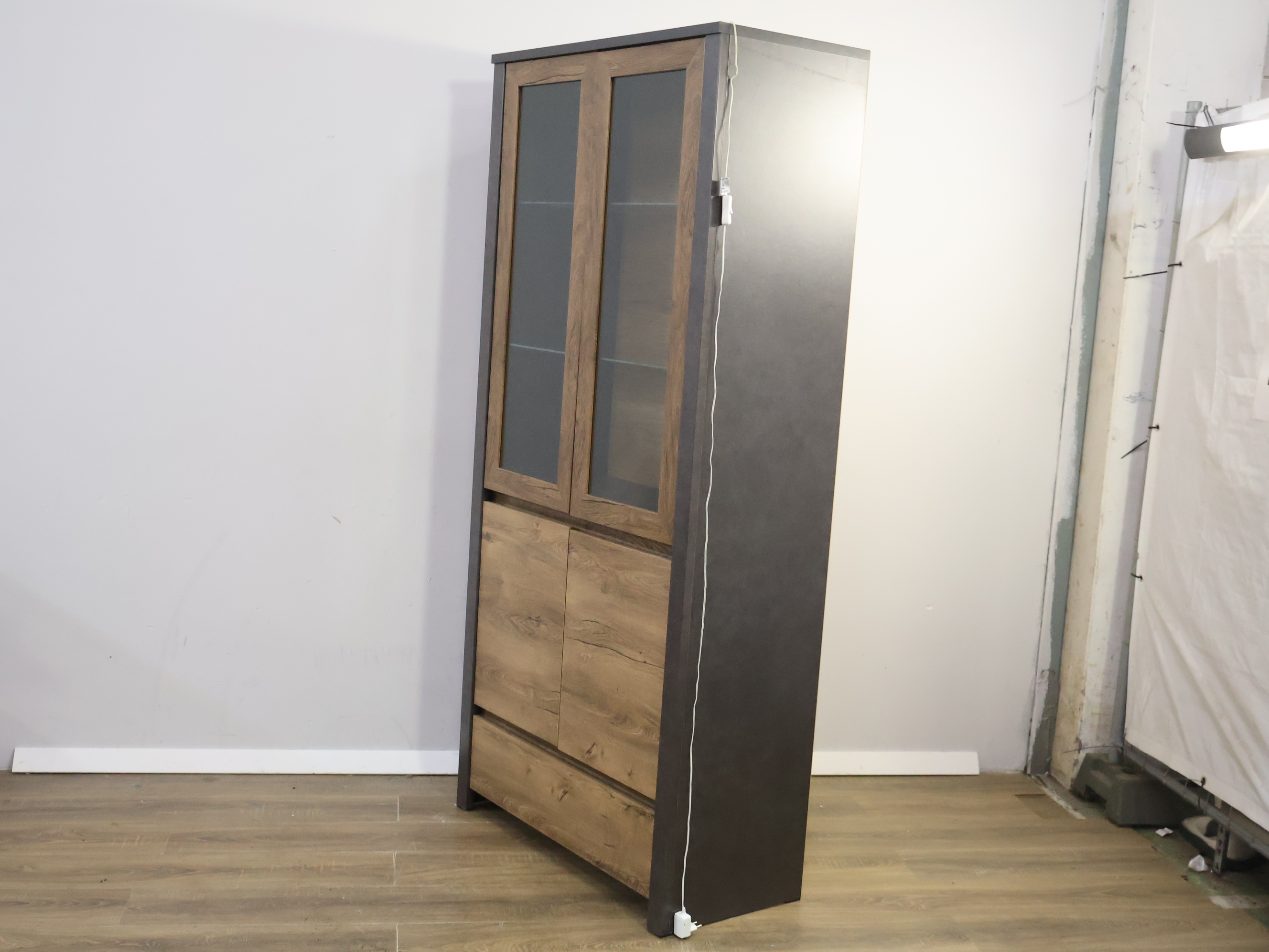 Moderne Vitrinekast met Inbouwverlichting & Zwarte Panelen