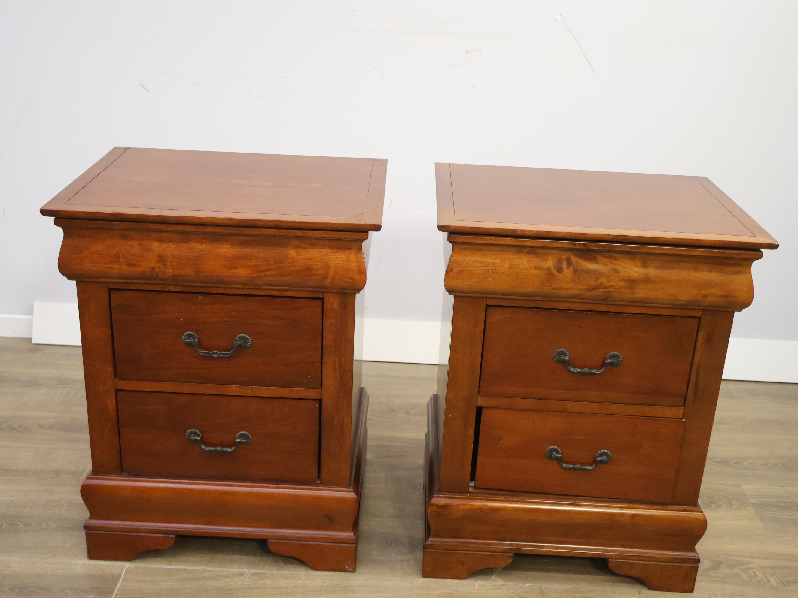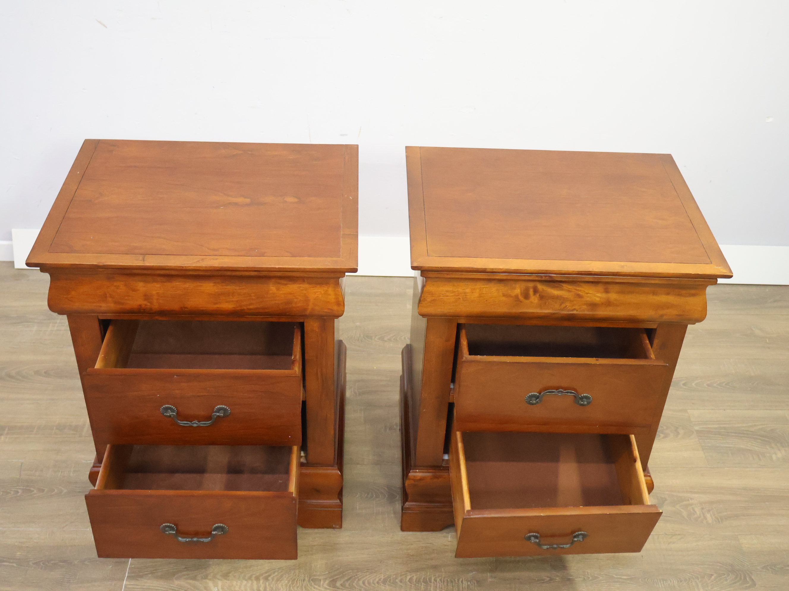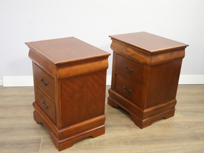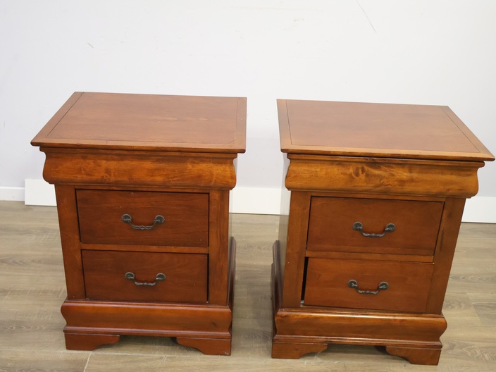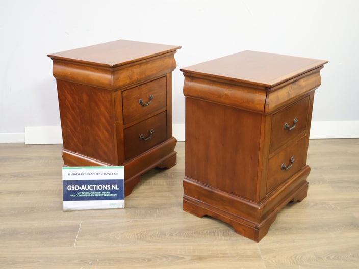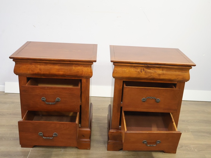Set van 2 Houten Nachtkasten met Dubbele Lade