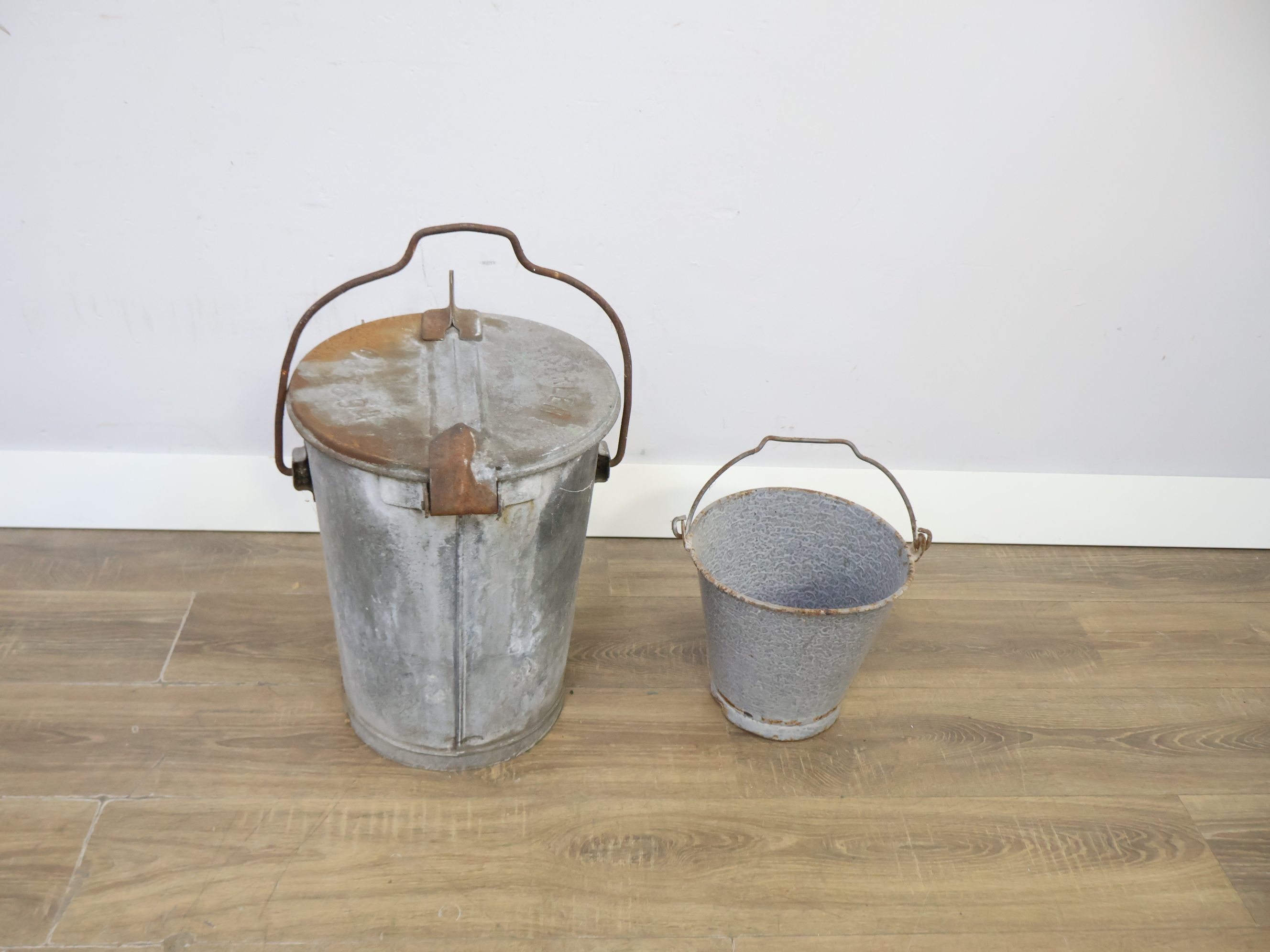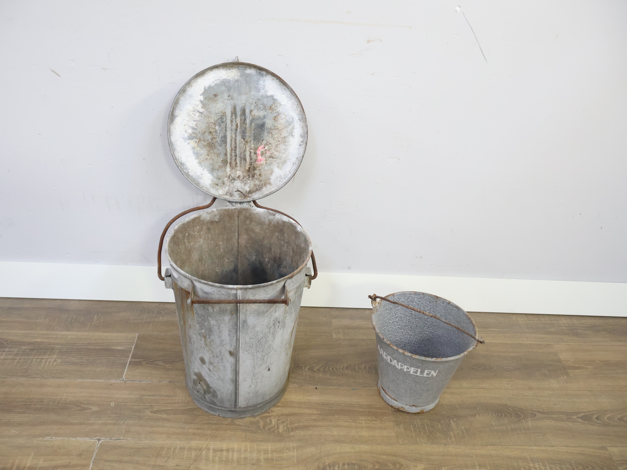 Set van 2 Vintage Zinken Emmers