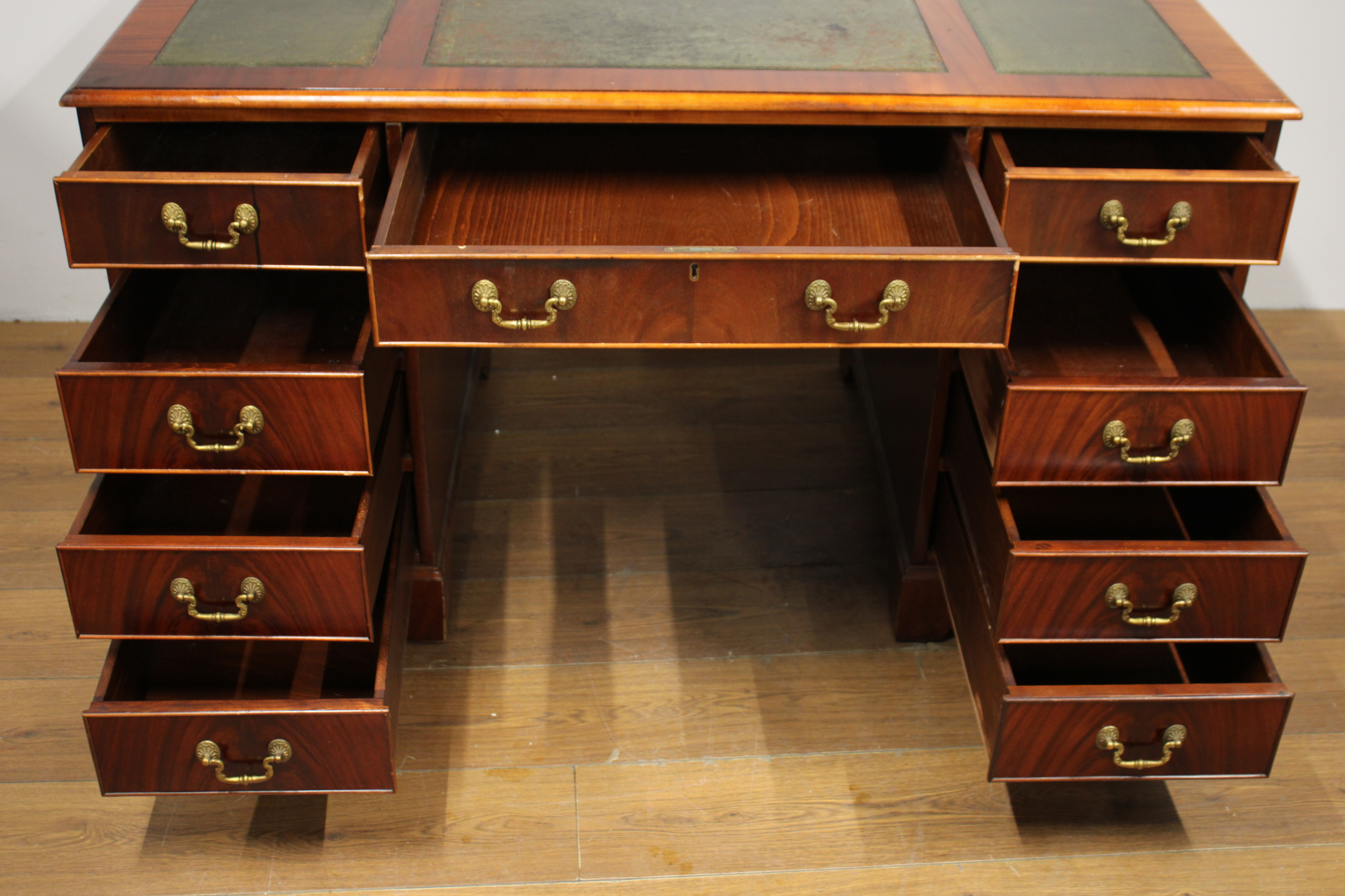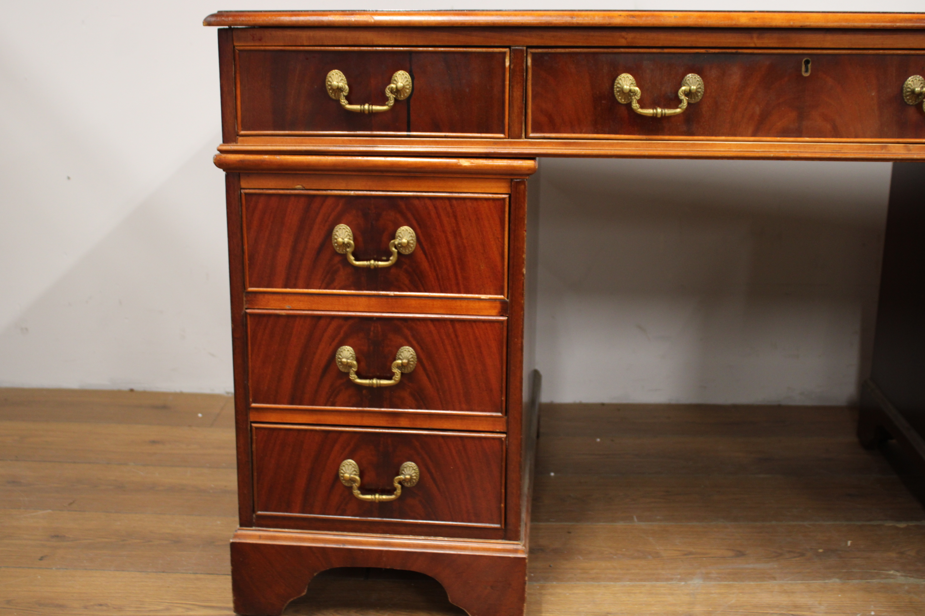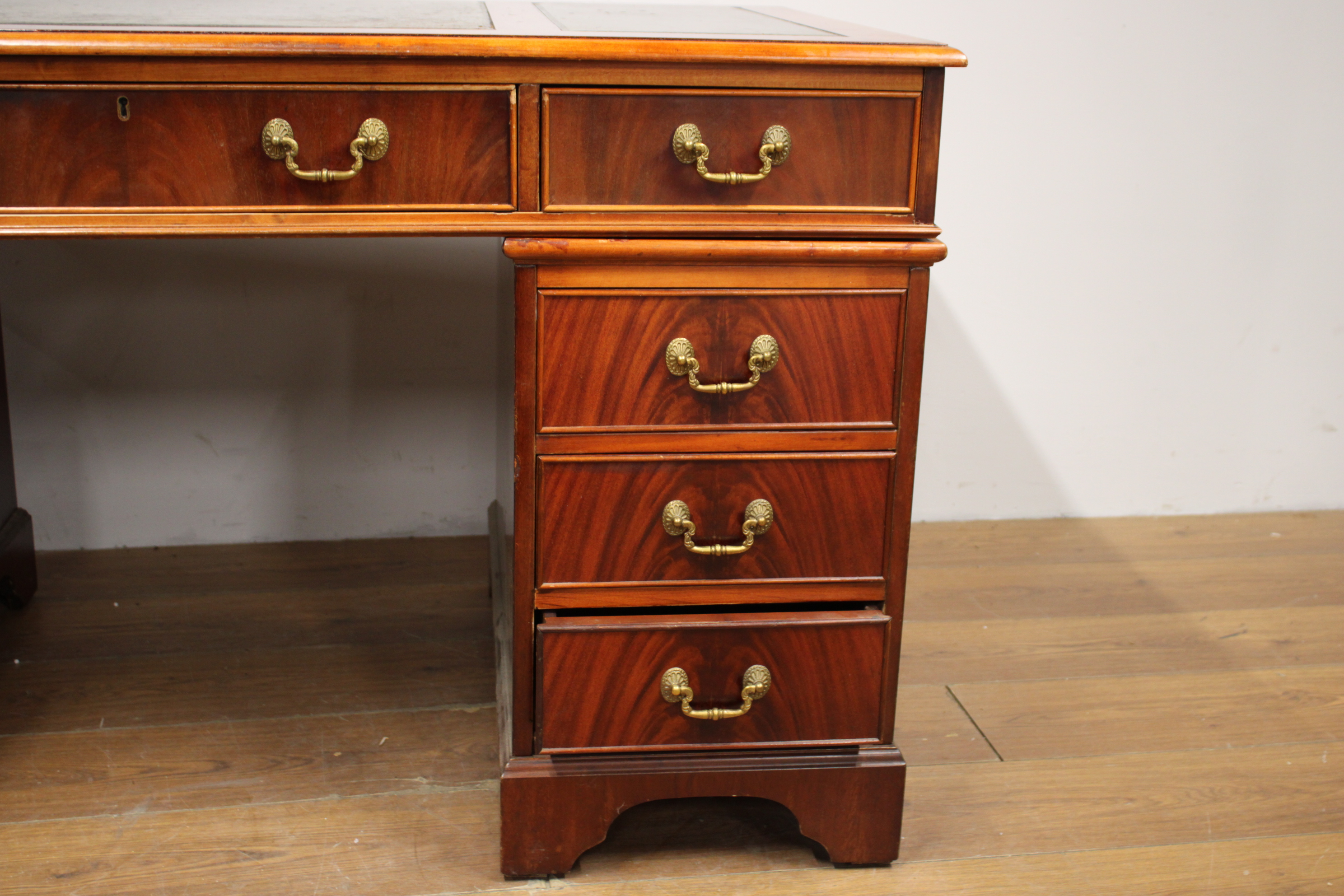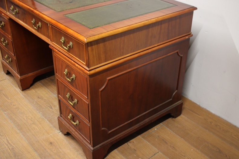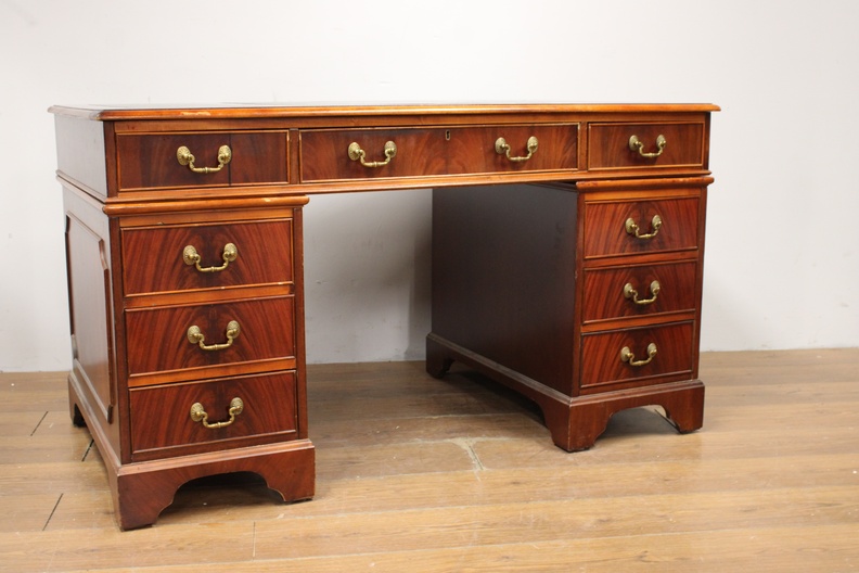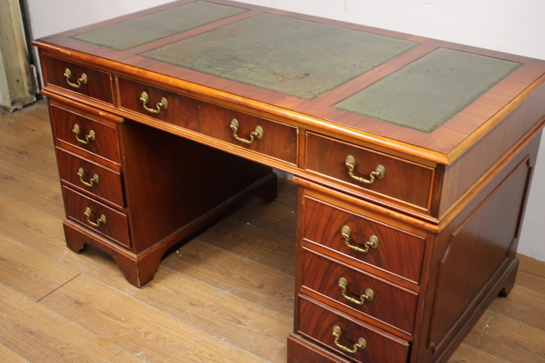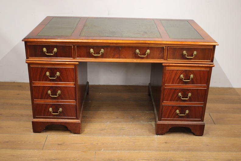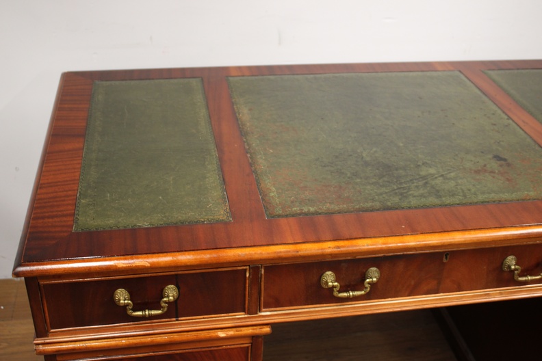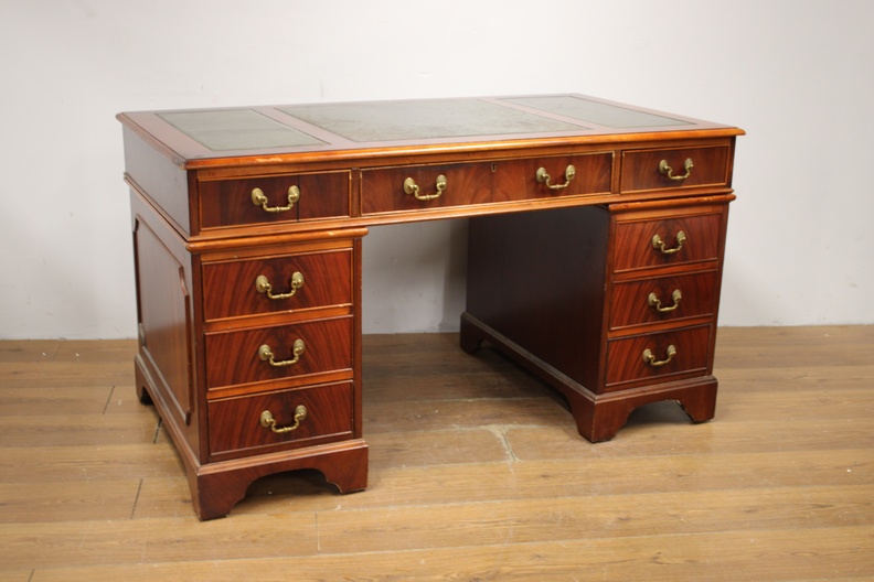 Antiek Mahoniehouten Ladebureau met Lederen inleg