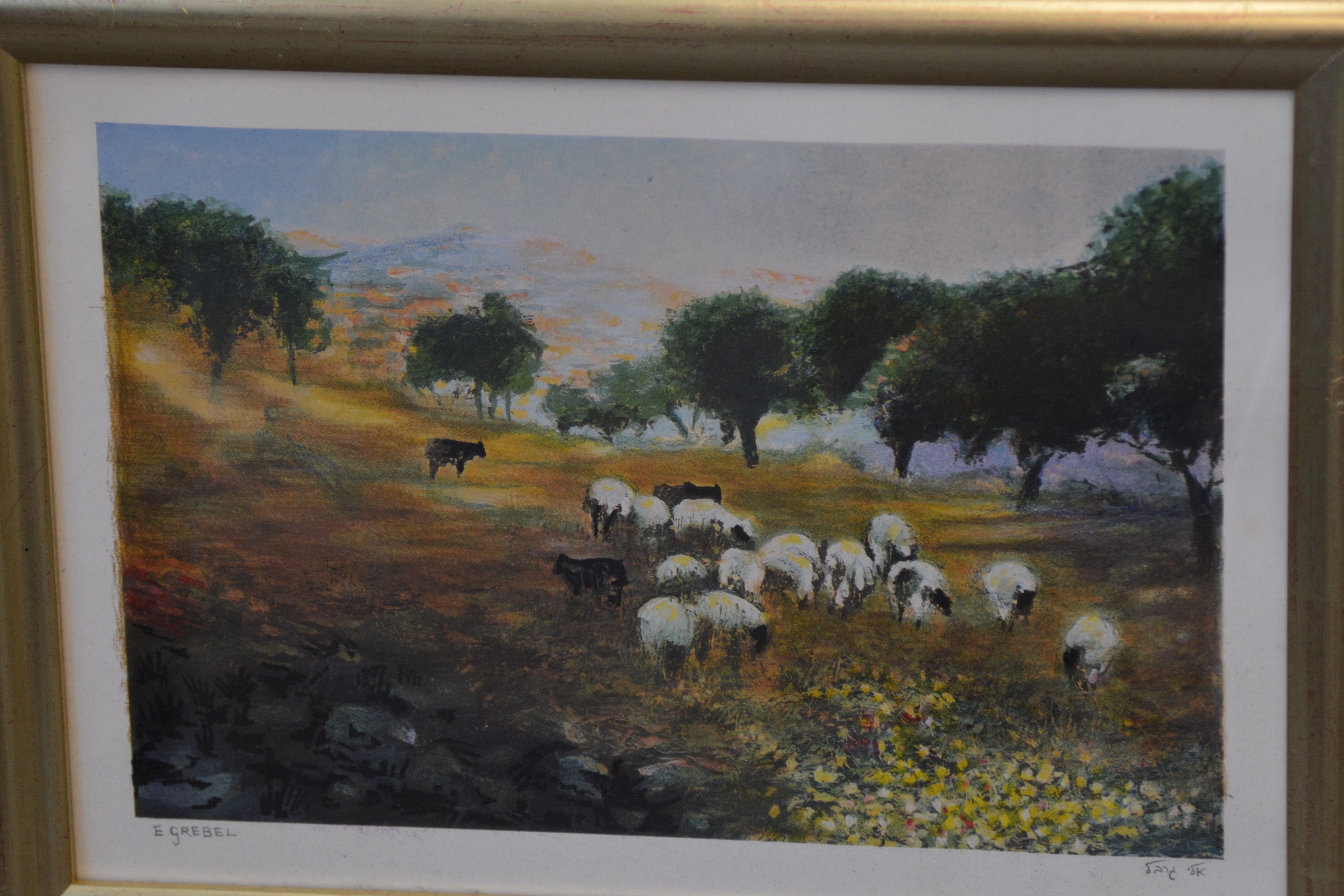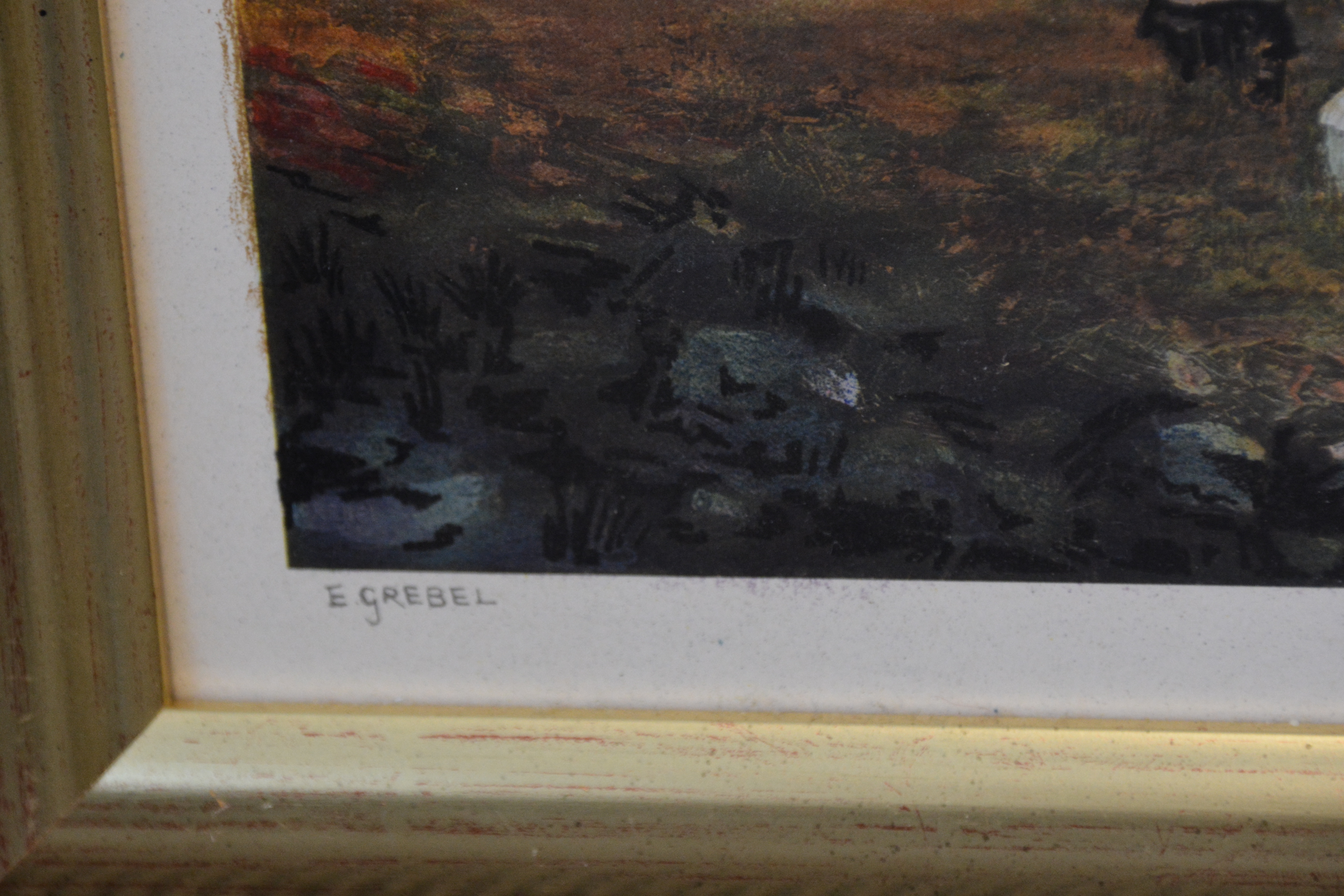 Krijttekening van E. Grebel: Vee in het veld
