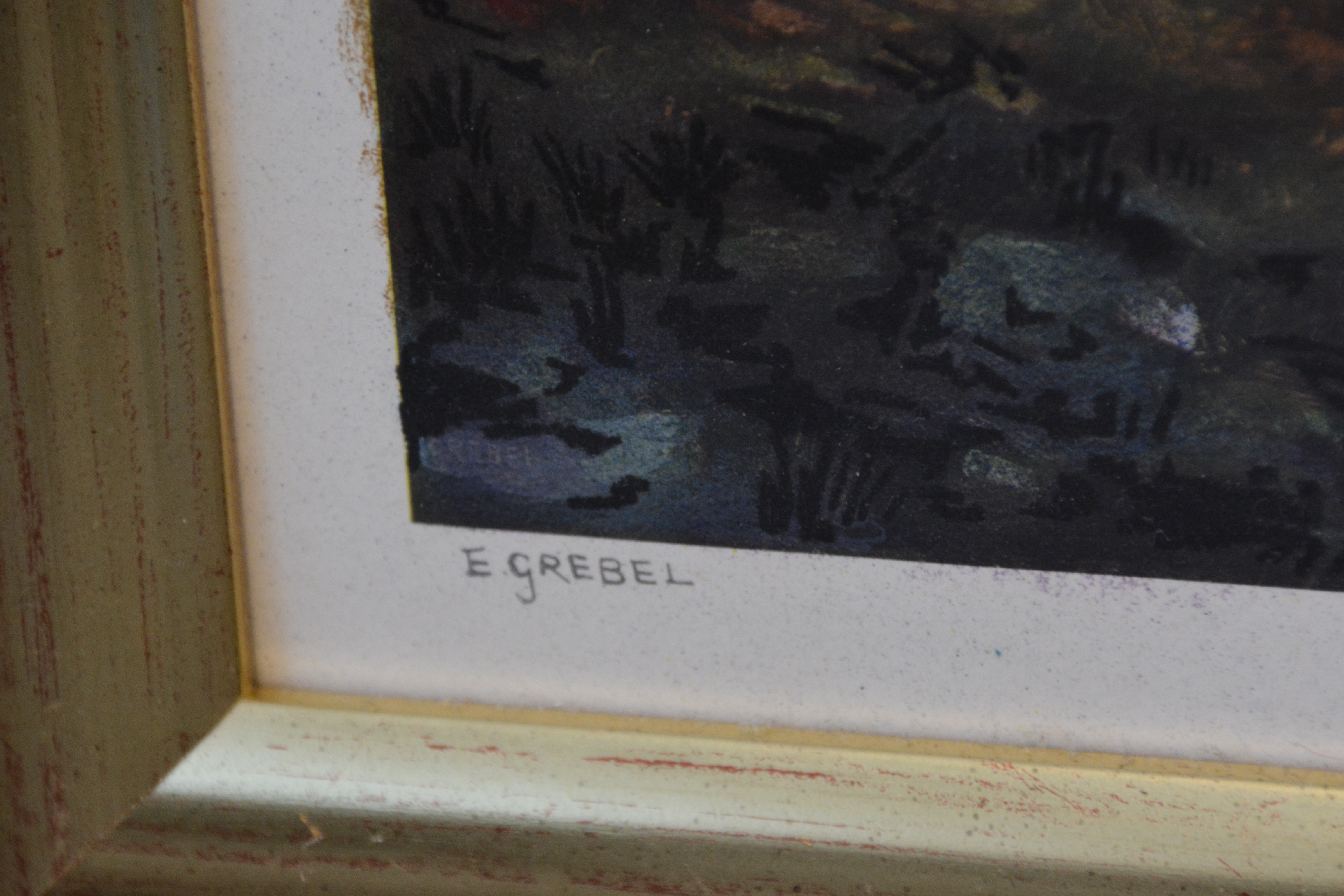 Mooie ingelijste krijttekening van E. Grebel. In goede staat.