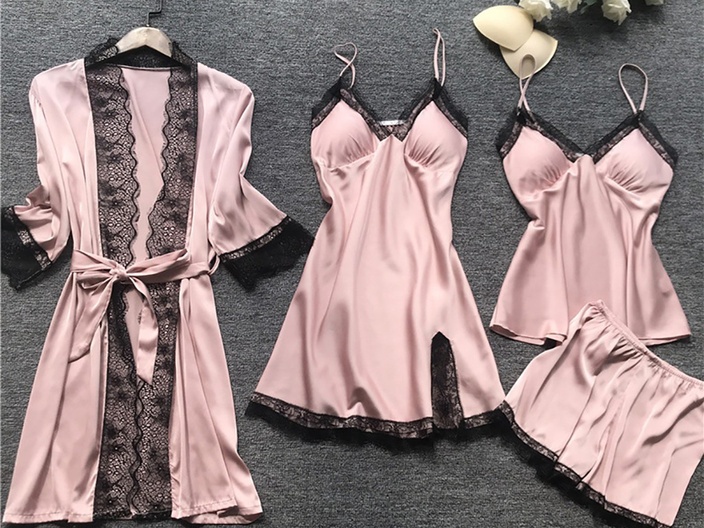 Deze 4-delige sexy nachtkleding set bevat alles voor een spannende avond! De lingerie set bevat een: nachtjapon, top, short en jurkje. De top en jurkje hebben een diepe V-hals en voorgevormde cups. Het materiaal is sexy en laat het lichaam er nog mooier uit komen!