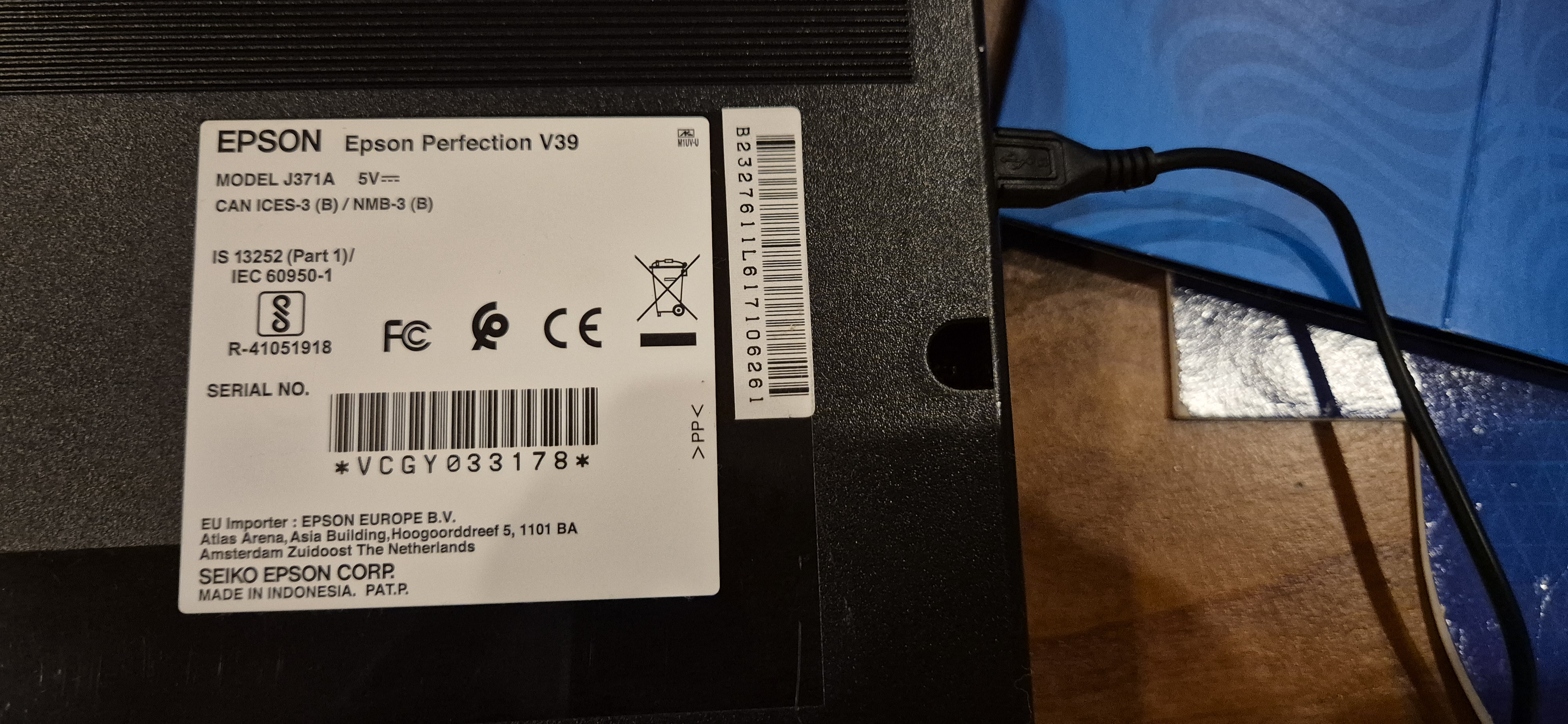Epson scanner…usb aansluiting V39..zie foto’s