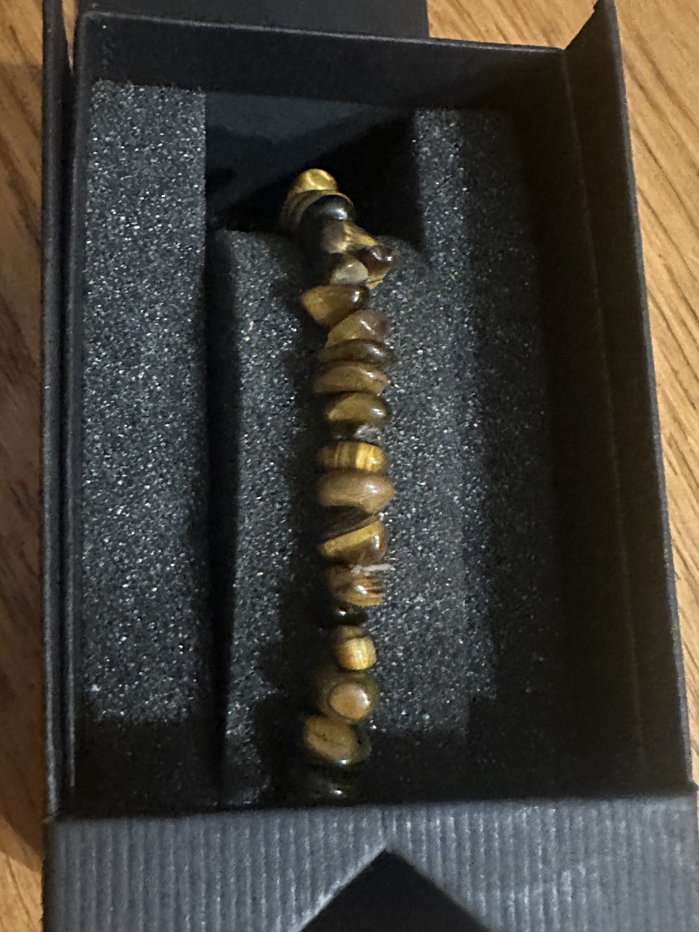 splitarmband van tijgeroog, geleverd in een mooi zwart doosj