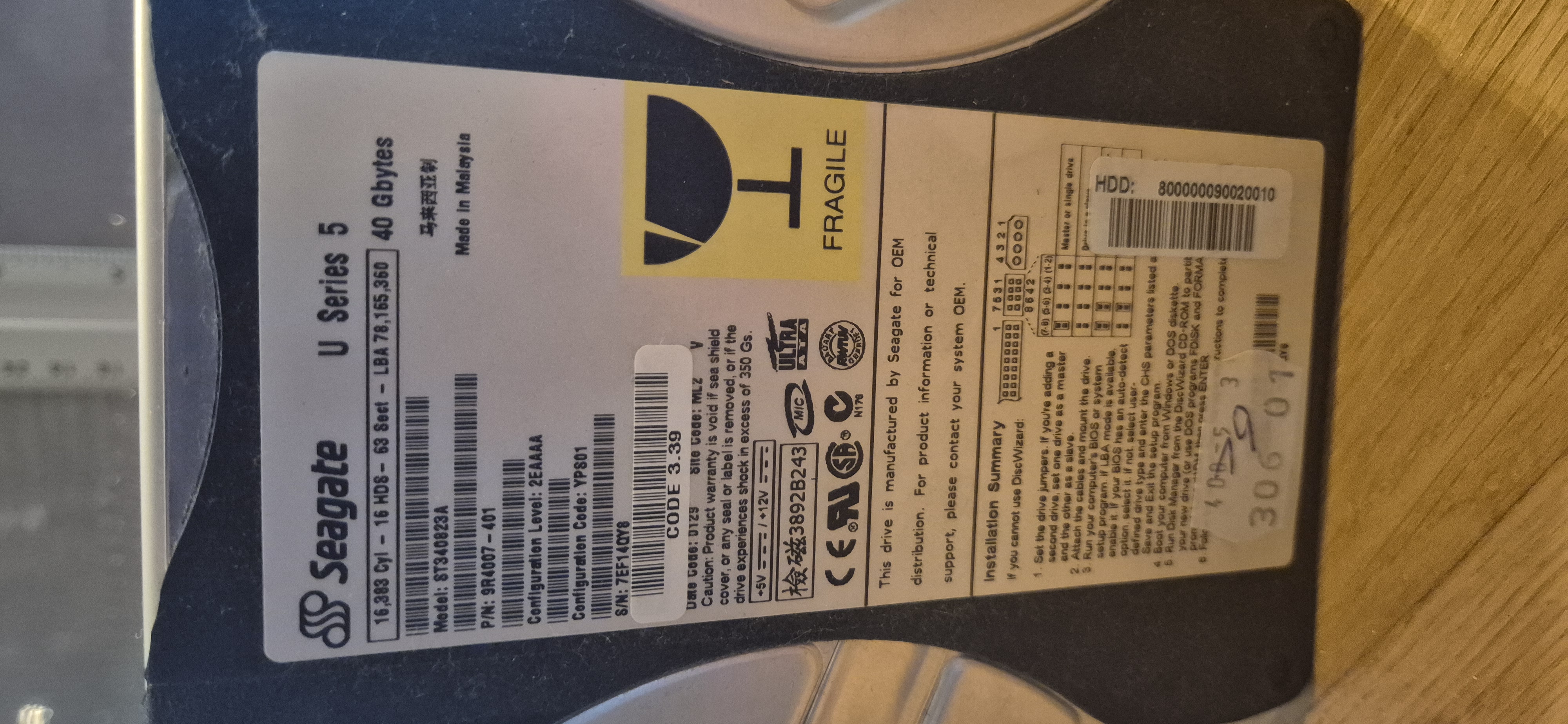Dit is een 3.5 inch IDE / PATA HDD, geschikt voor oudere desktopcomputers. Ideaal voor retro-pc projecten, vervanging in een oude computer of voor verzamelaars van vintage hardware.