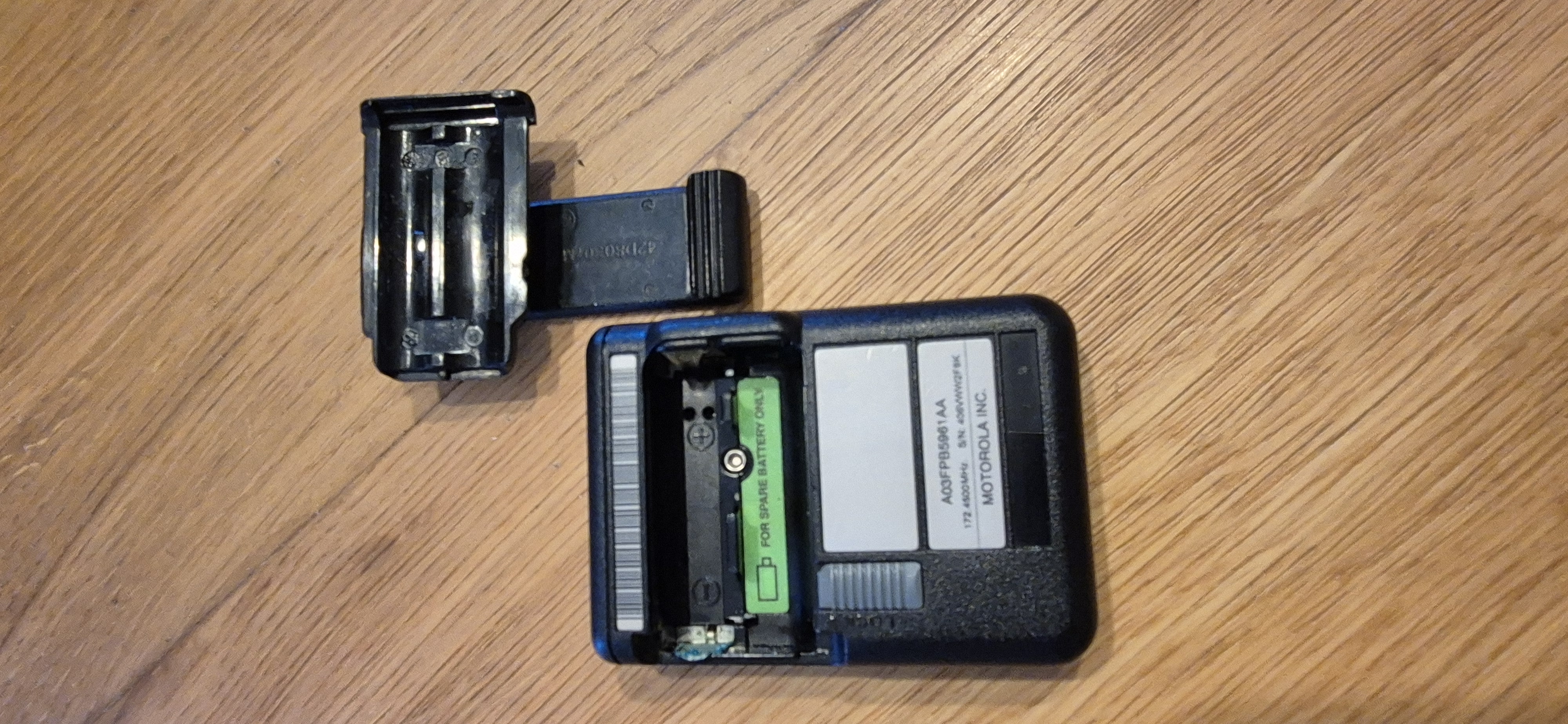 Te koop: een originele Motorola pager (semafoon) met riemclip.