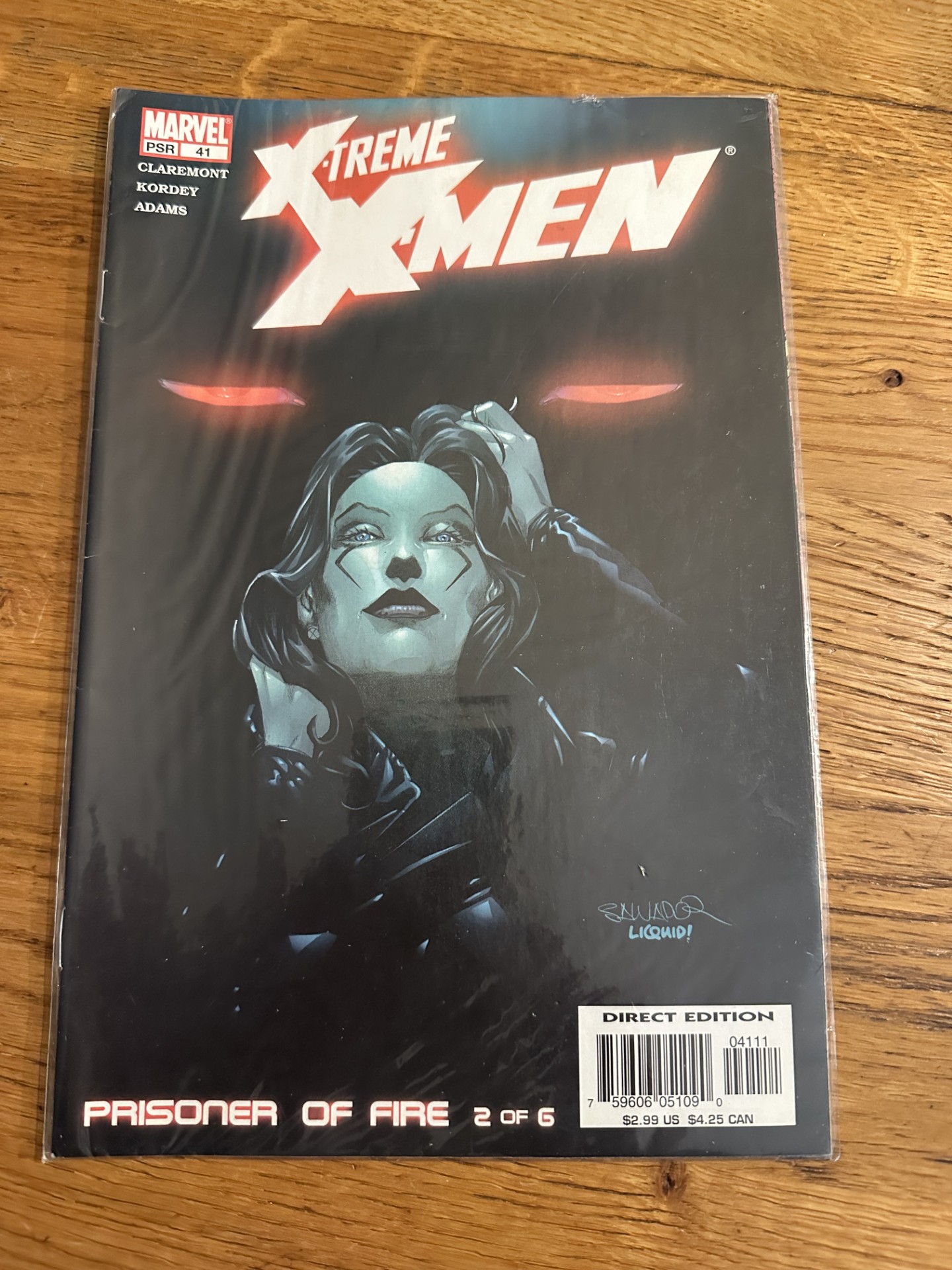 Deze uitgave bevat het verhaal “Prisoner of Fire – Part 2 of 6”. Geschreven door Chris Claremont met artwork van Igor Kordey en Adams. Comic zit in beschermhoes zoals afgebeeld.