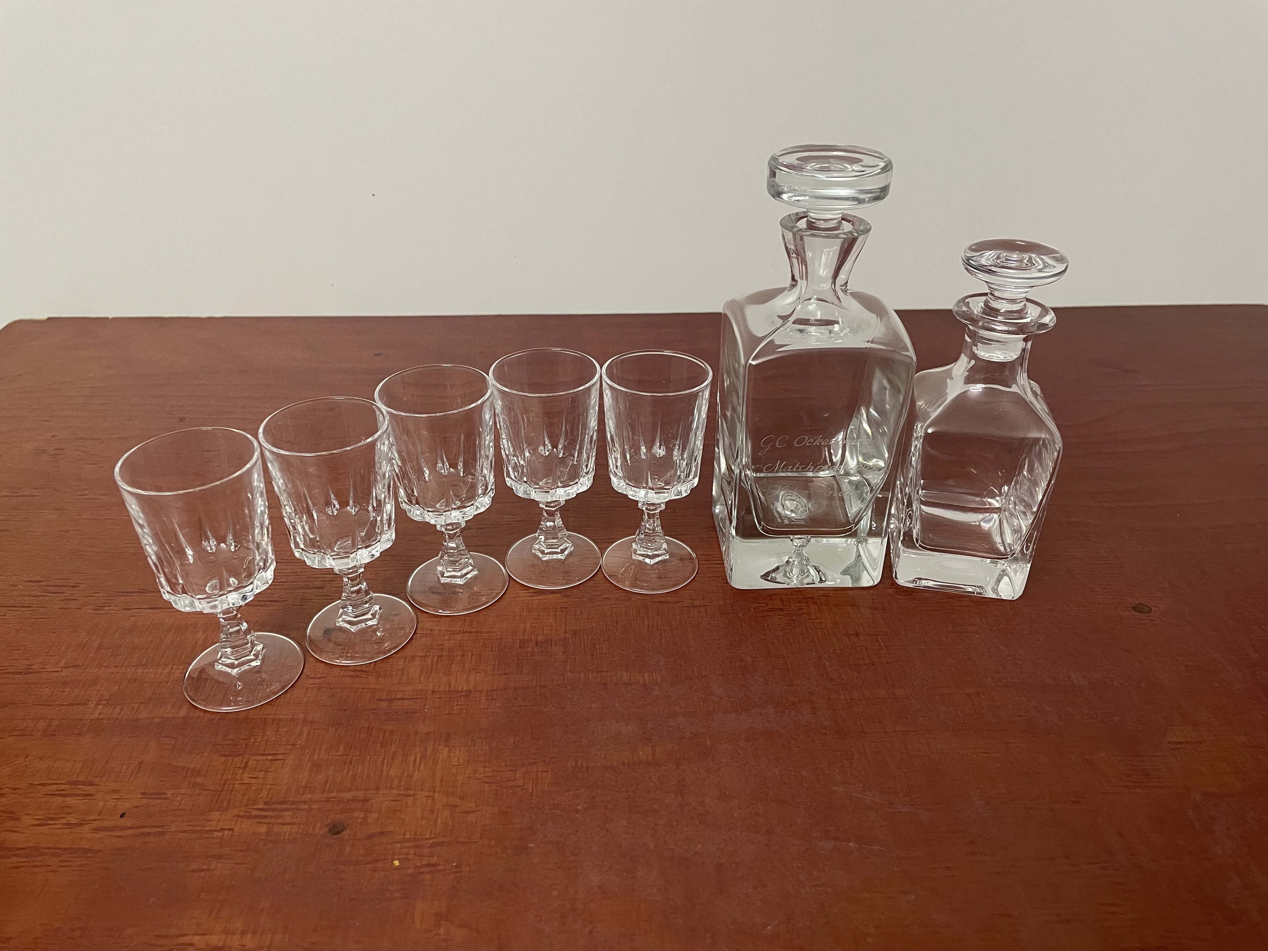Kleine karaffen met kristallen kleine glazen