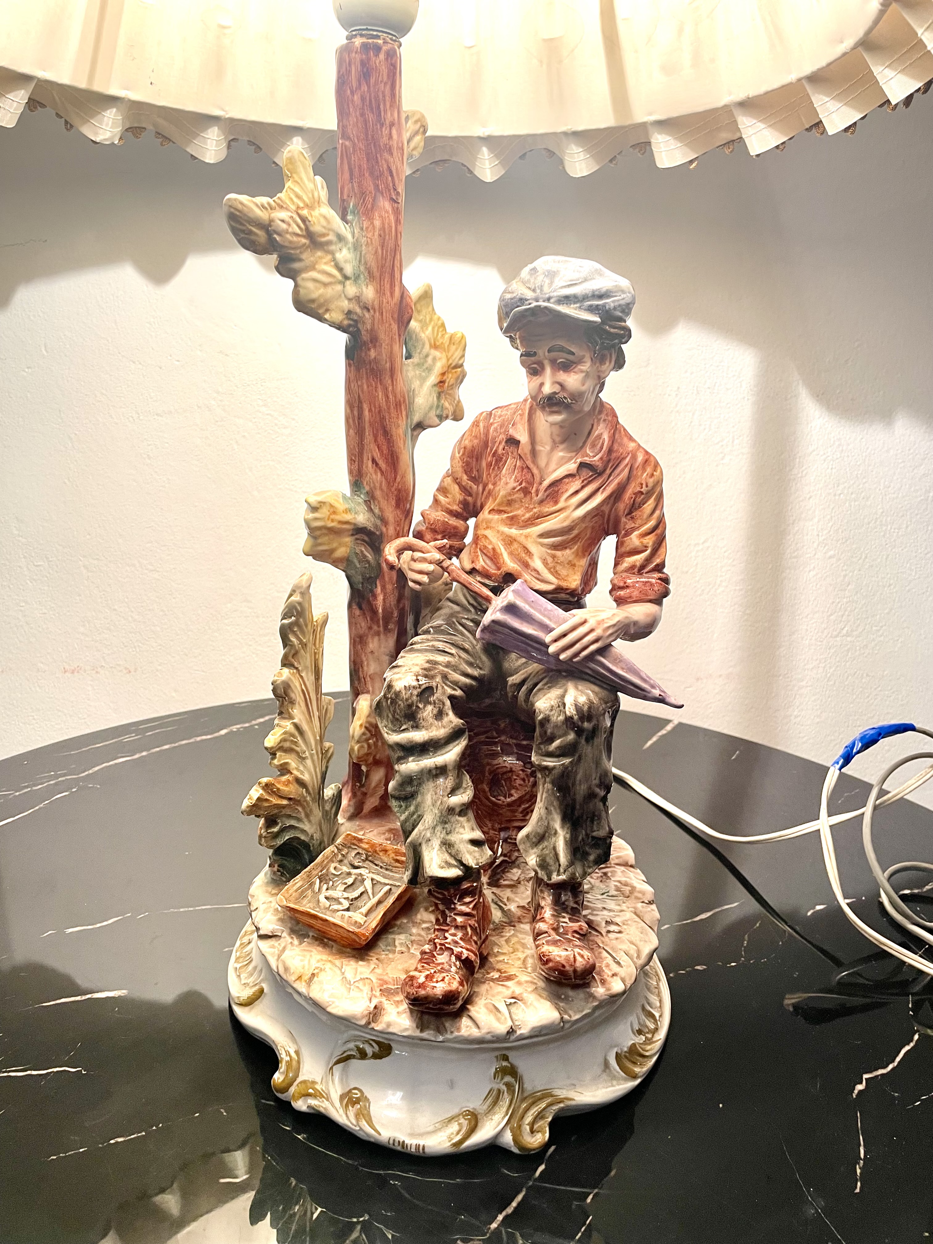 Porseleinen tafellamp klusjesman van Bassano gemakt in Italië