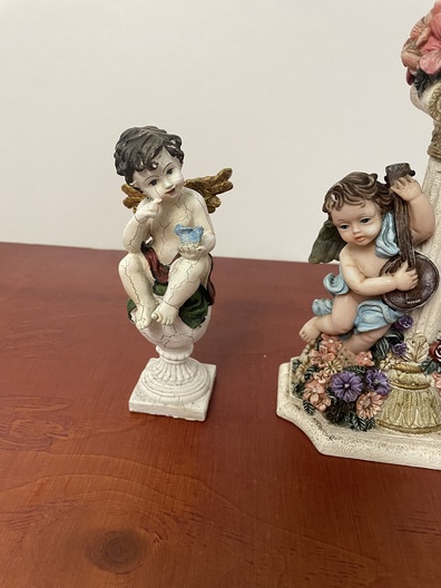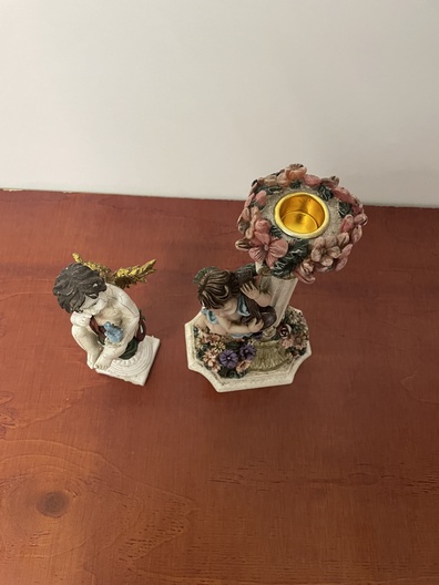 Kandelaar met engeltjes en een beeld van angel