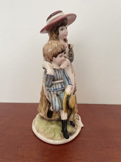 Keramieken beeld zus en broertje
