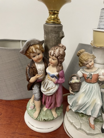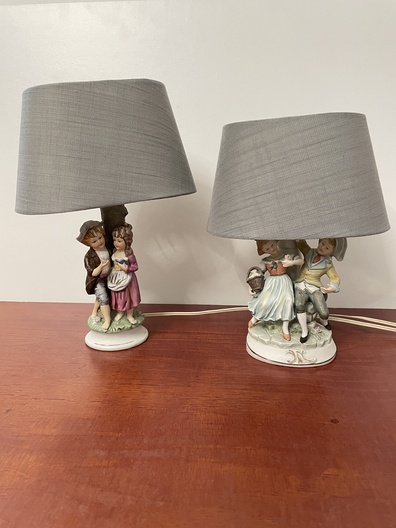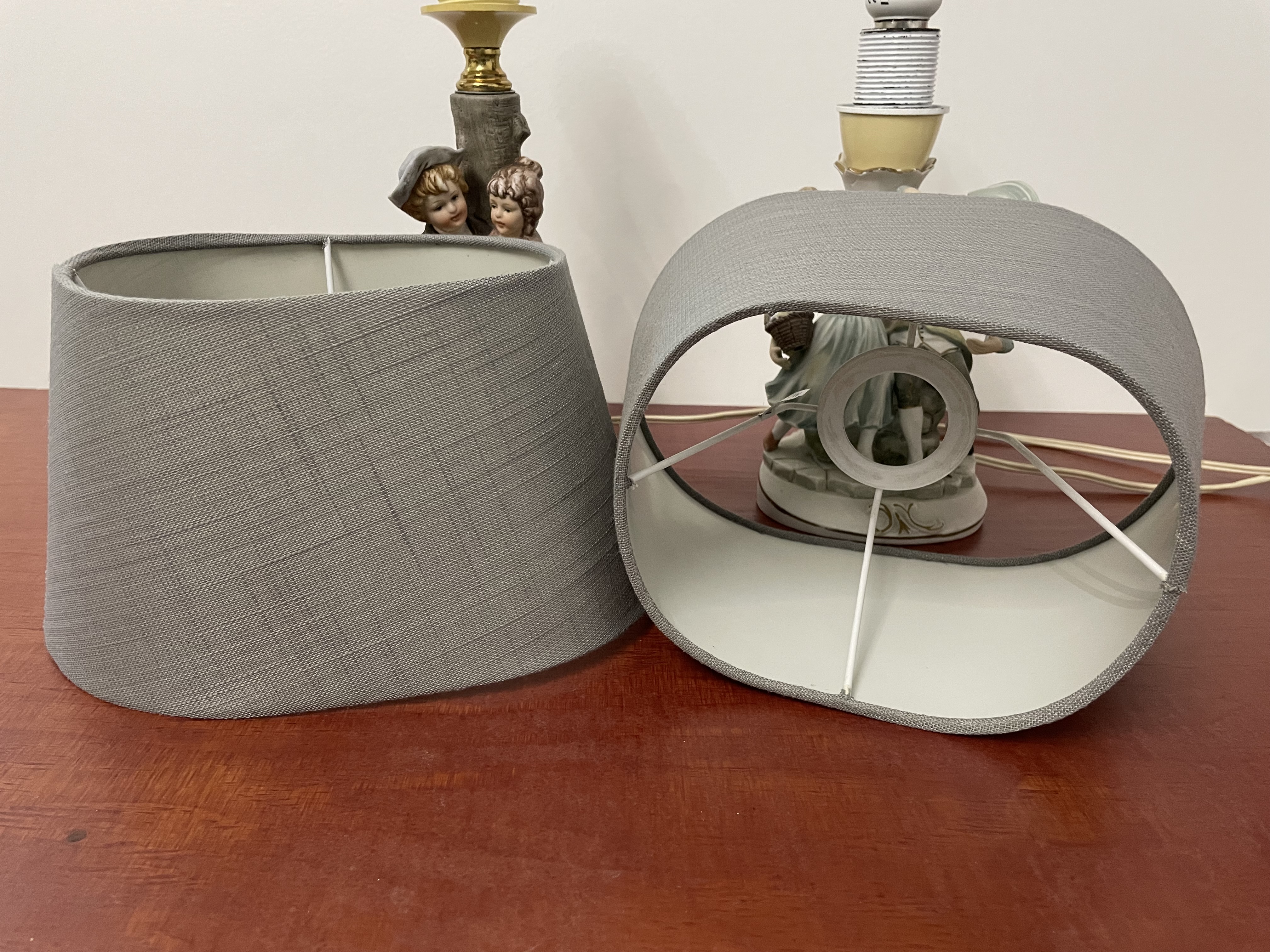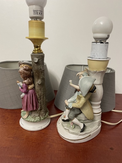 2 kleine tafellamp met lampenkapen van Duitse fabriek