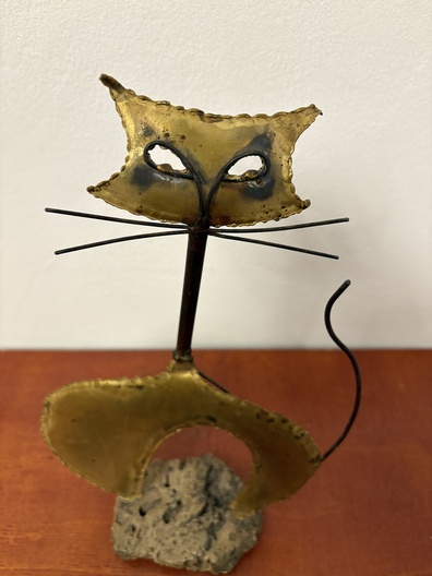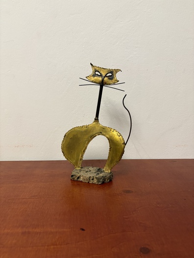 Brutalistisch metalen Kattenbeeld onderaan 626 genummerd