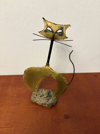 Brutalistisch metalen Kattenbeeld   op steen onderaan 626 genummerd