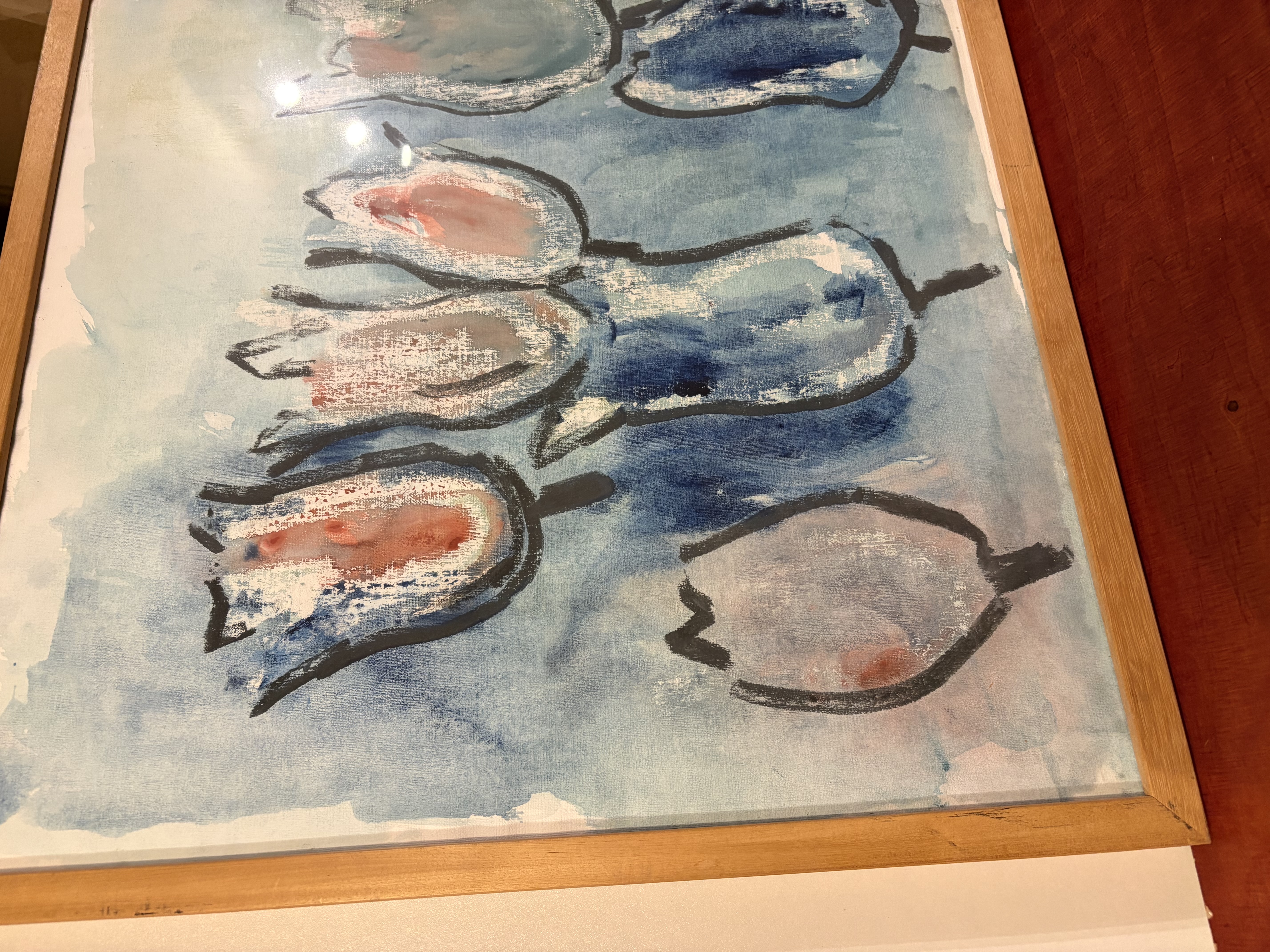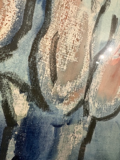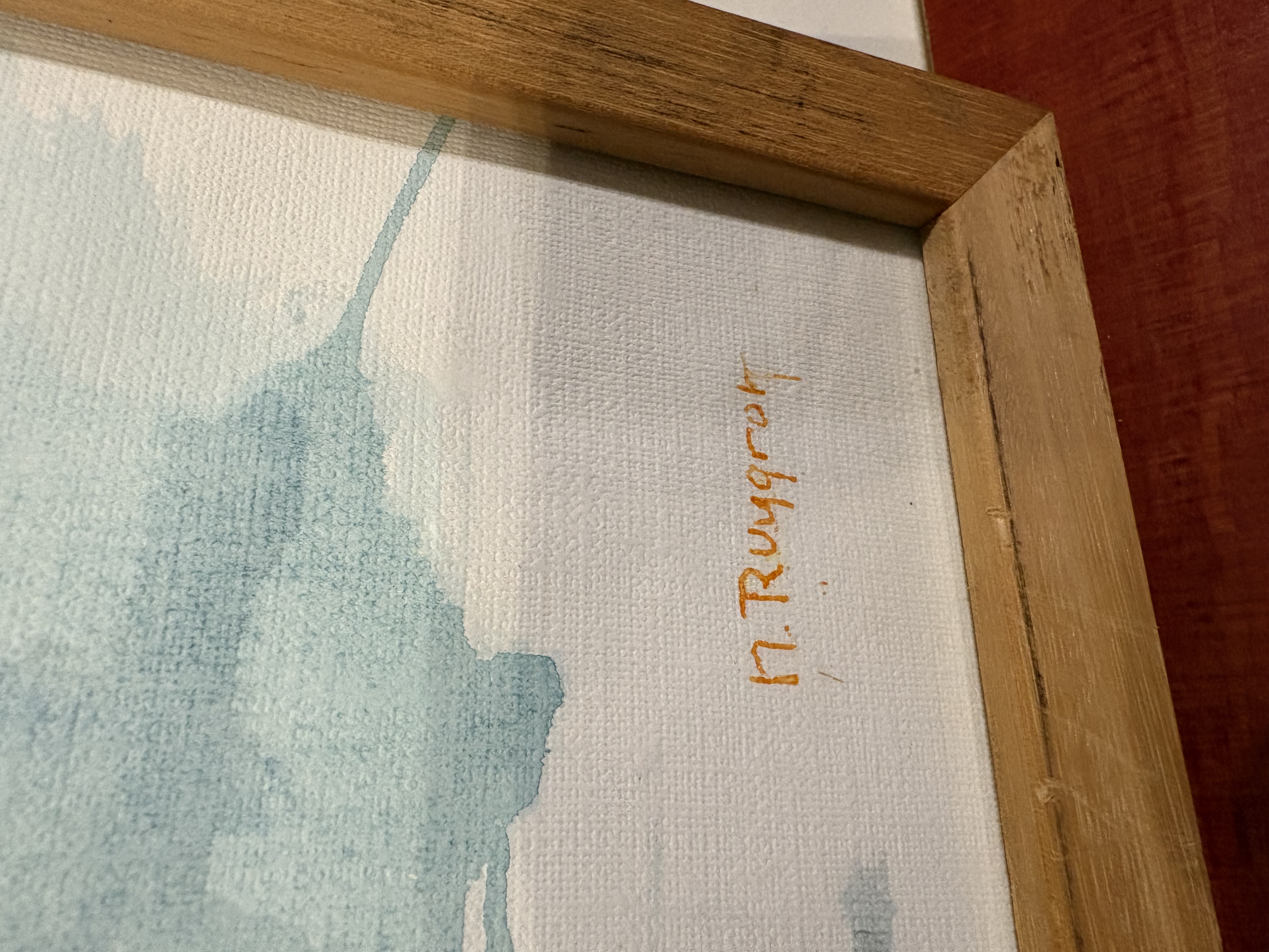 ingelijst. Het kunstwerk is een uniek stuk en zal een mooie toevoeging zijn aan elke kamer. De kleuren zijn zacht en de compositie is rustgevend.