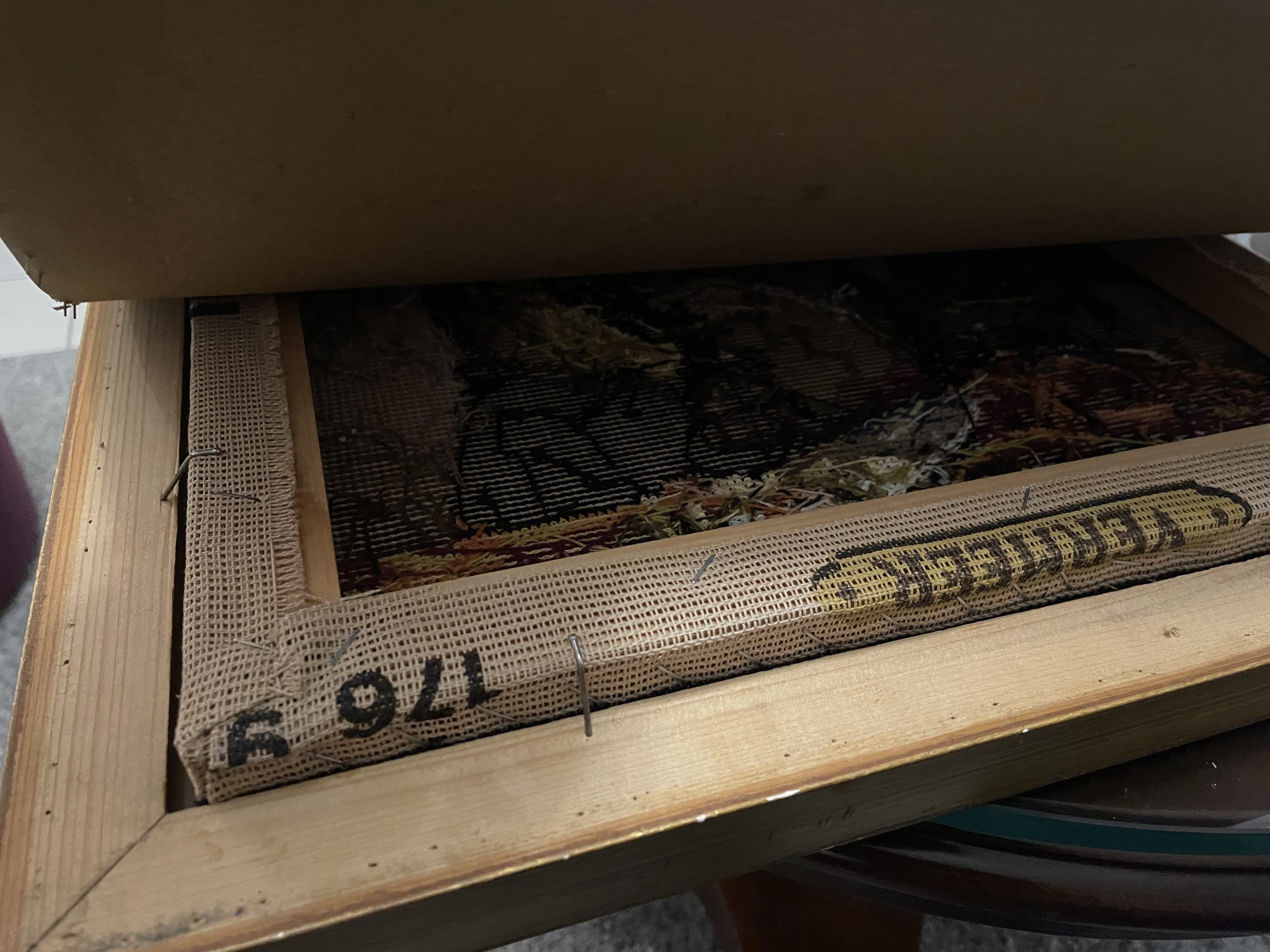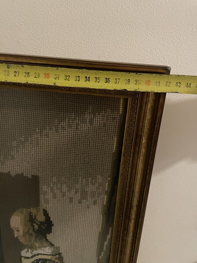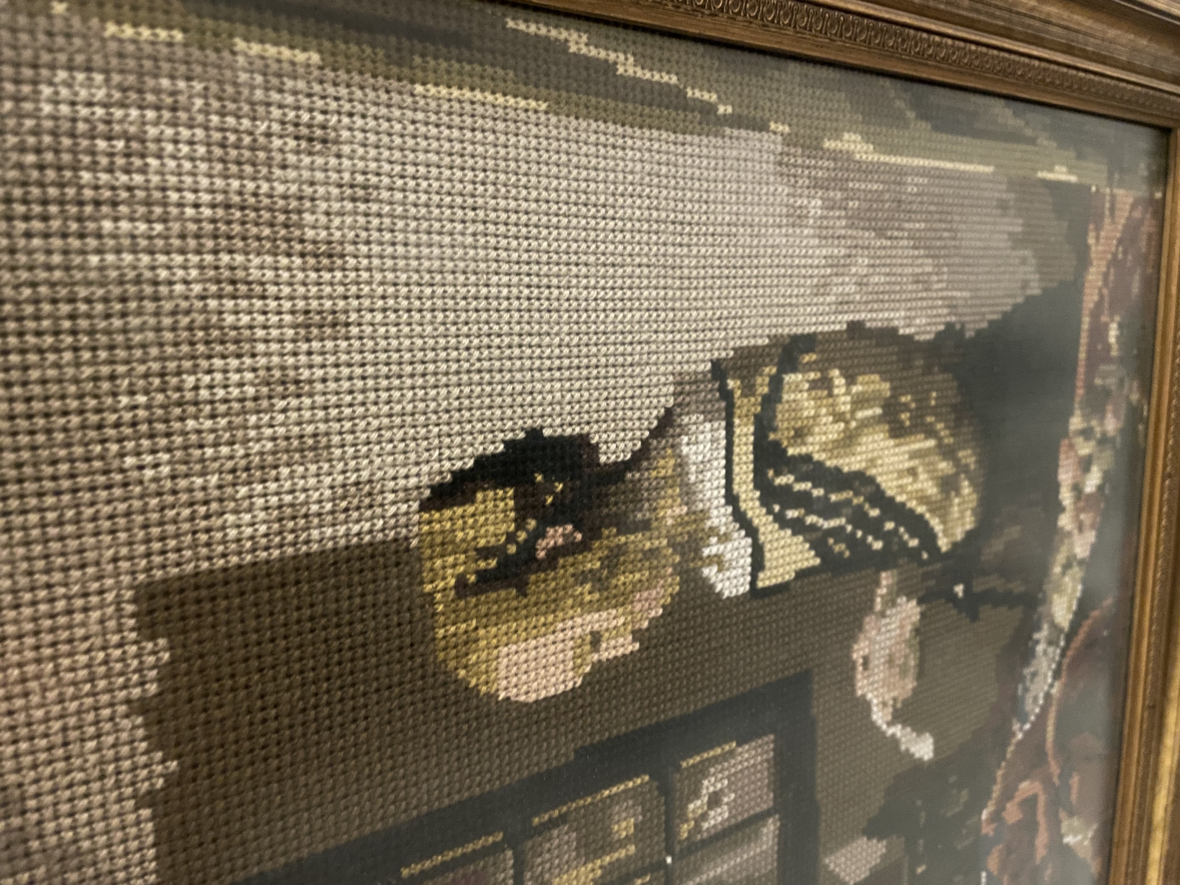 Naaldkunst naar schilderij van  Vermeer, Lezende vrouw Art Gallery Amsterdam die jaren 1985-86 ging dicht
