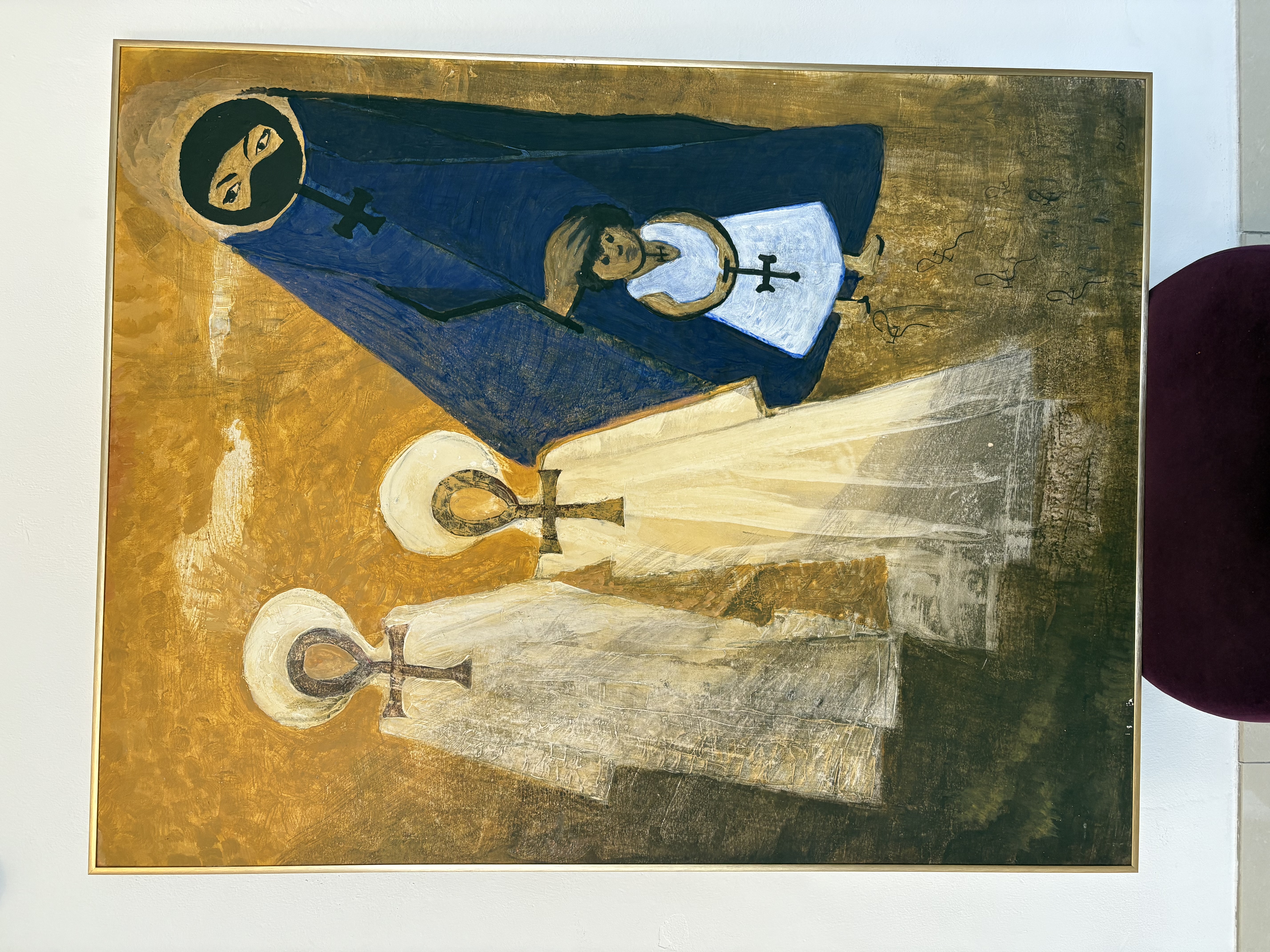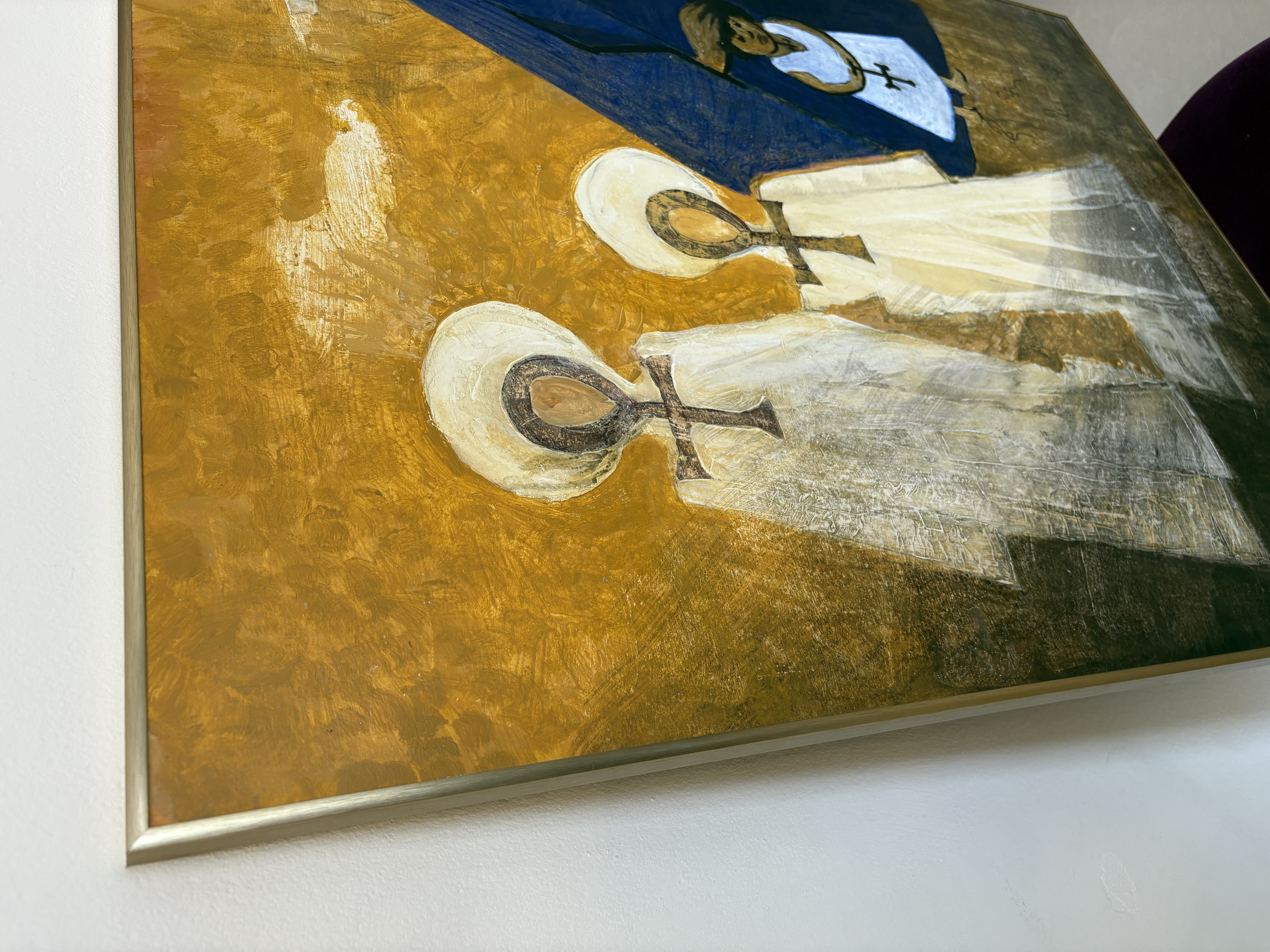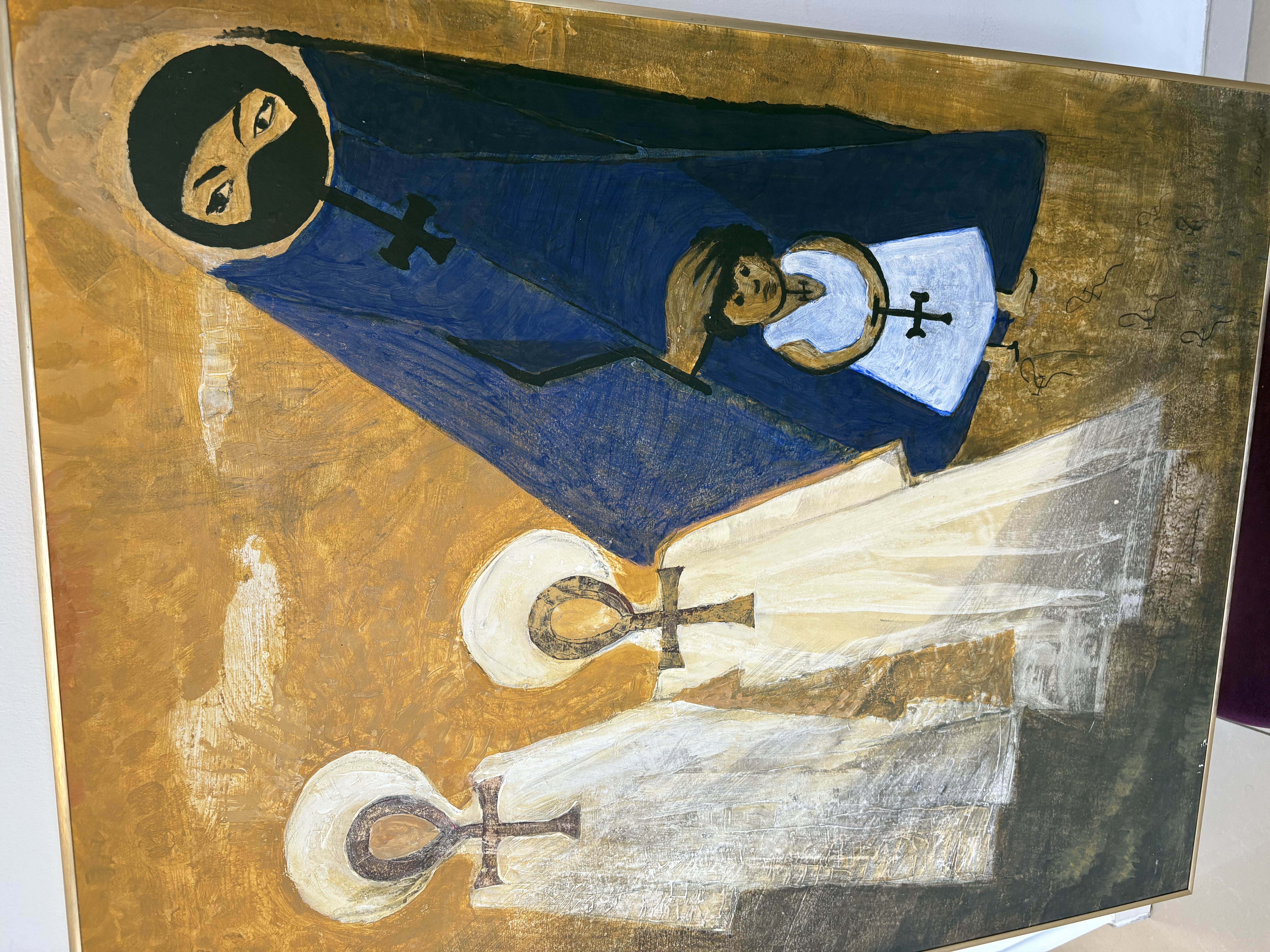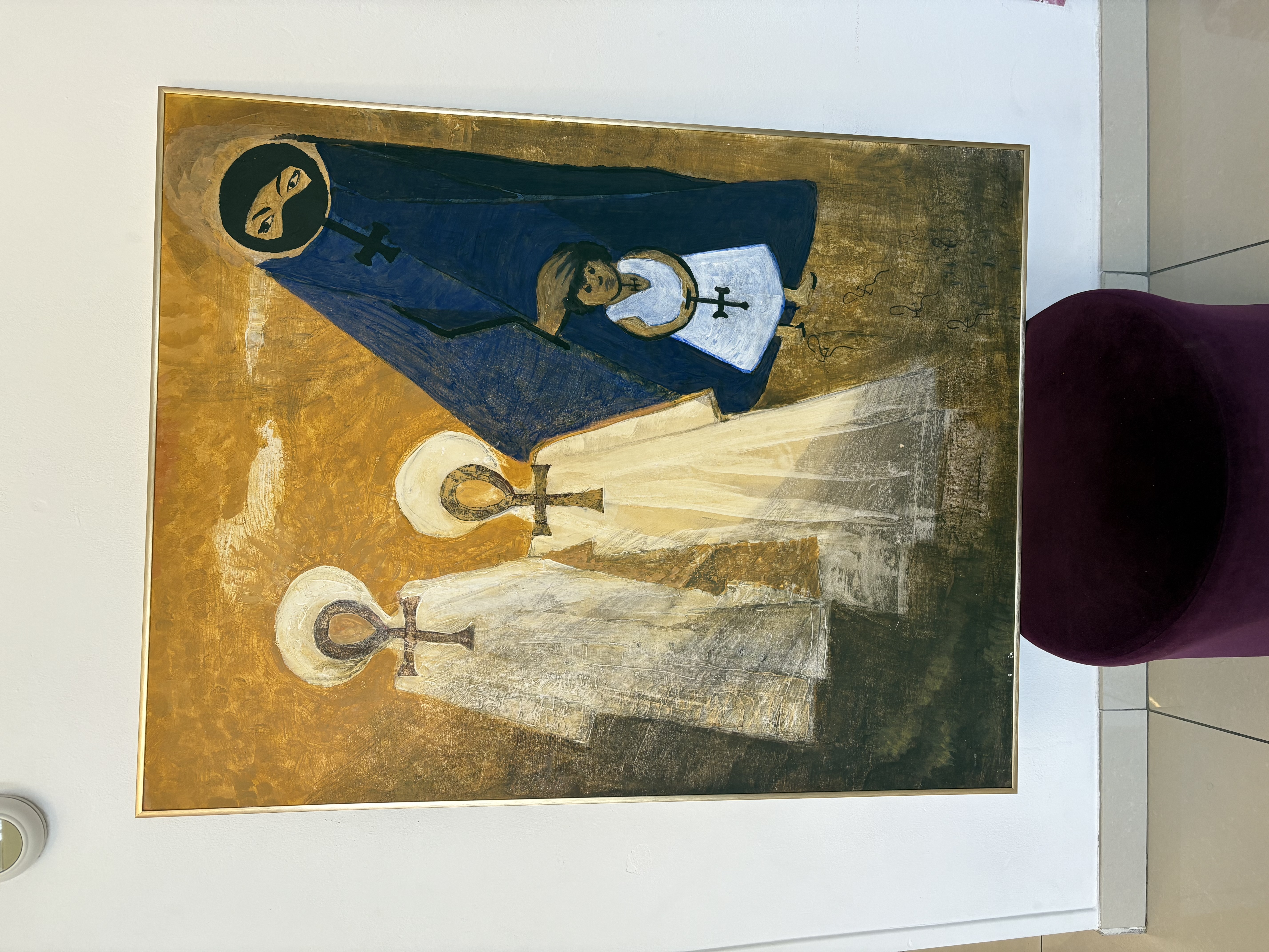 De figuren dragen ankh-symbolen, wat een verwijzing kan zijn naar de Egyptische oorsprong van de Koptische kerk.