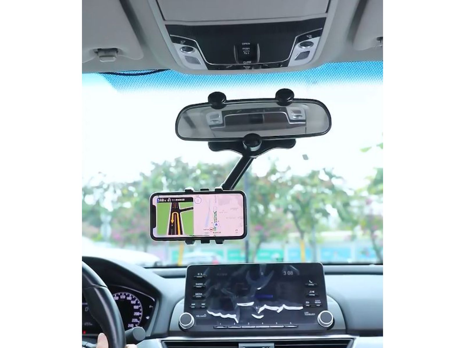 360° Roterende en uitschuifbare telefoonhouder voor op je achteruitkijkspiegel
