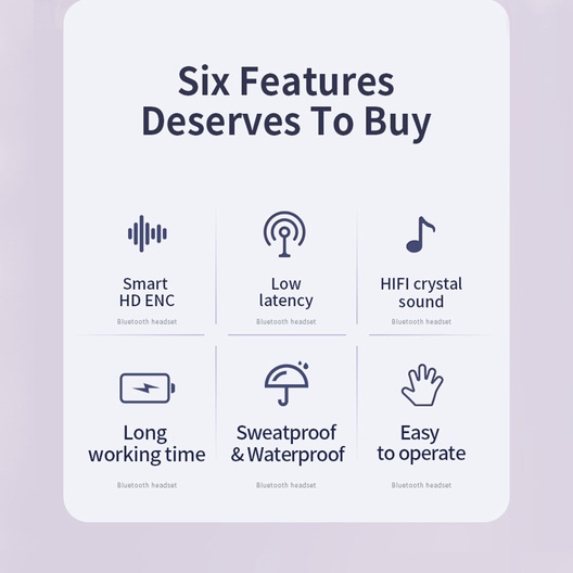 Functies: Smart HD ENC, Geringe Latency, Professioneel HIFI Crystal geluid, extra lange gebruiksduur (6 tot 20 uur), zweet en water bestendig, zeer gebruiksvriendelijk.