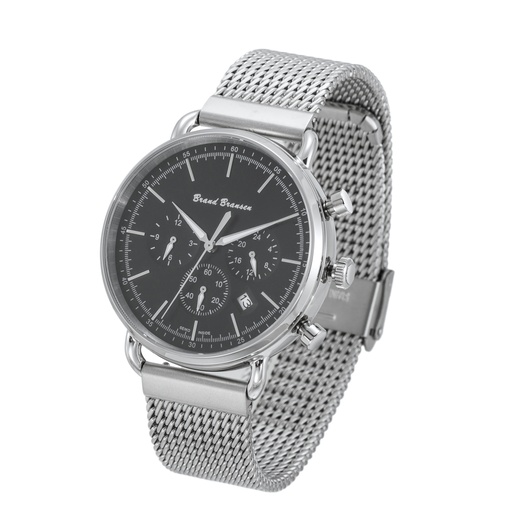 Brand Bransen-Seiko Horloge 4802 * Brand Bransen-Seiko Chronografisch Quartz horloge model: 4802. Dit exclusieve, stijlvolle horloge (beperkte oplage) is RoHS (EU) gecertificeerd. V.v. Saffierglas, VD33 Seiko uurwerk en SR920SW batterij. Kleur, Zilver (mat) met zwarte wijzerplaat voorzien van zilverkleurige tijdaanduiding en knoppen. De horlogekast en horlogeband met clip sluiting zijn vervaardigd van Inox 310. De flexibele horlogeband in combinatie met het geringe gewicht van het horloge, totaalgewicht ca. 95 gram, staat garant voor maximaal draagcomfort. De verwachte levensduur van de batterij is tot 3 jaar.