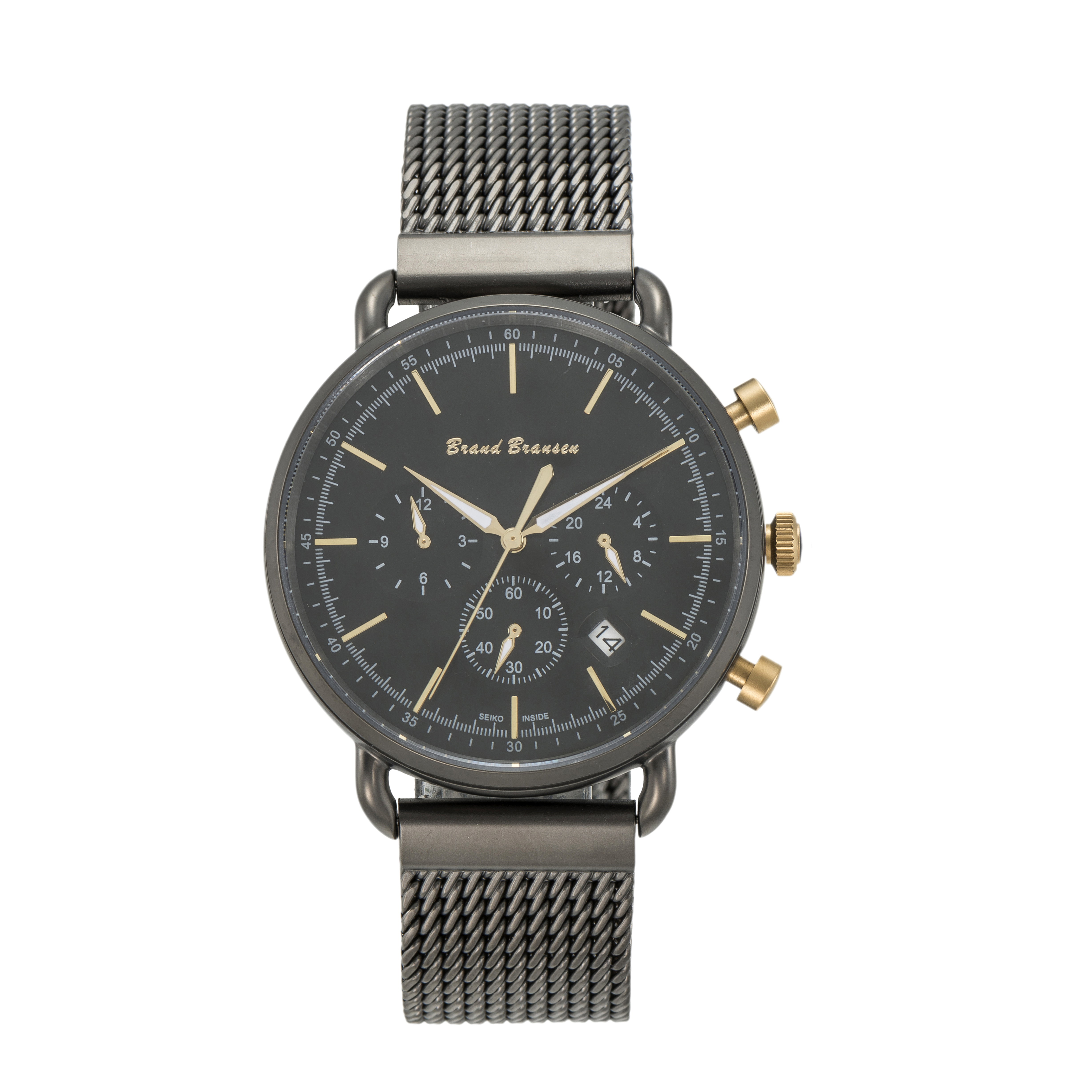 Brand Bransen-Seiko Horloge 4802 * Brand Bransen-Seiko Chronografisch Quartz horloge model: 4802. Dit exclusieve, stijlvolle horloge (beperkte oplage) is RoHS (EU) gecertificeerd. V.v. Saffierglas, VD33 Seiko uurwerk en SR920SW batterij. Kleur, Horlogekast: Antraciet(mat), horlogeband: mat antraciet, wijzerplaat: zwart, knoppen: Goud, tijdsaanduiding: goud/wit. De horlogekast en horlogeband met clip sluiting zijn vervaardigd van Inox 310. De flexibele horlogeband in combinatie met het geringe gewicht van het horloge, totaalgewicht ca. 95 gram, staat garant voor maximaal draagcomfort. De verwachte levensduur van de batterij is tot 3 jaar.