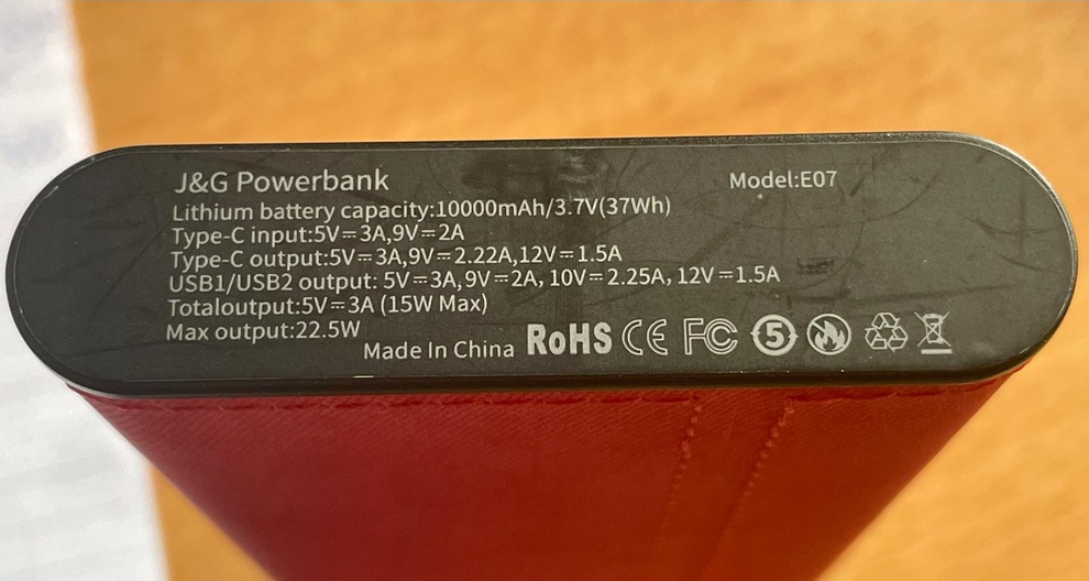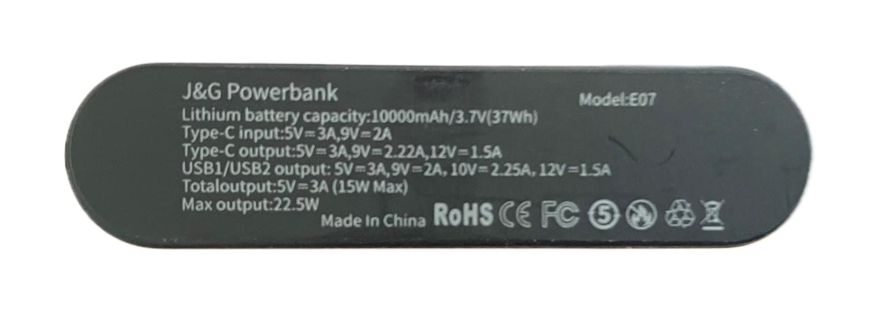 J&G® Super Powerbank, Model E07 10.000 mAh. Snellader met een output van maar liefst 22,5W