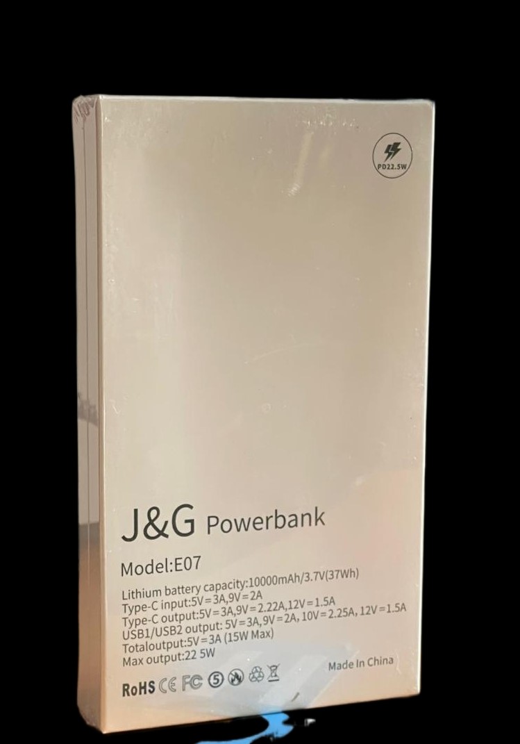 - Hoge Capaciteit: Met een indrukwekkende capaciteit van 10.000 mAh (37W) zorgt deze J&G® powerbank ervoor dat uw apparaten altijd opgeladen en klaar voor gebruik zijn.