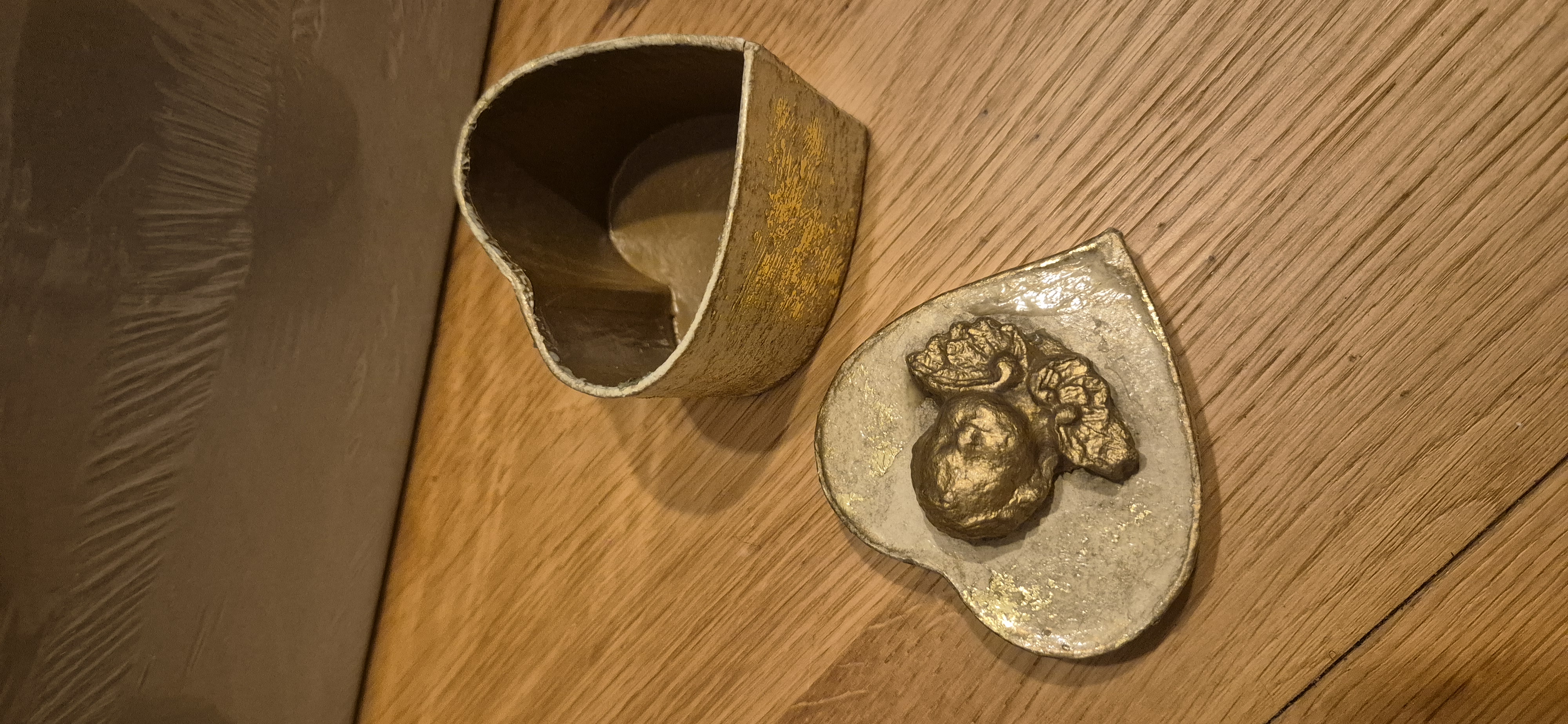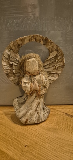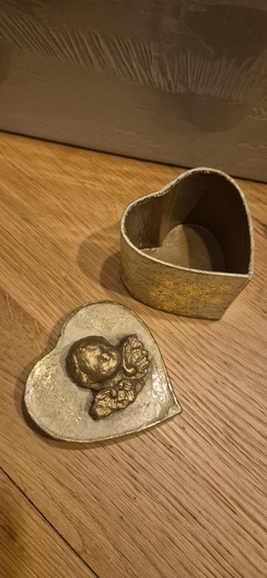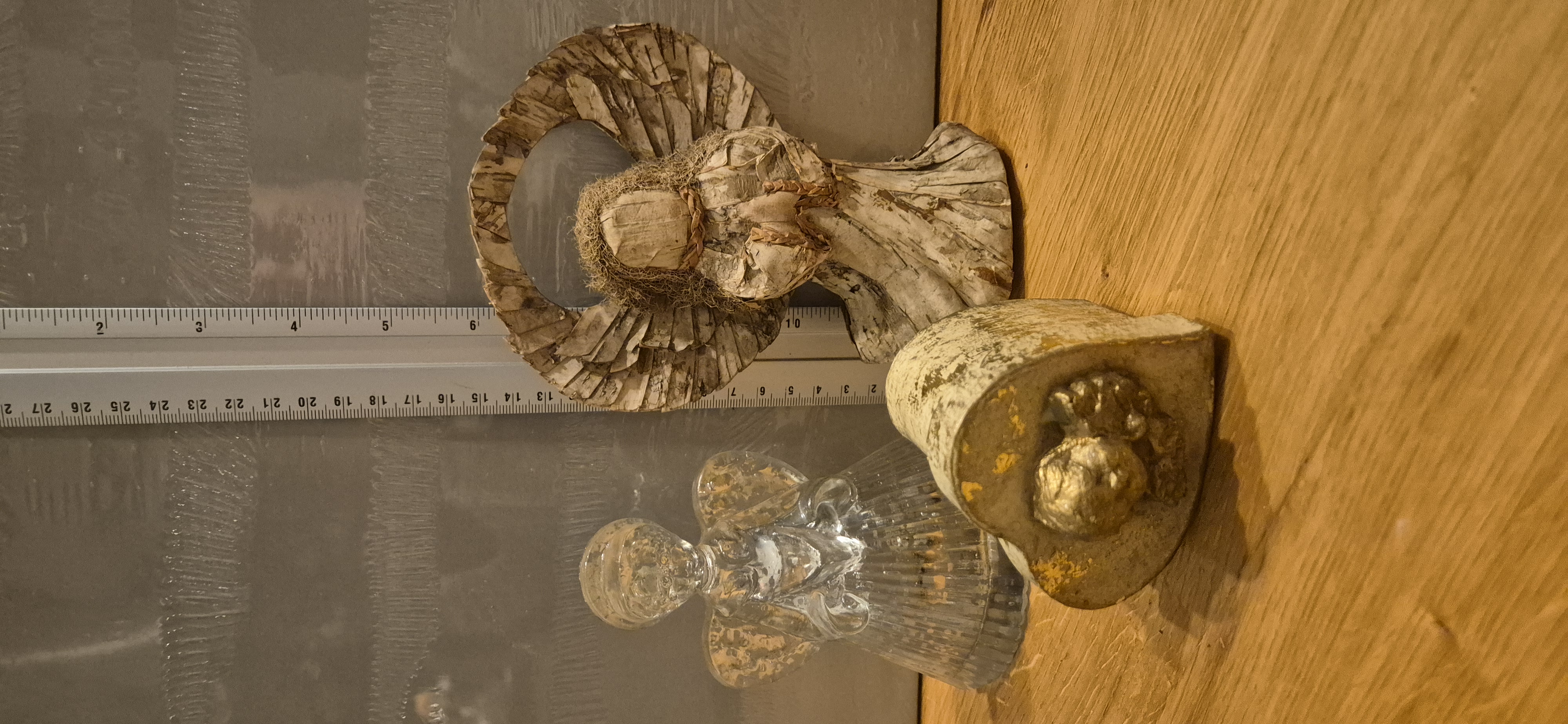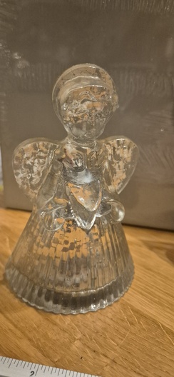1 glazen theelichthouder, 1 natuurlijke materialen engel, 1 hartvormig doosje