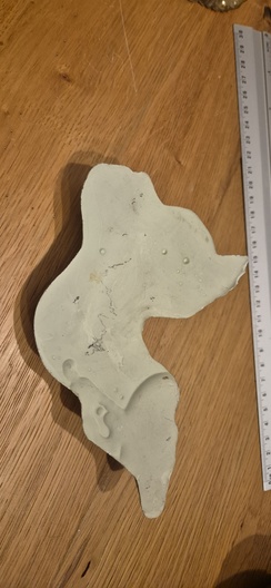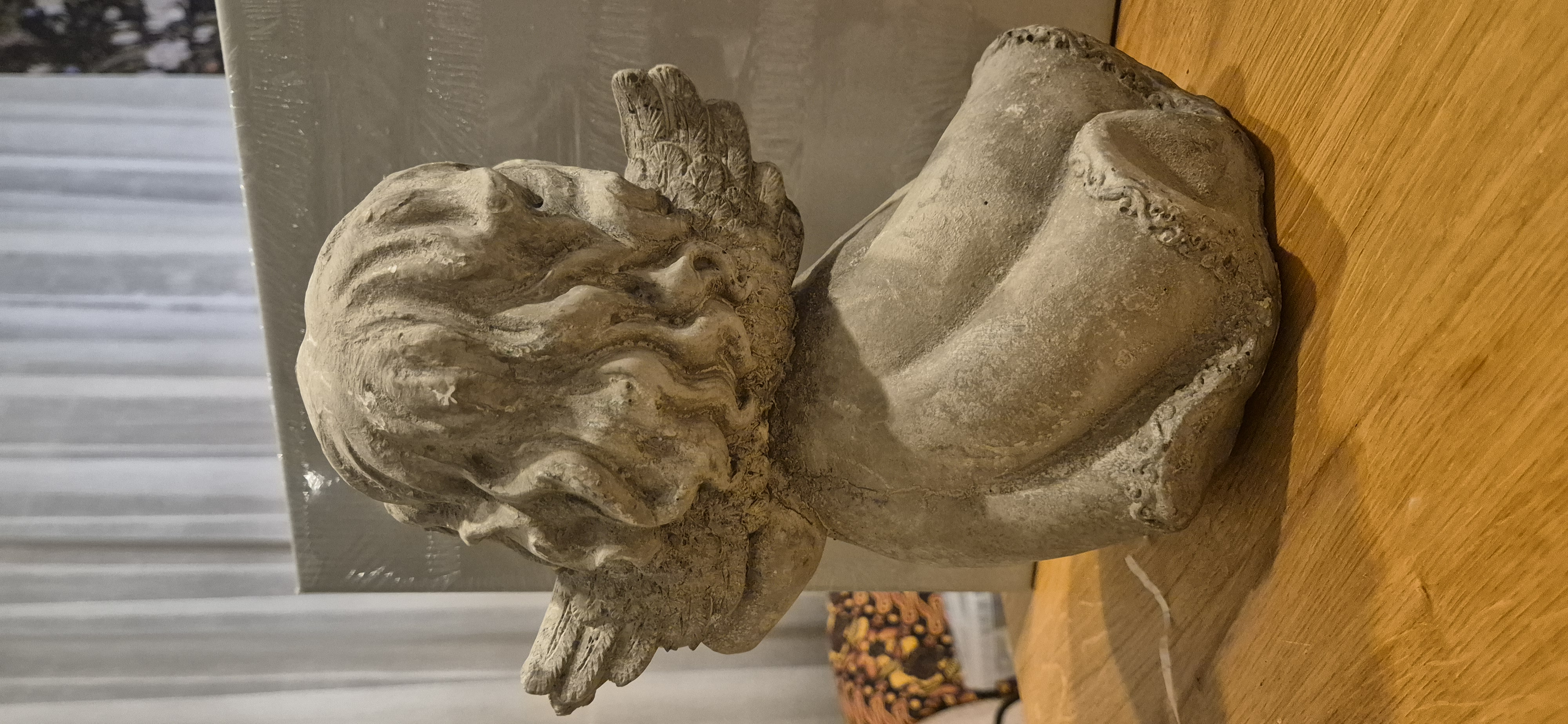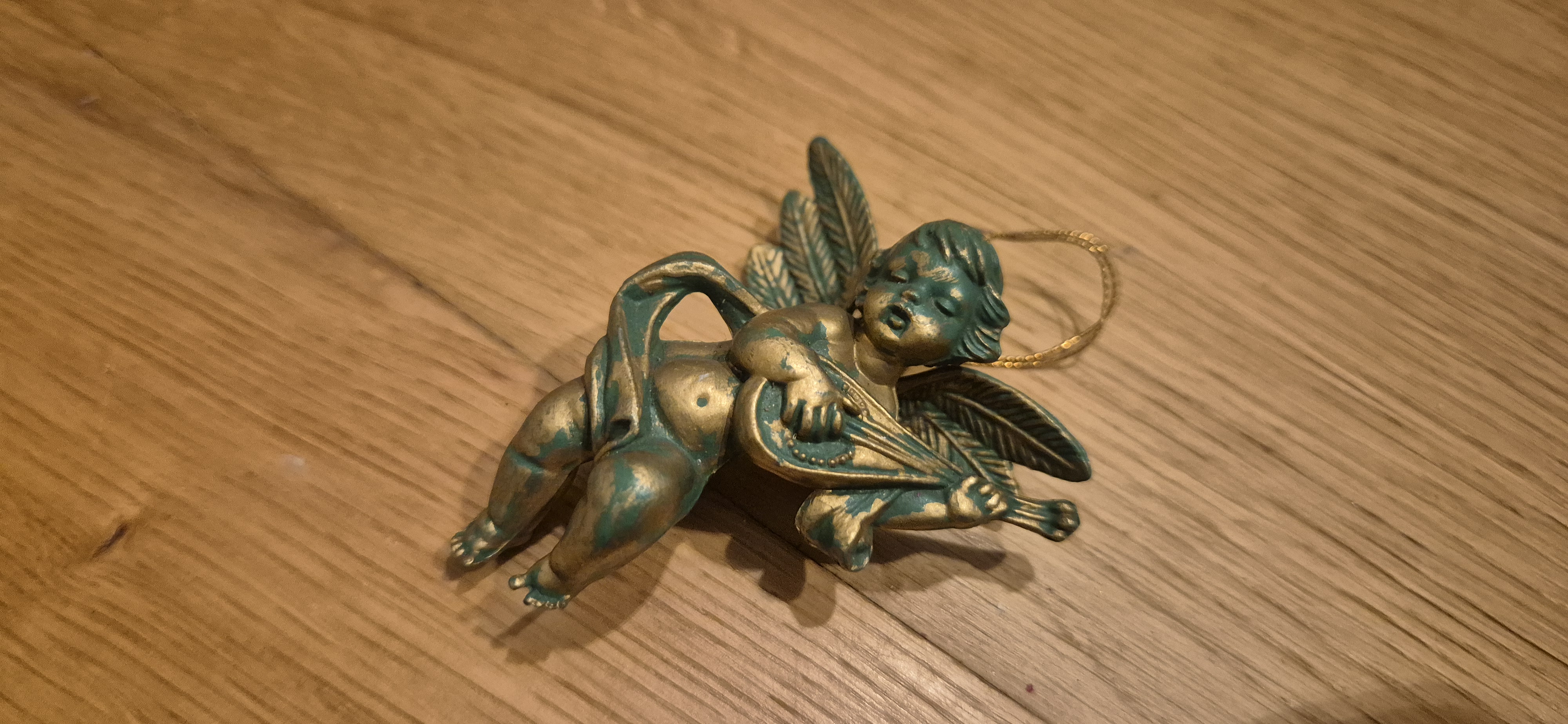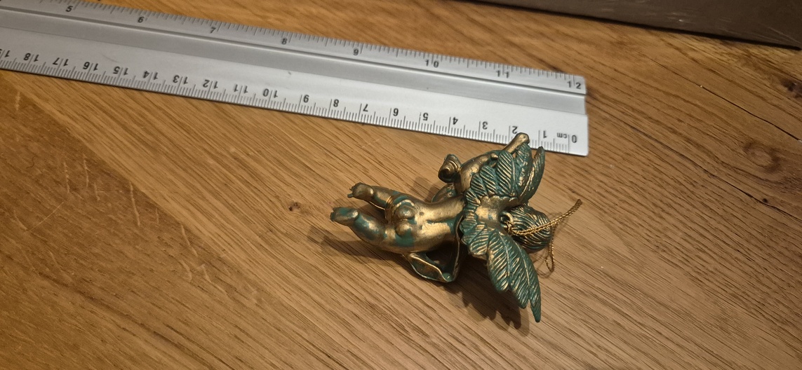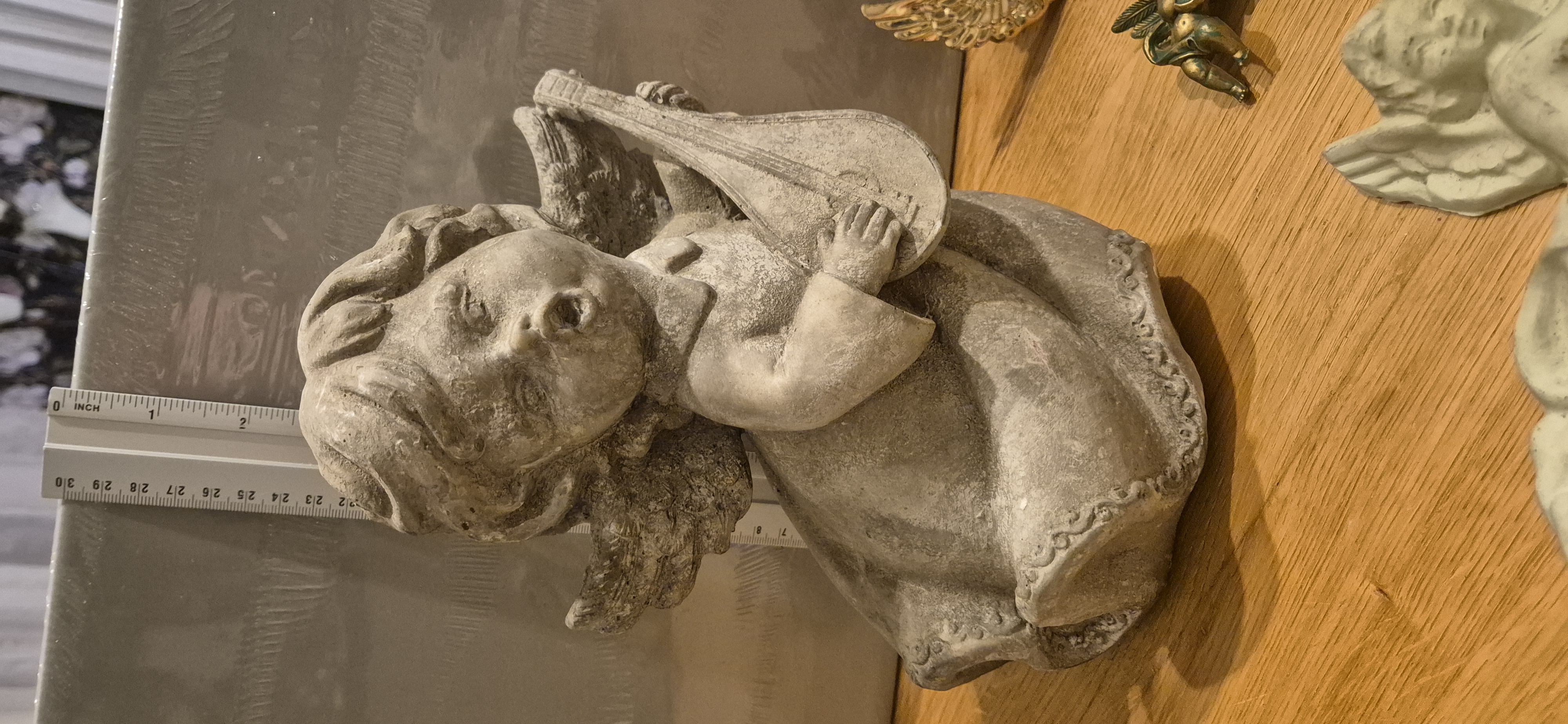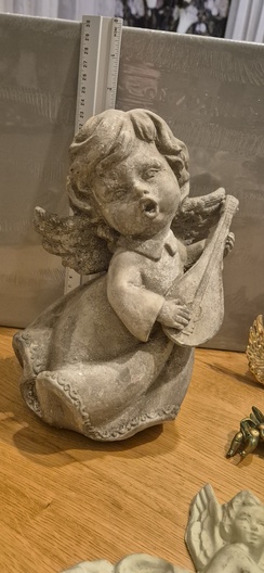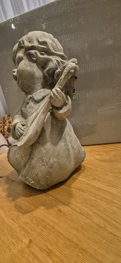 1 groof beeld met gitaar , 1 sculptuur, 1 hang ornament , 1 clip