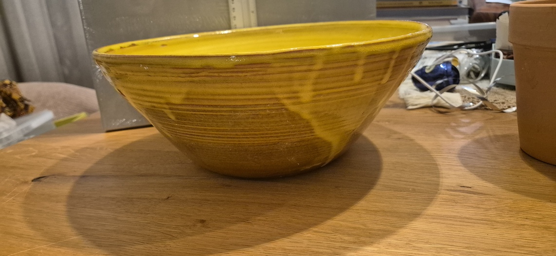 Grote keramieken schaal – geel/bruin geglazuurd