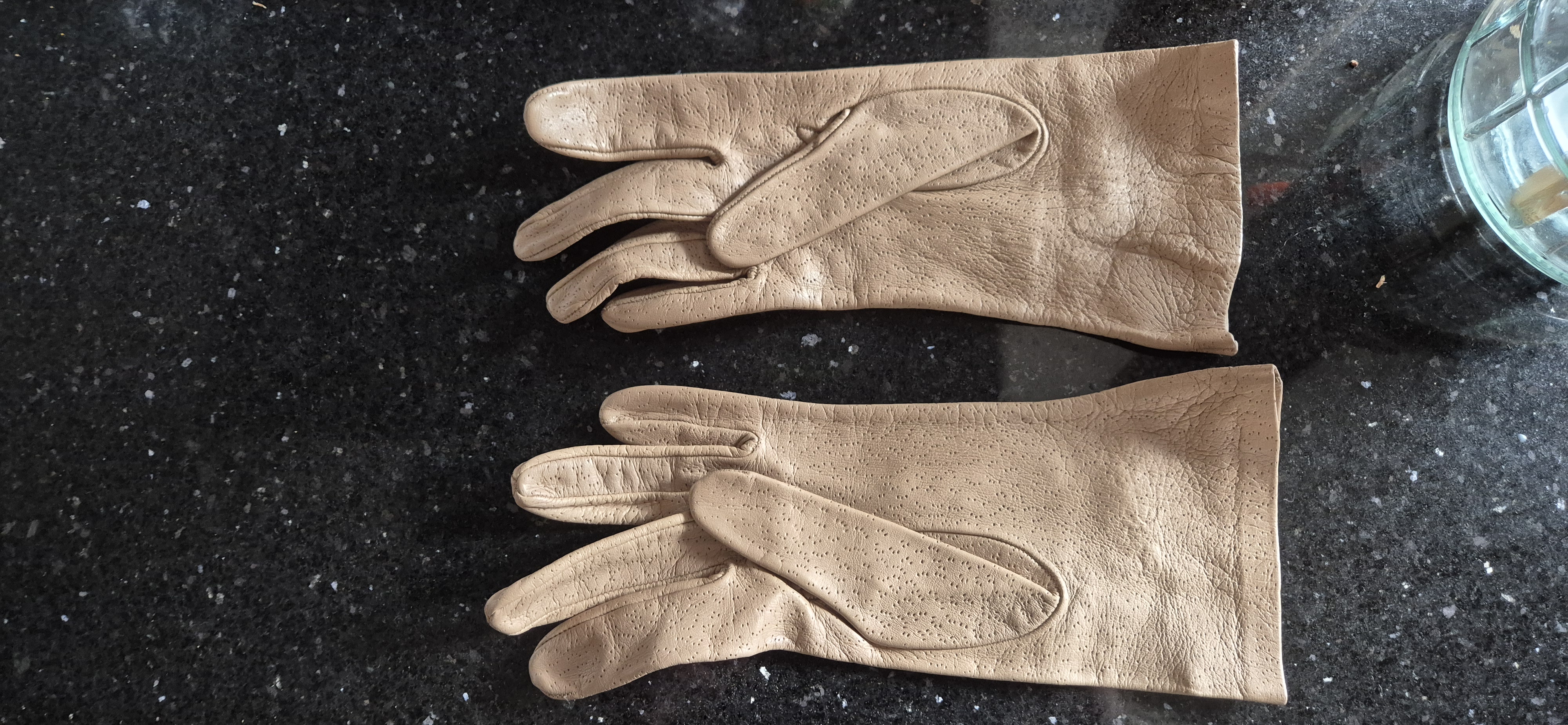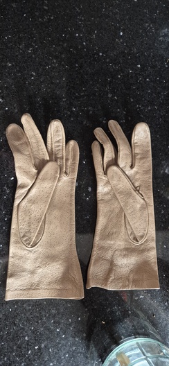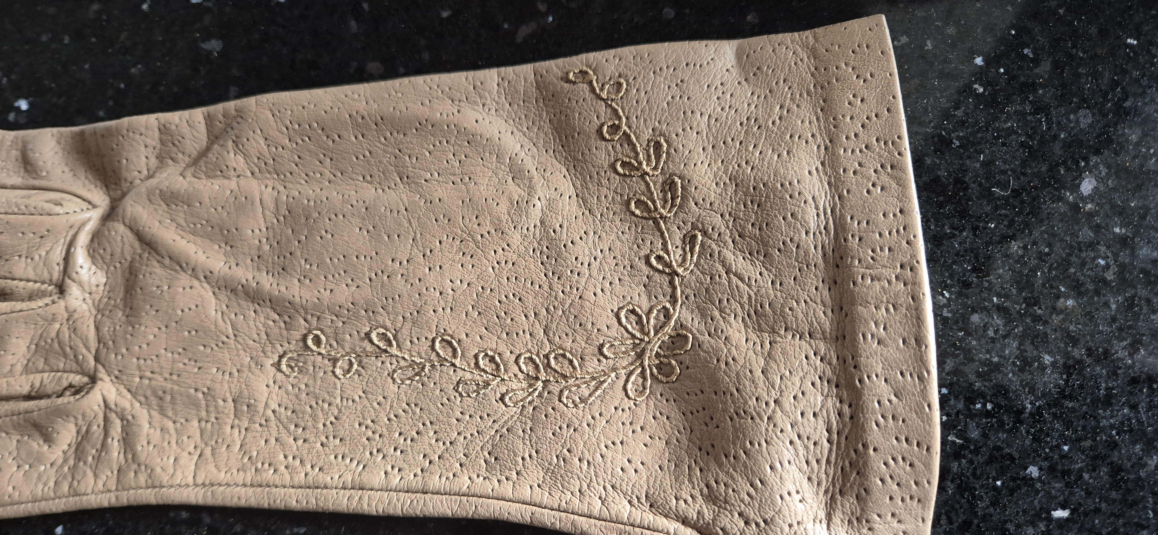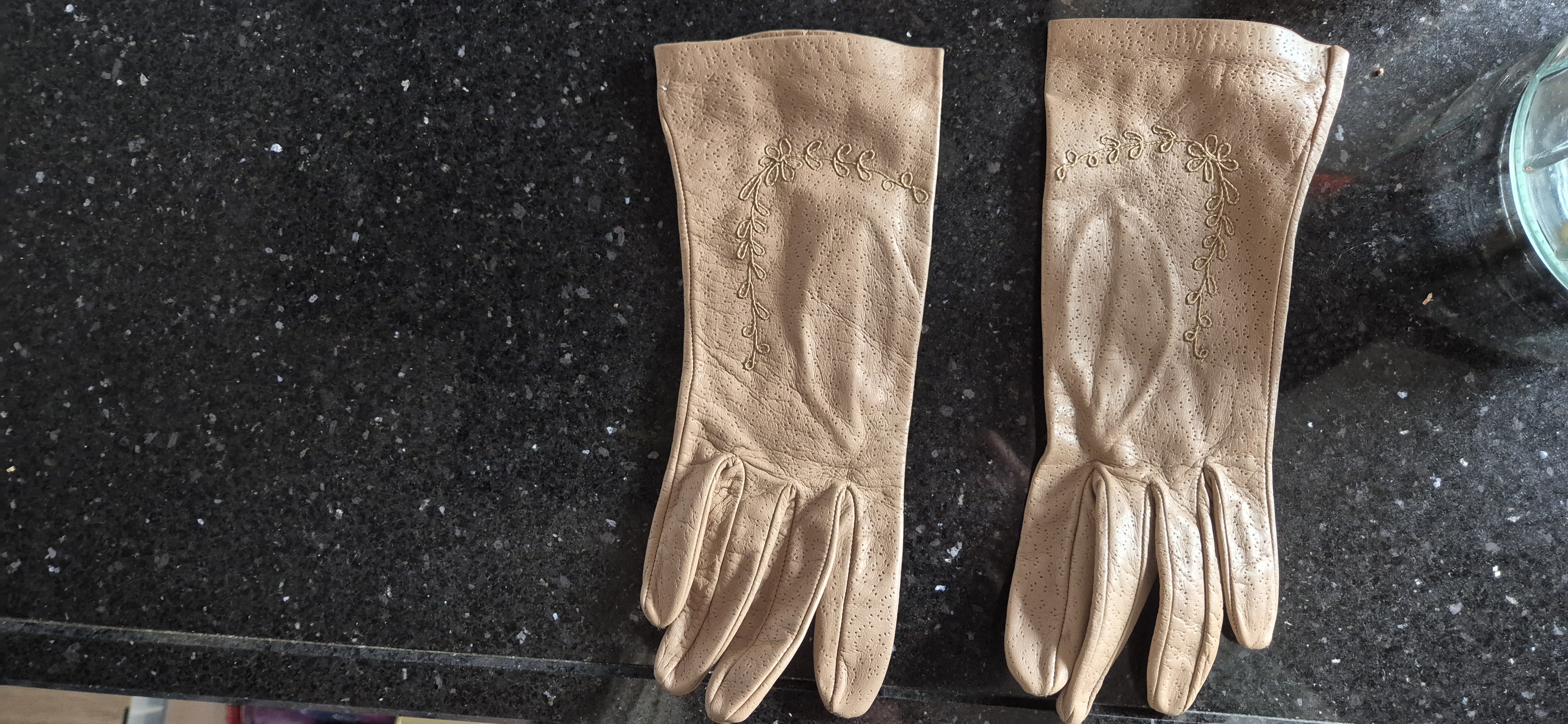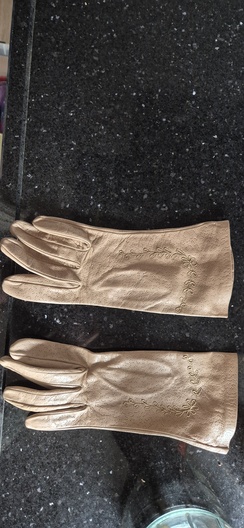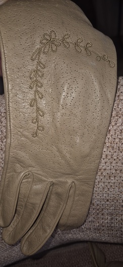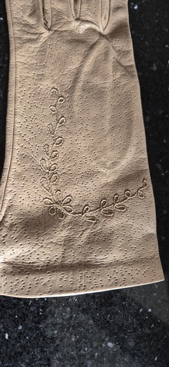 Vintage leren dameshandschoenen – beige – met sierstiksel