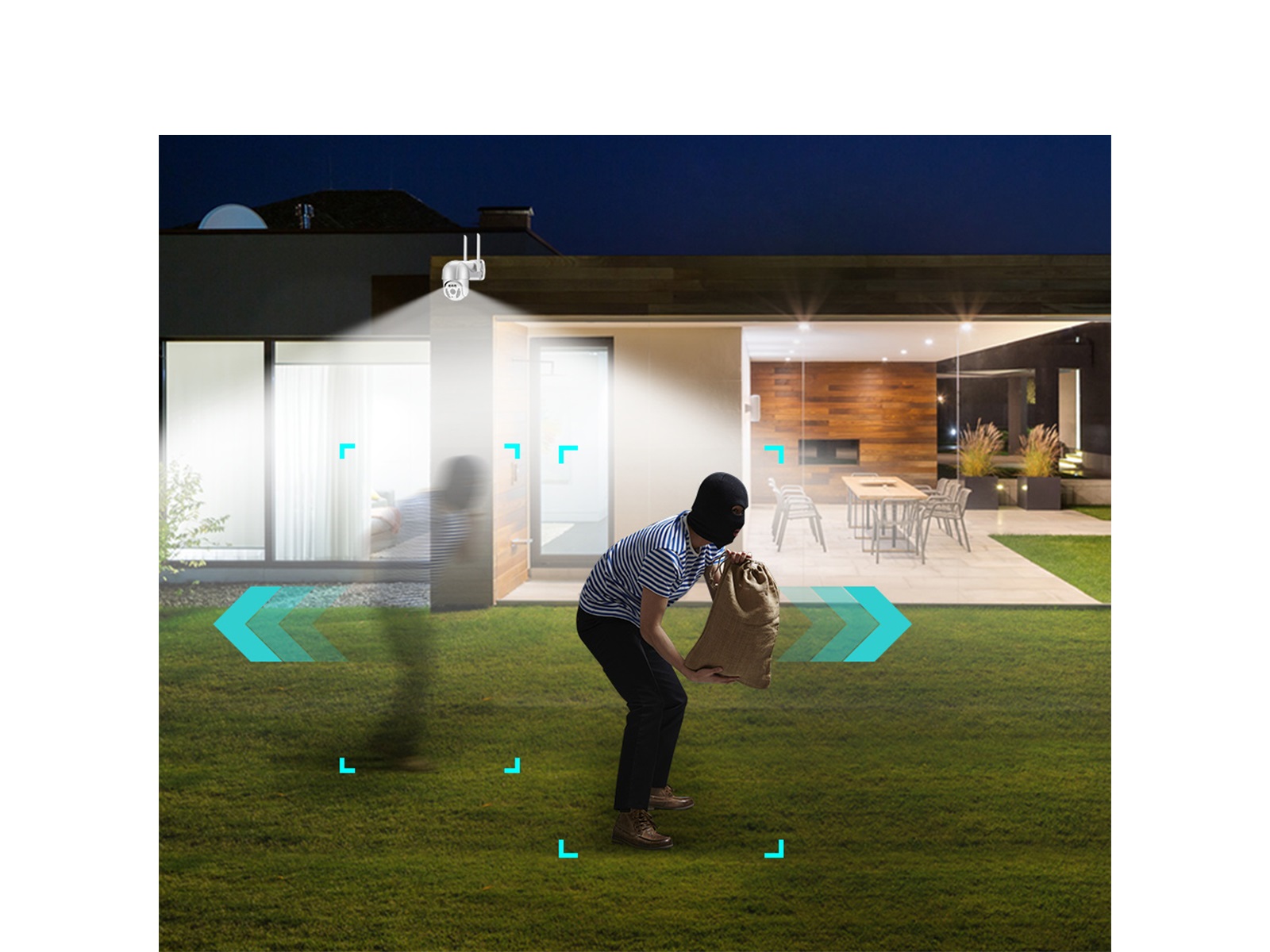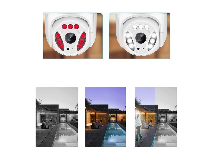 Deze camera ontgaat niets. Met een horizontale rotatie van 355 graden en een verticale hoek van 90 graden kan de camera tot 30 meter haarscherp beeld weergeven, zowel overdag als in de nacht. De camera ondersteund ONVIF protocol, heeft een audio opname functie en twee-weg audio. Mocht er een ongewenste gast rond uw huis lopen kunt u deze dus zelfs horen en verbaal wegsturen. Installatie kan zowel gedraad als via Wi-Fi. De camera heeft een IP65 waterdicht standaard en kan dus overal geplaatst worden. Met de mogelijkheid om zowel op iOS en Android de beelden te bekijken, kan er ook een pushnotificatie worden ontvangen bij bewegingsdetectie. De camera zal u altijd een veilig gevoel geven, of u nu wel of niet thuis bent.