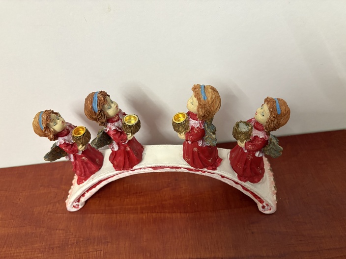 Porselein kandelaar "Vier Engelen op de brug"