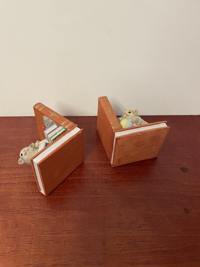 Boekensteunen met decoratieve katten