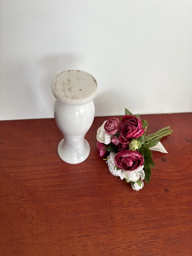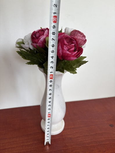 Witte marmeren vaas met kunstbloemen (**1)