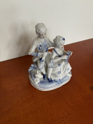 Porseleinen beeld van een man en vrouw