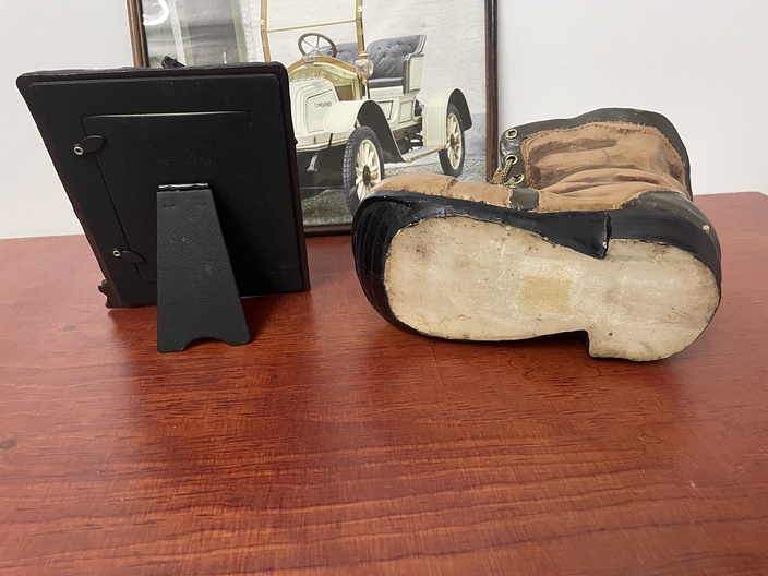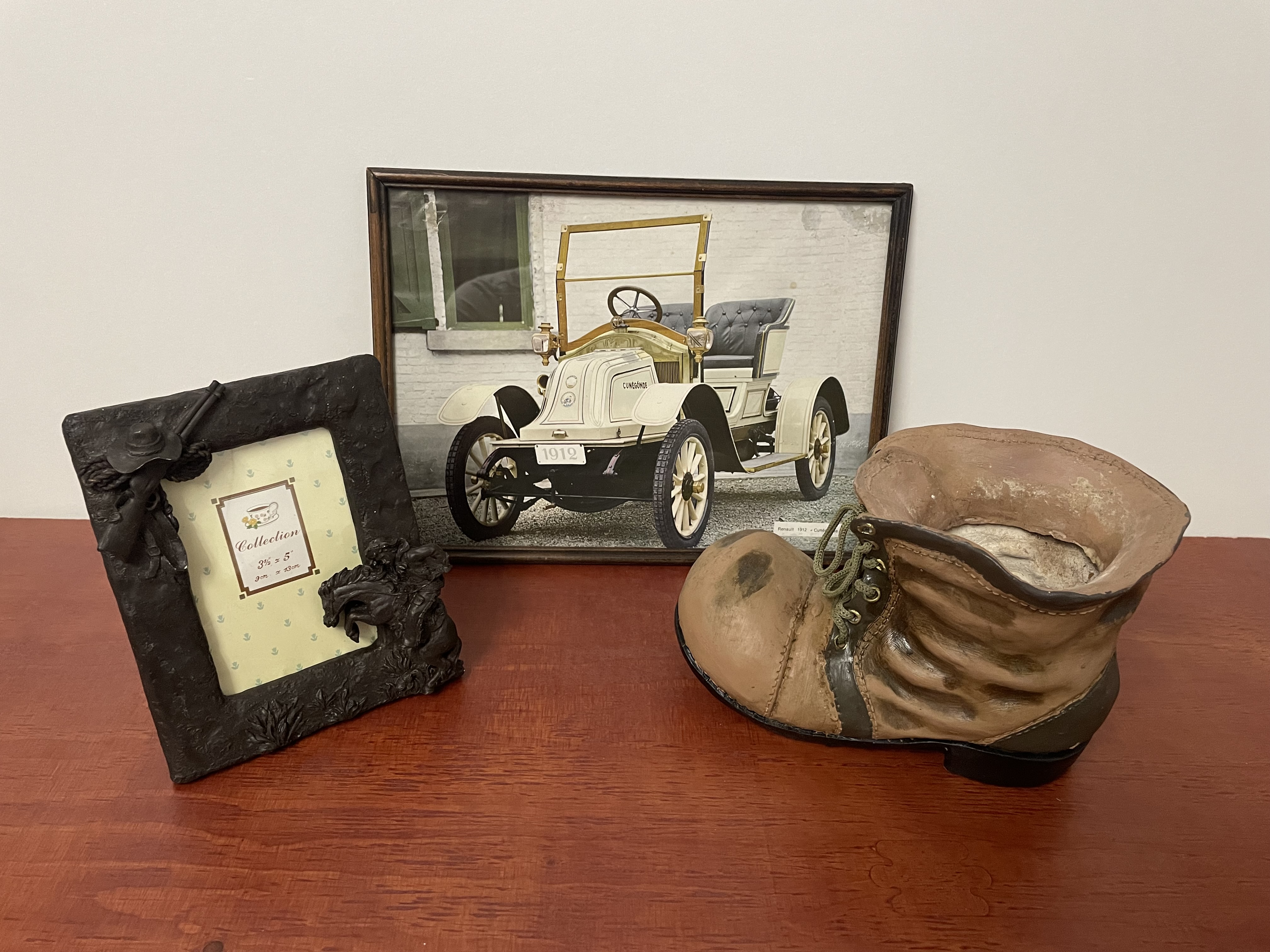 Foto lijst cowboy oude auto print en schoen als bloempot