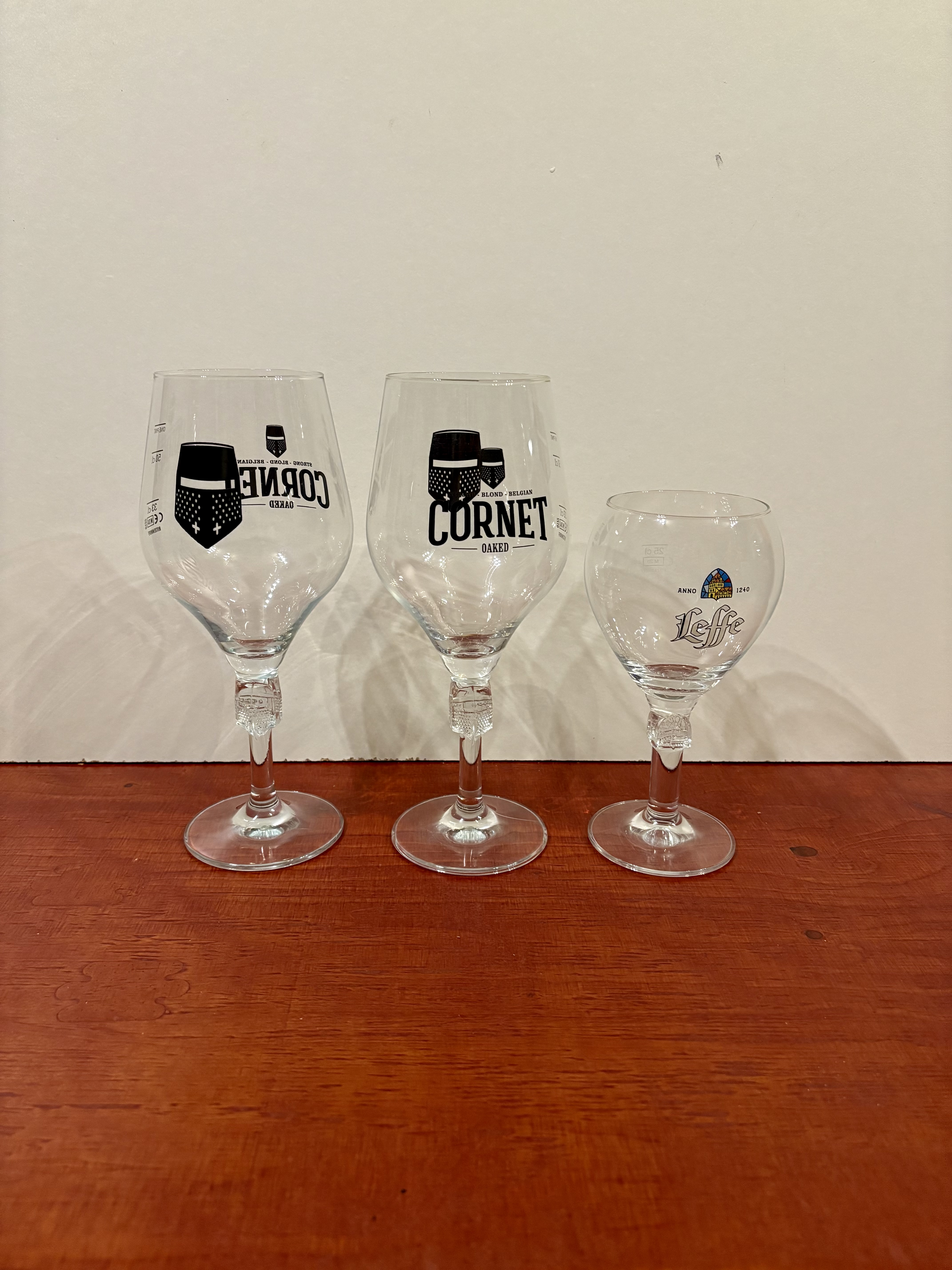 Bier glazen "2x CORNET" en een LEFFE