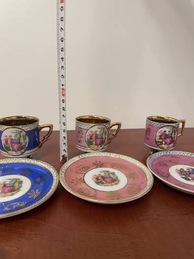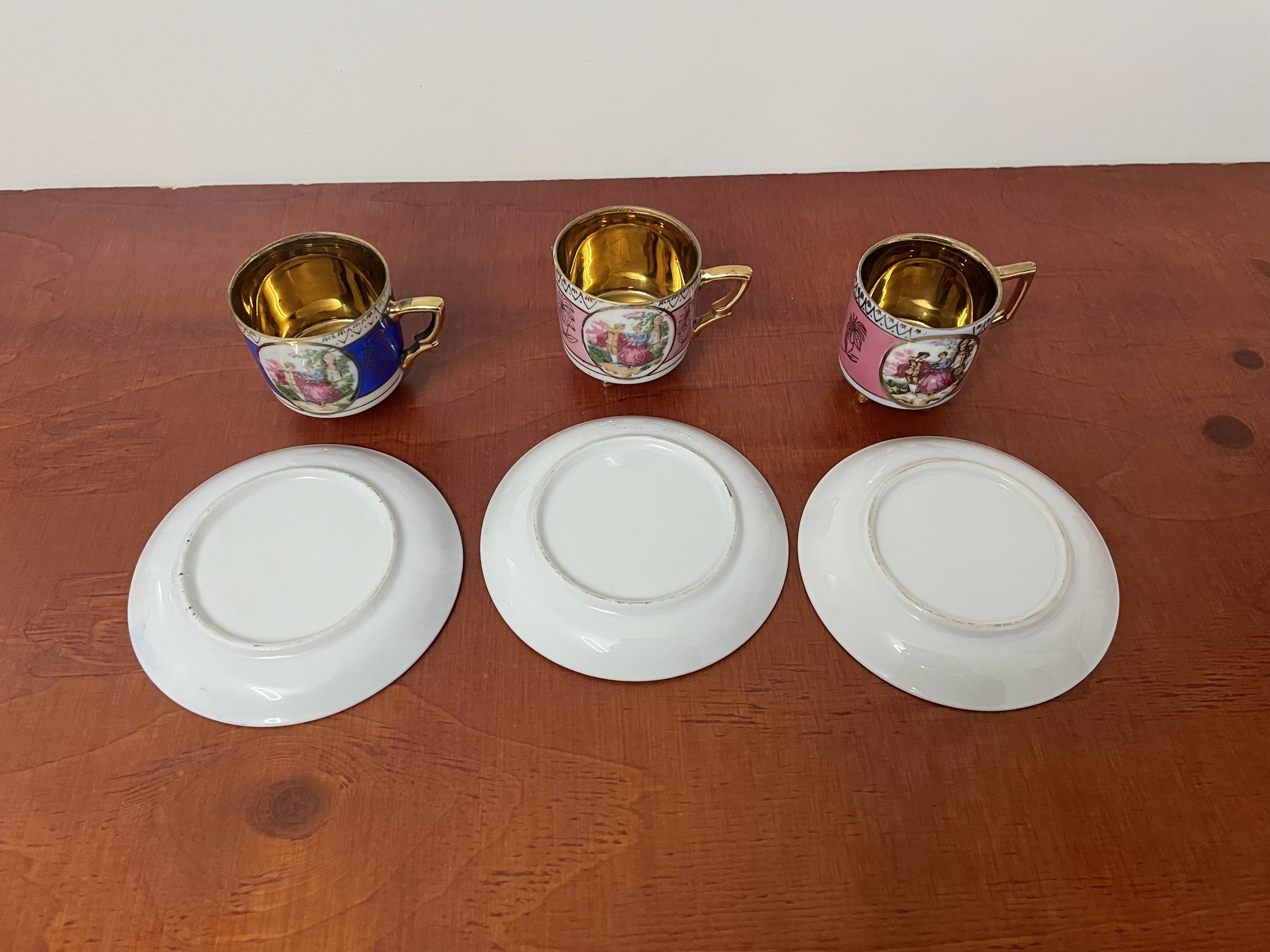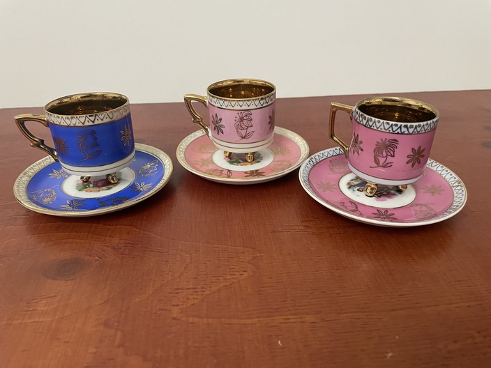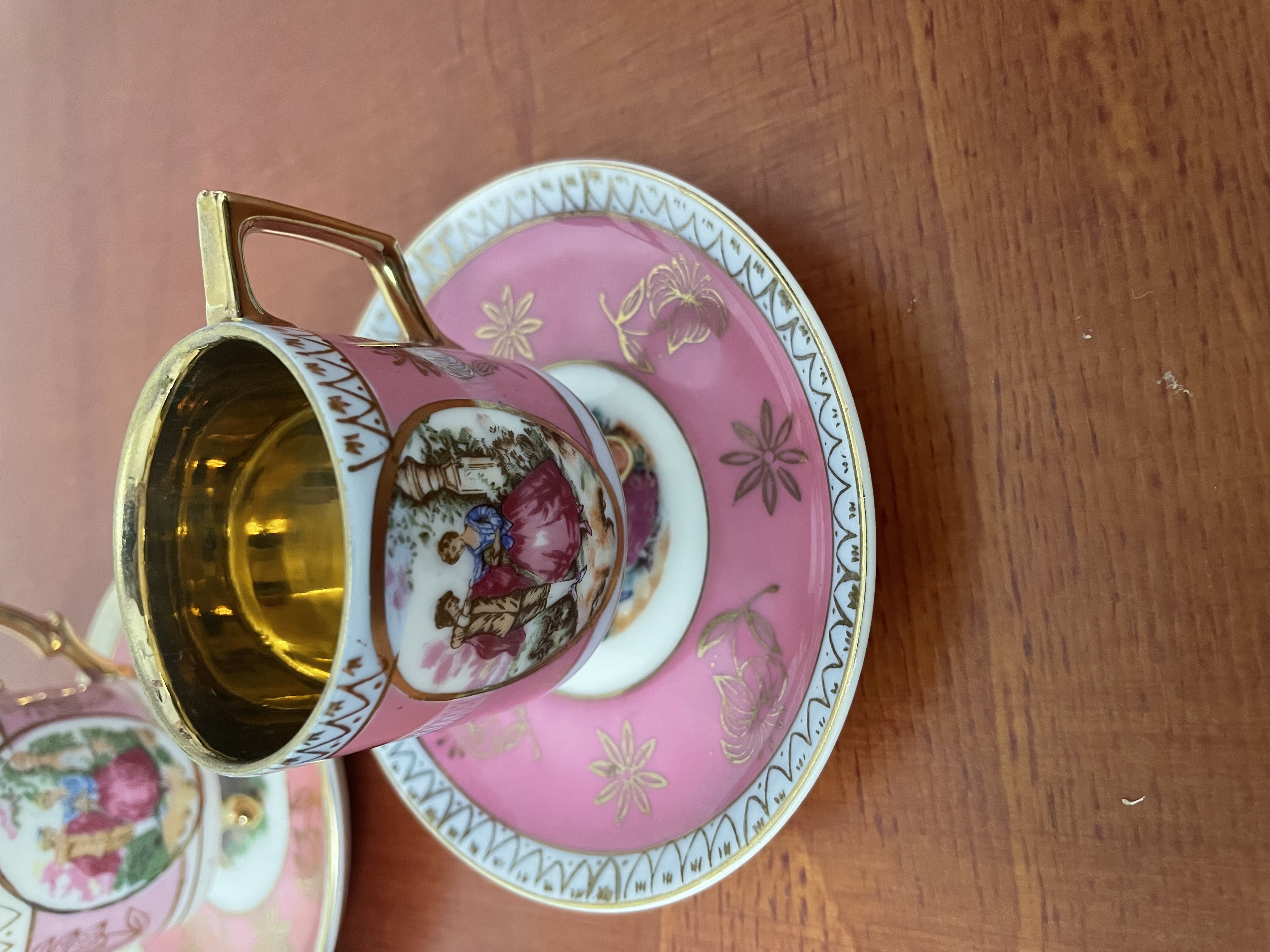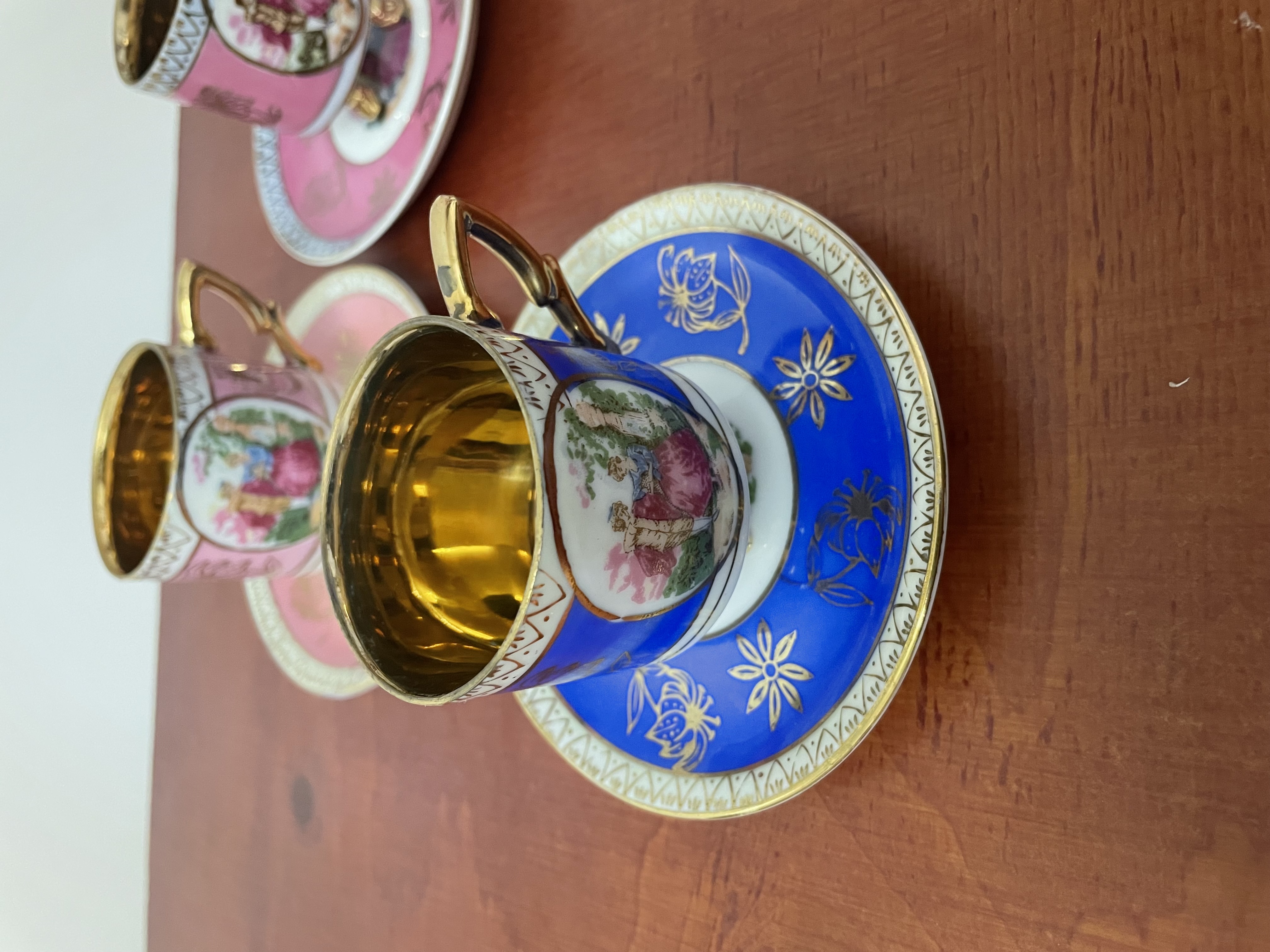 Porseleinen koffie bekers in goudkleurige binnenkant