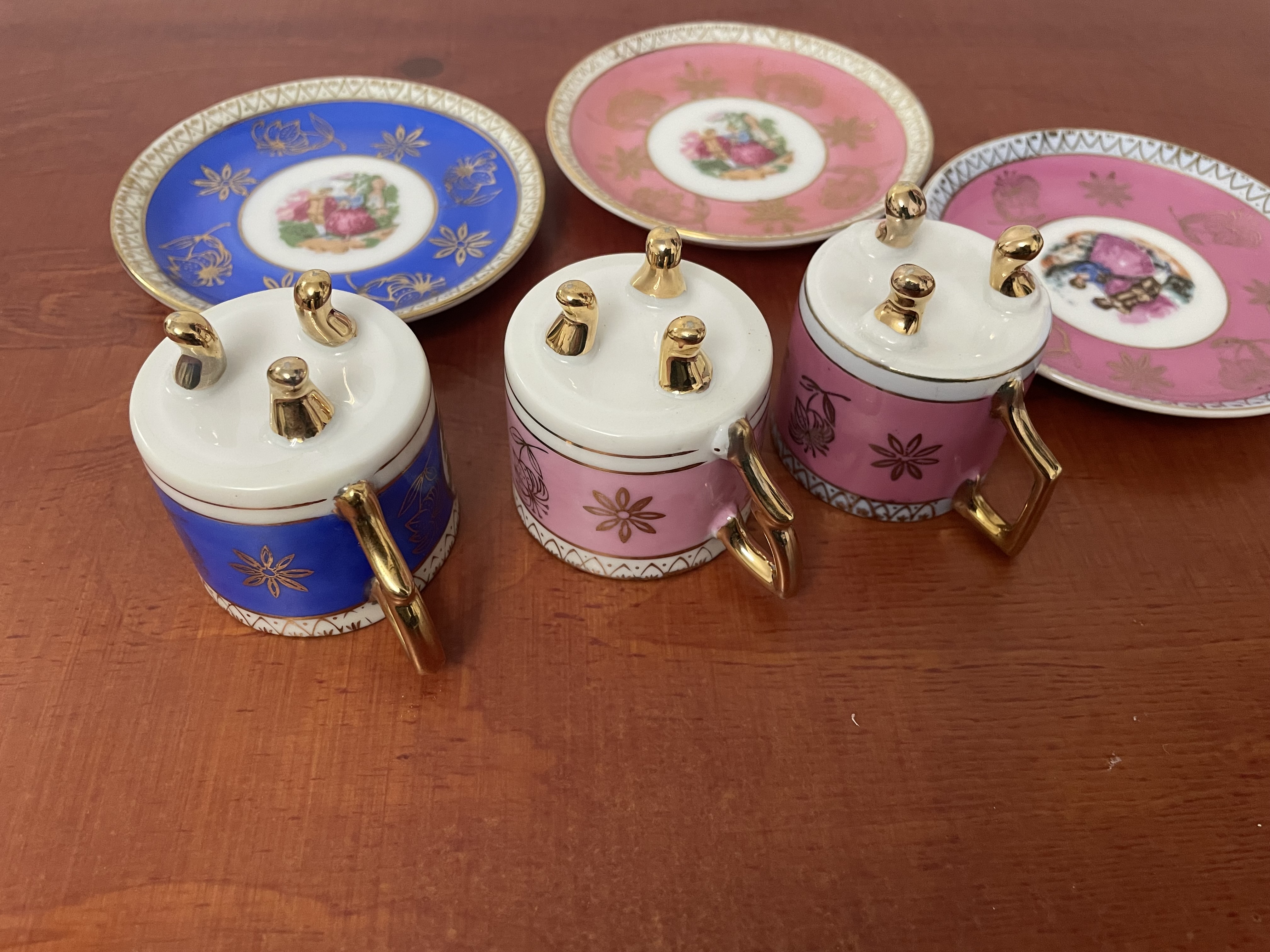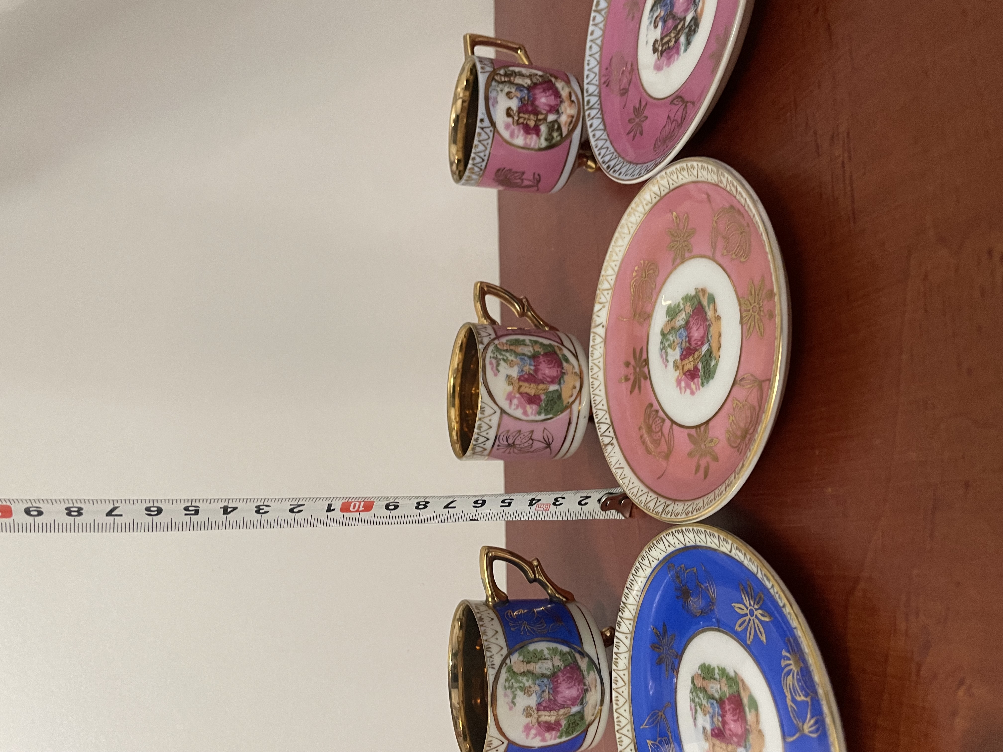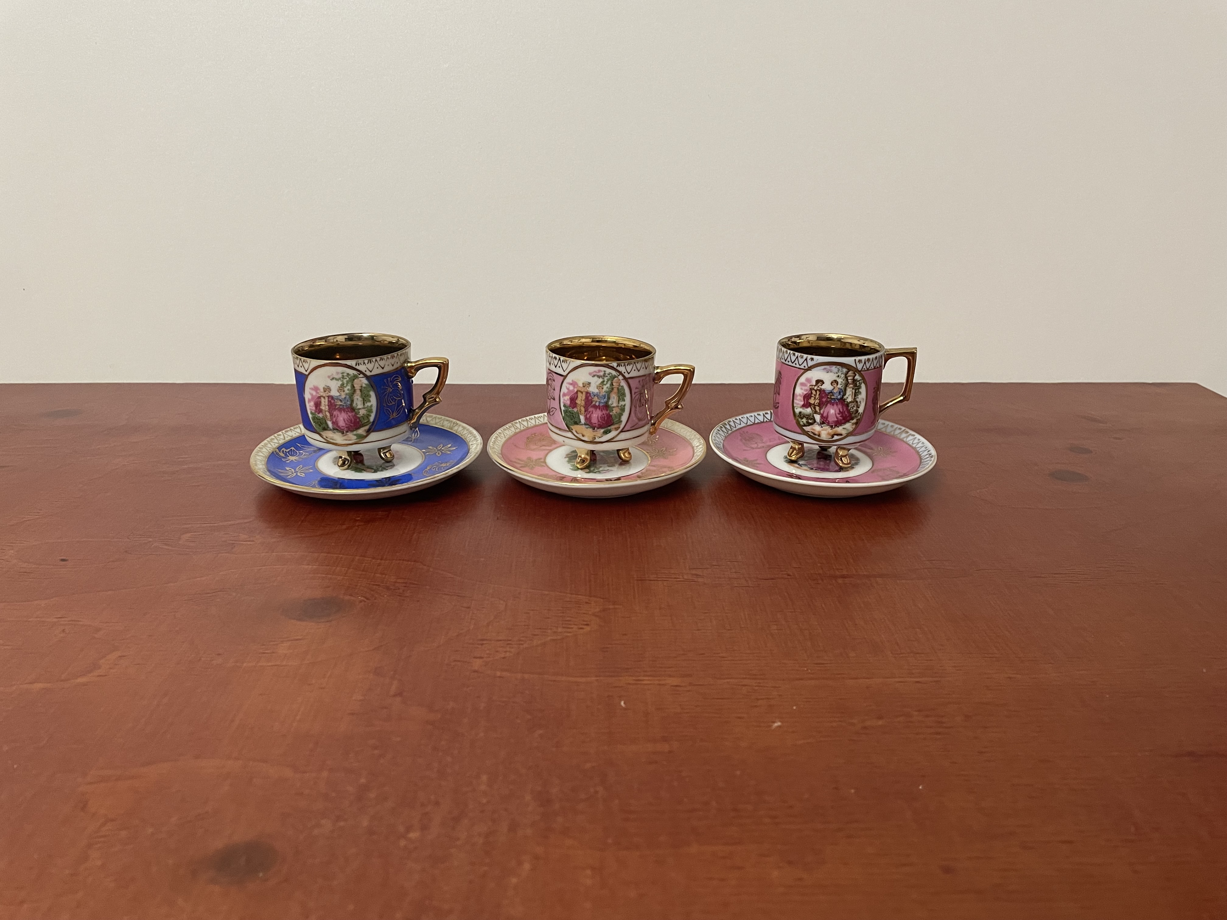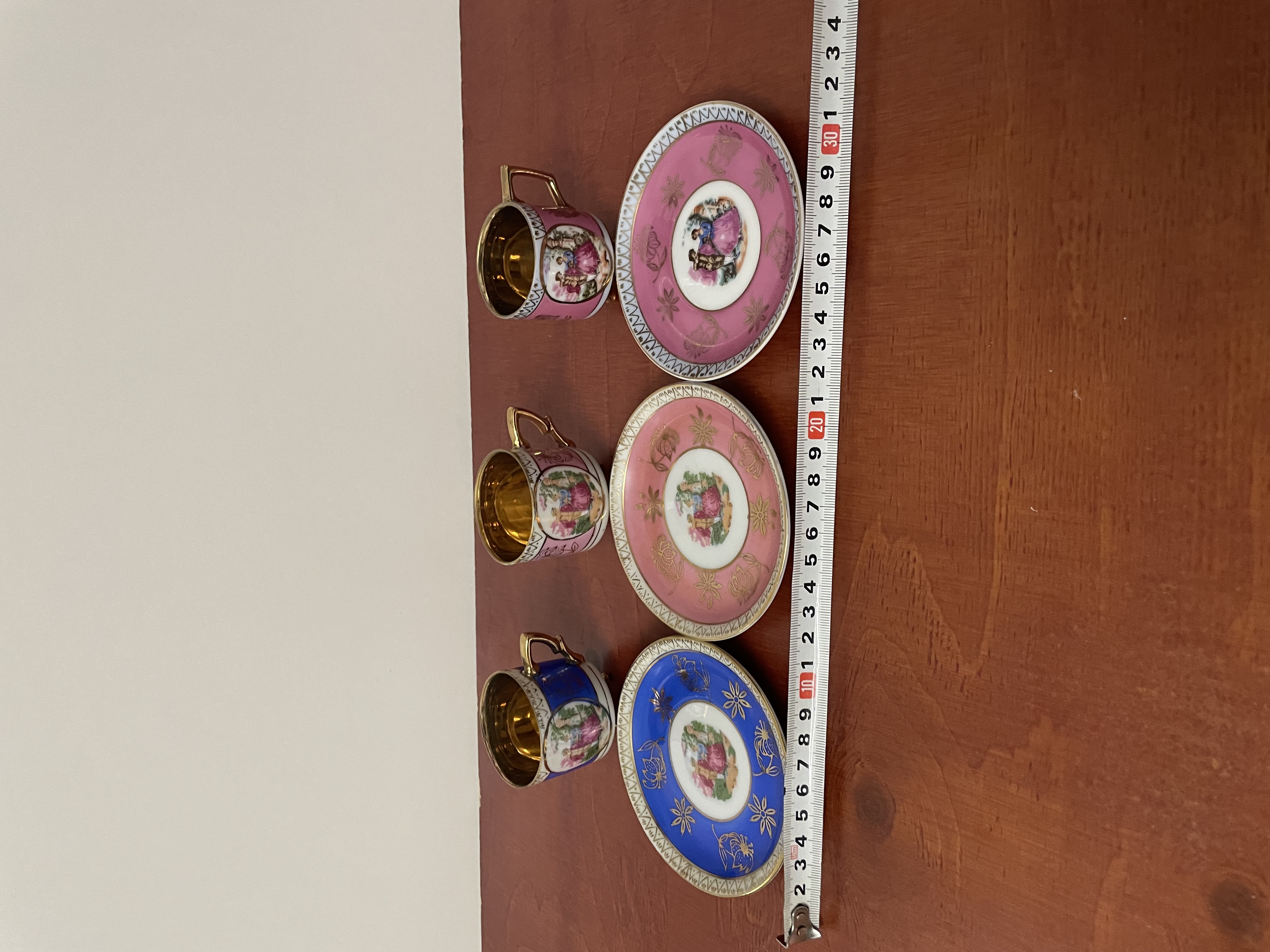 Porseleinen koffie bekers in goudkleurige binnenkant