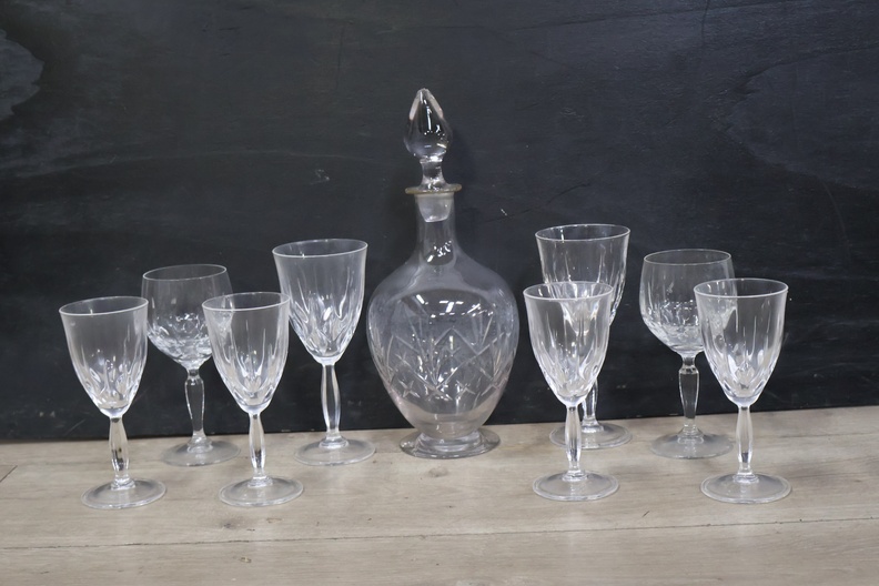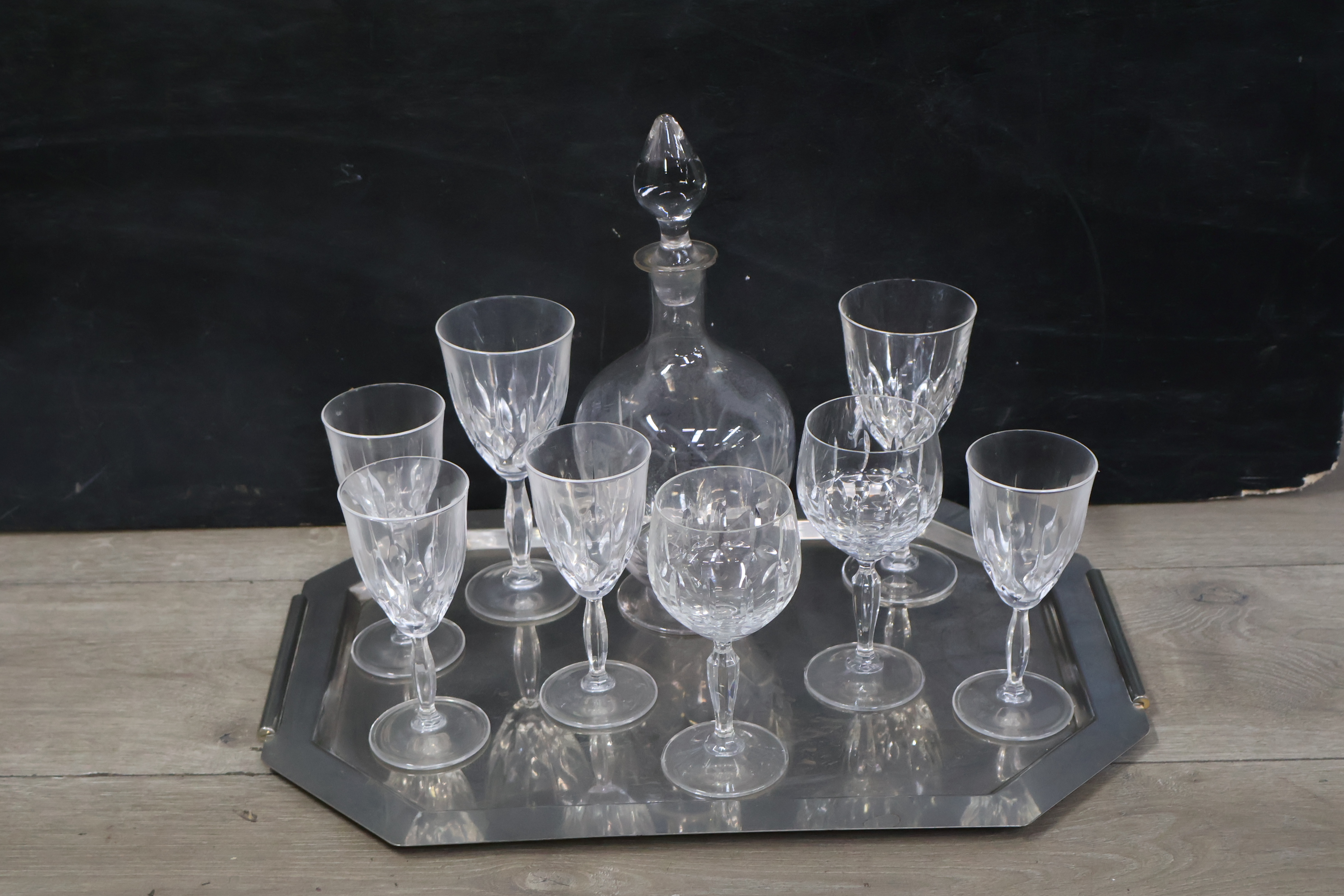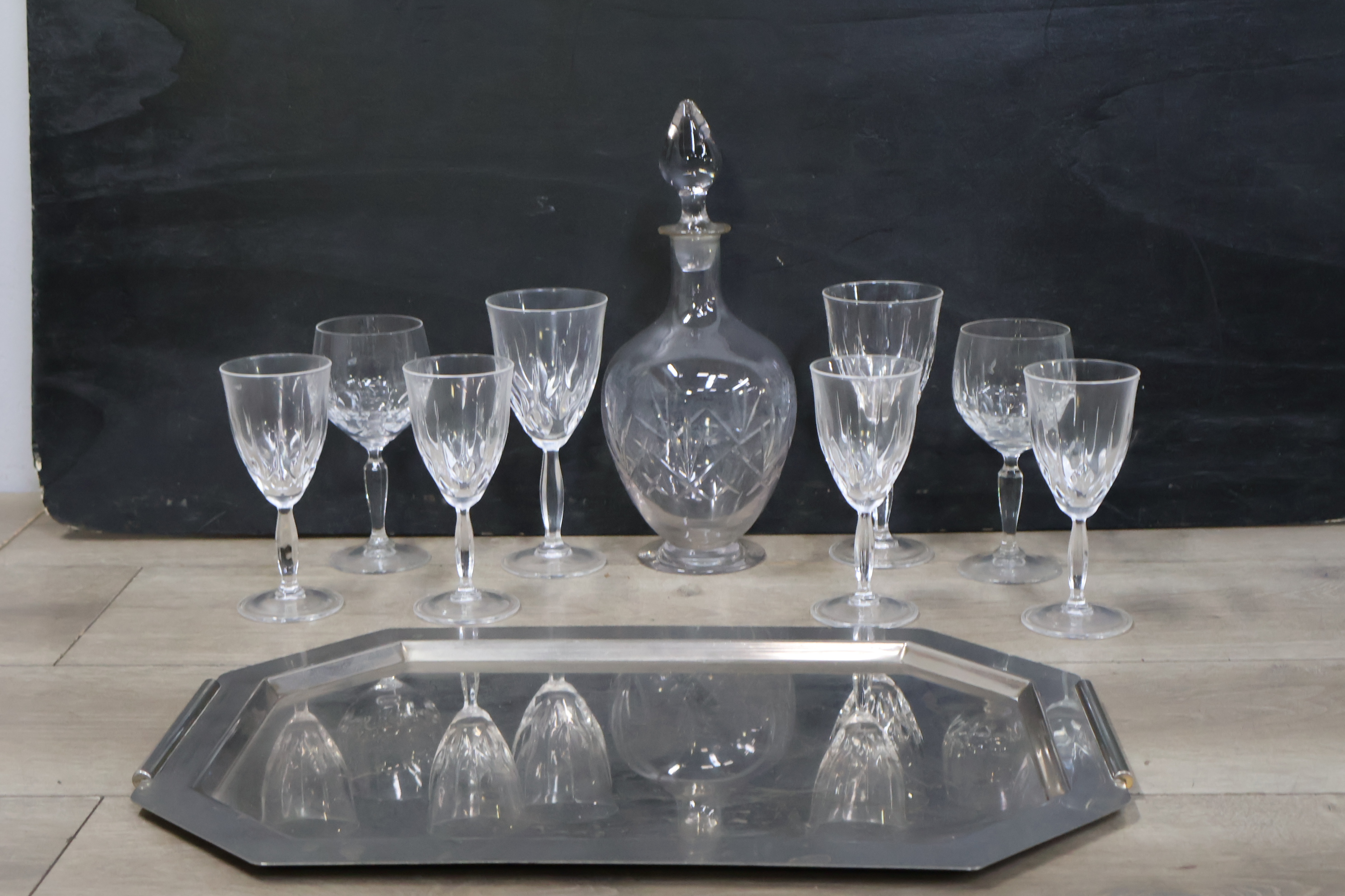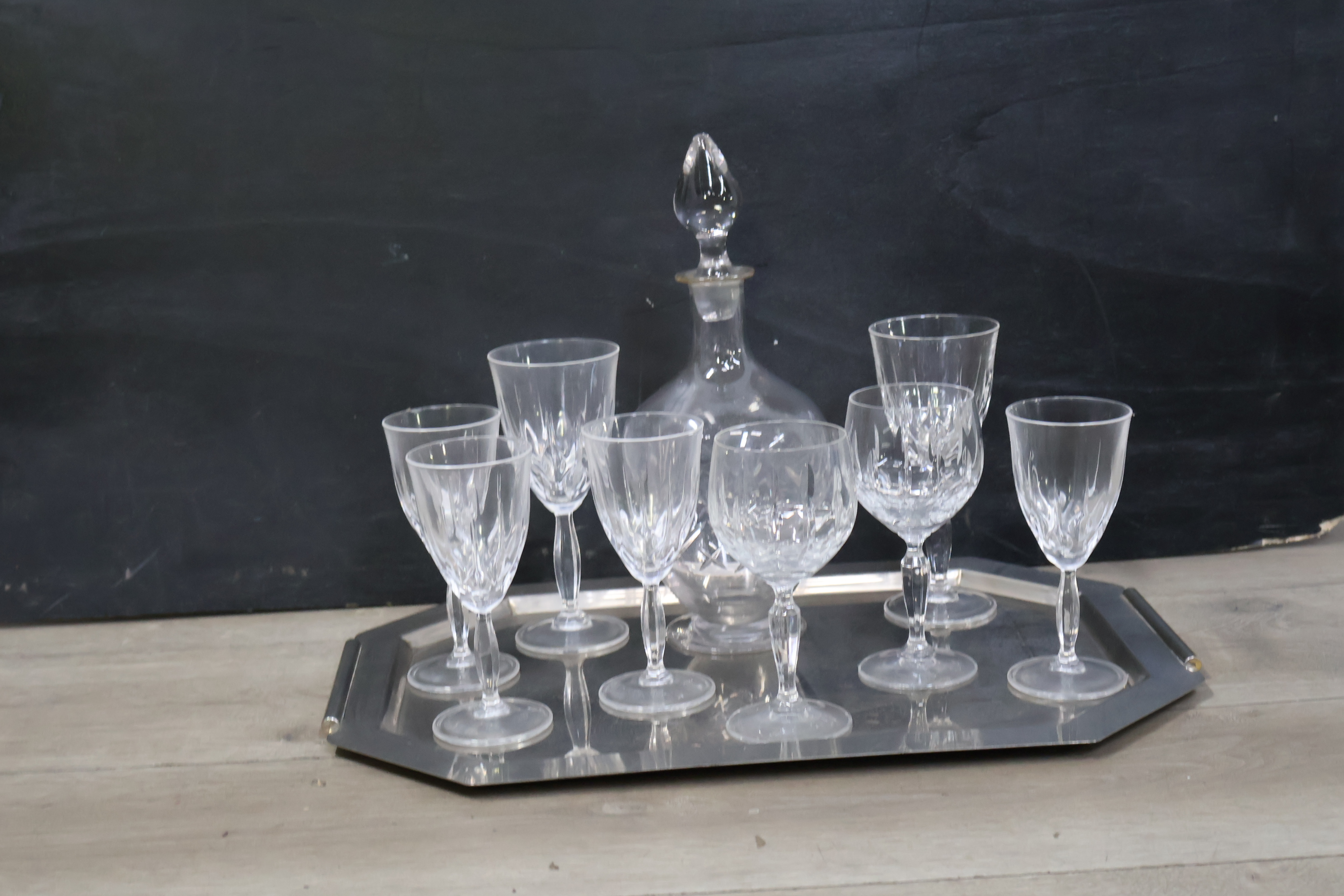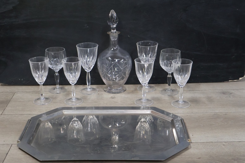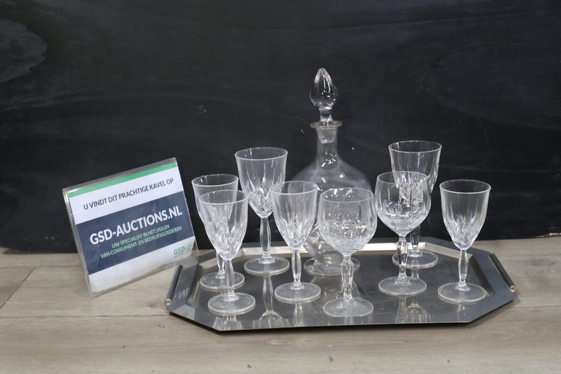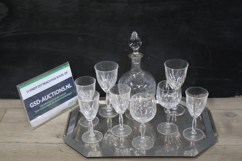 Kristallen Karaf met wijnglazen op een dienblad'