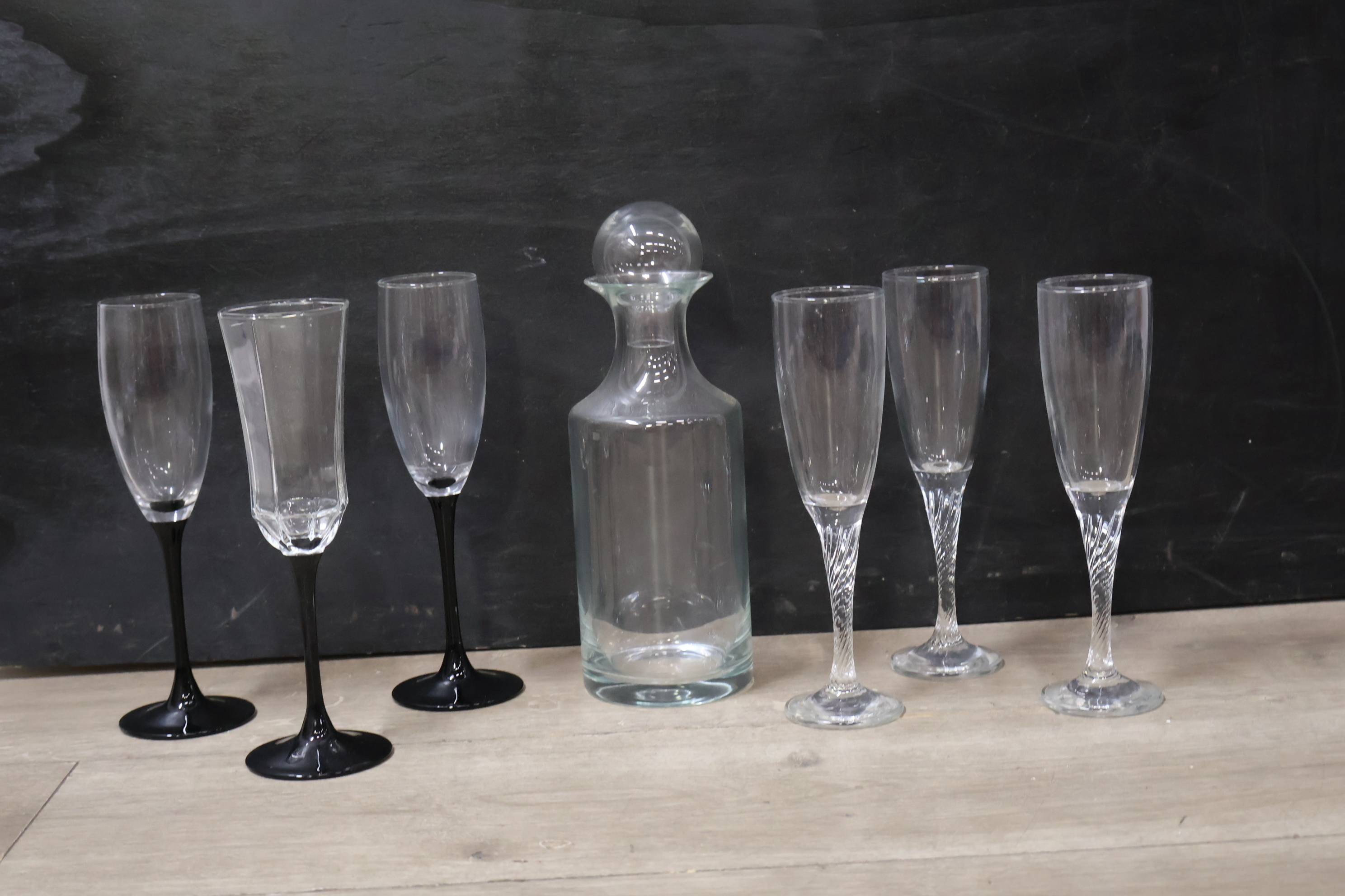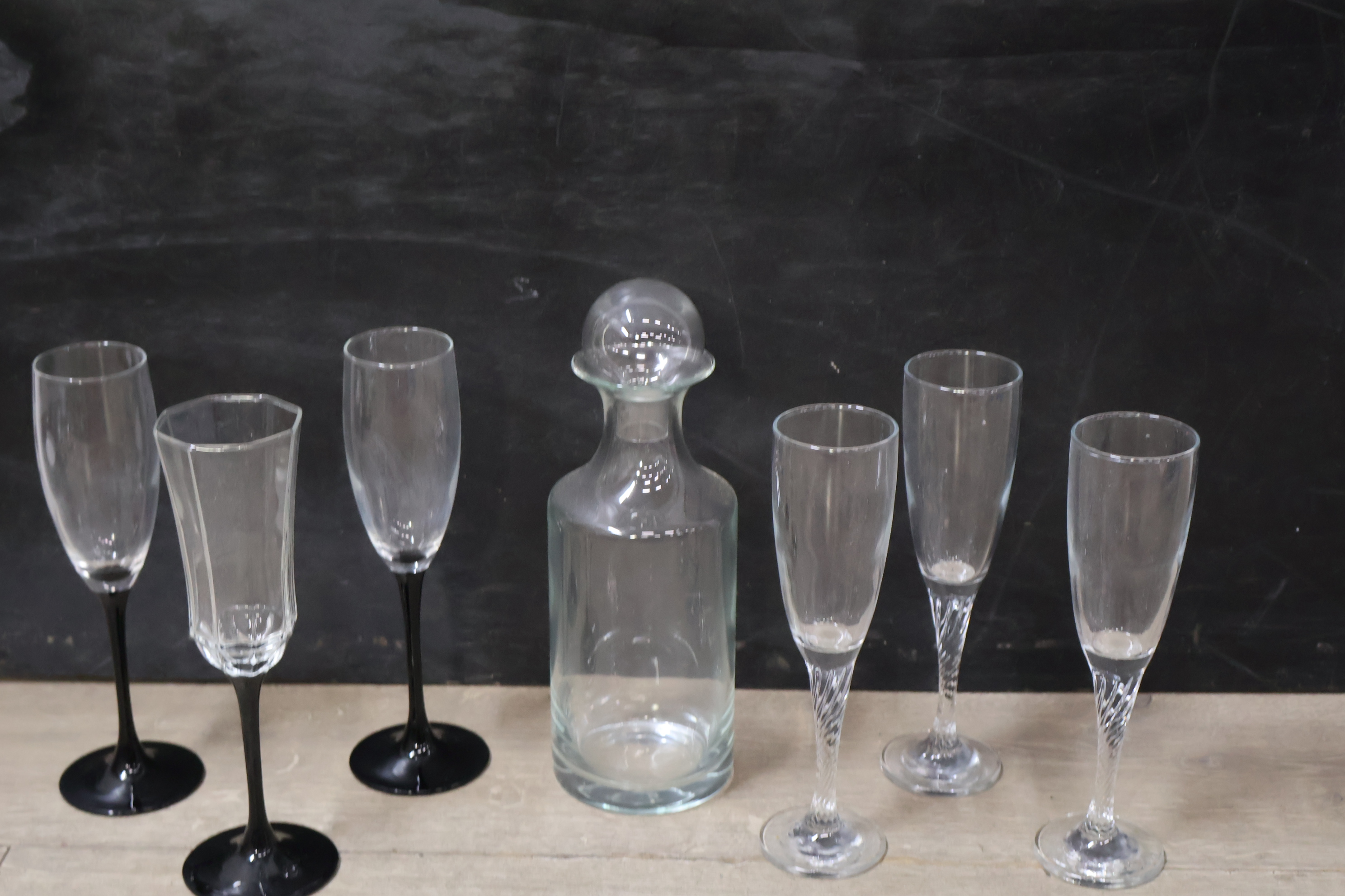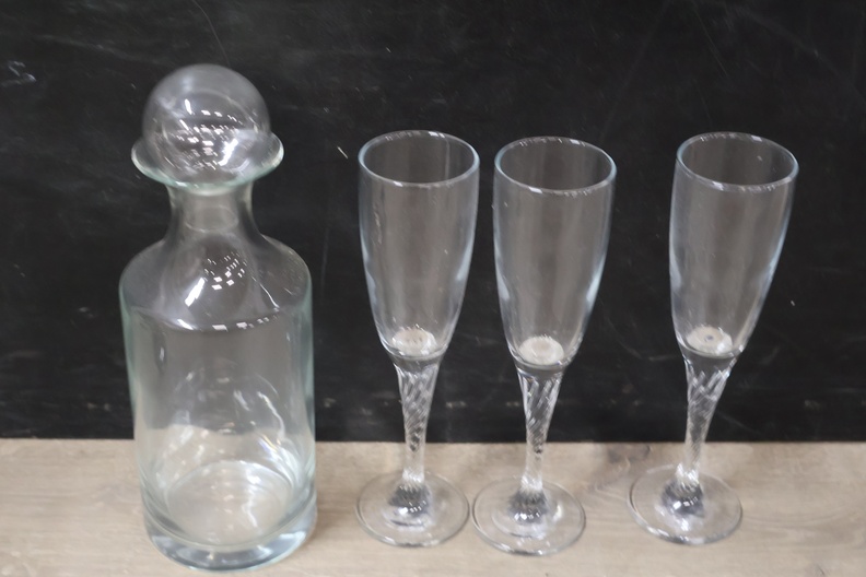 Set van 1 Karaf met 6 Champagnefluitjes''