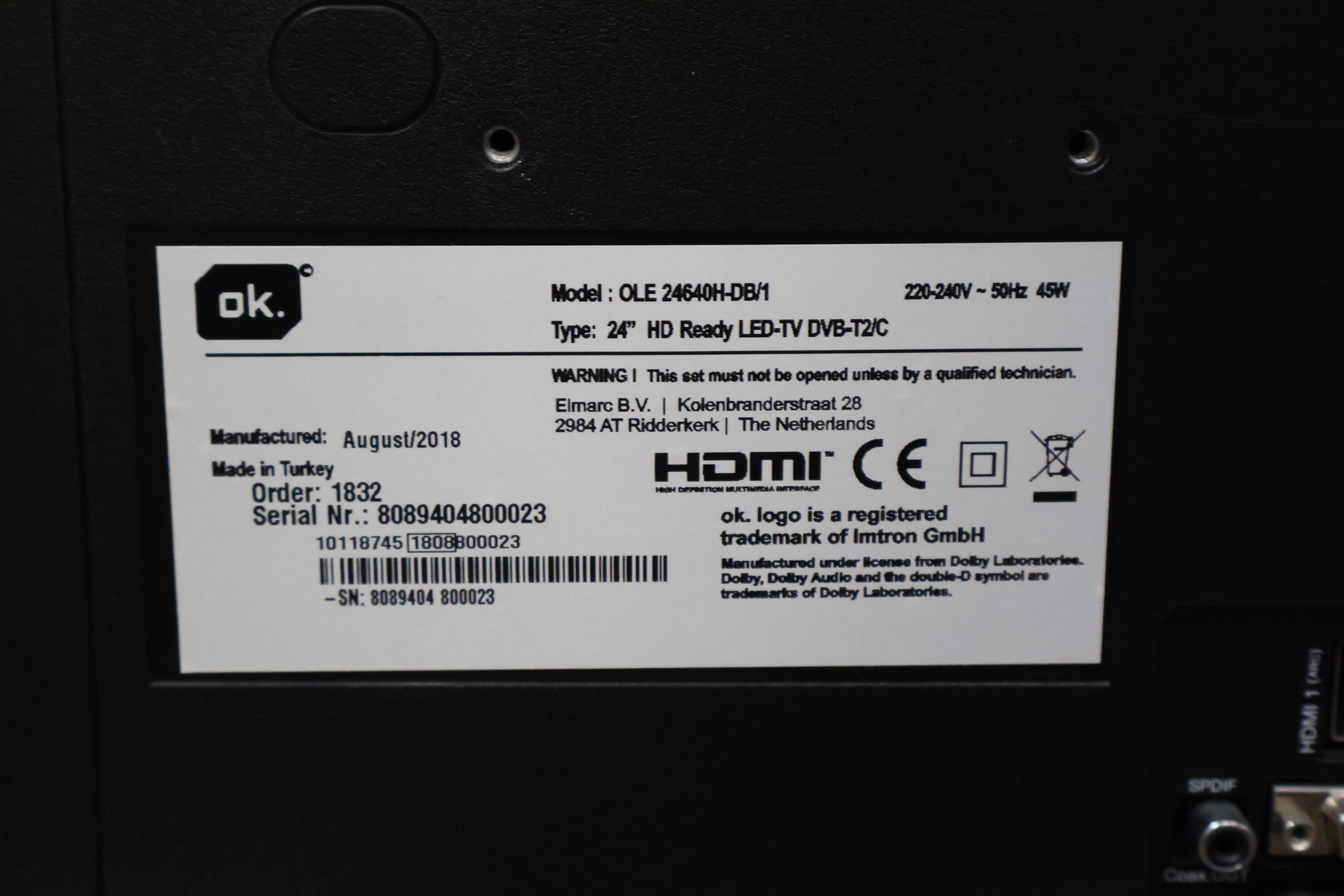 OK Led-televisie 23 inch