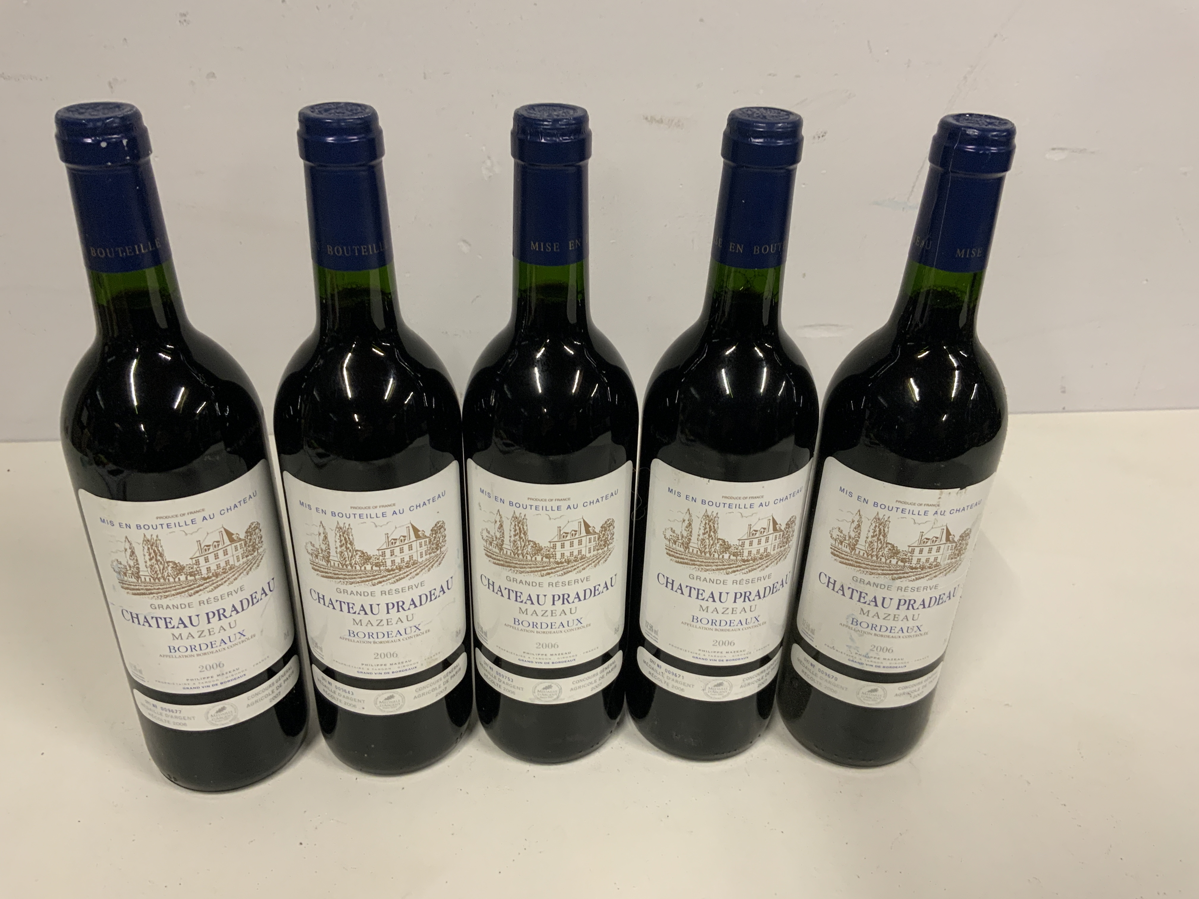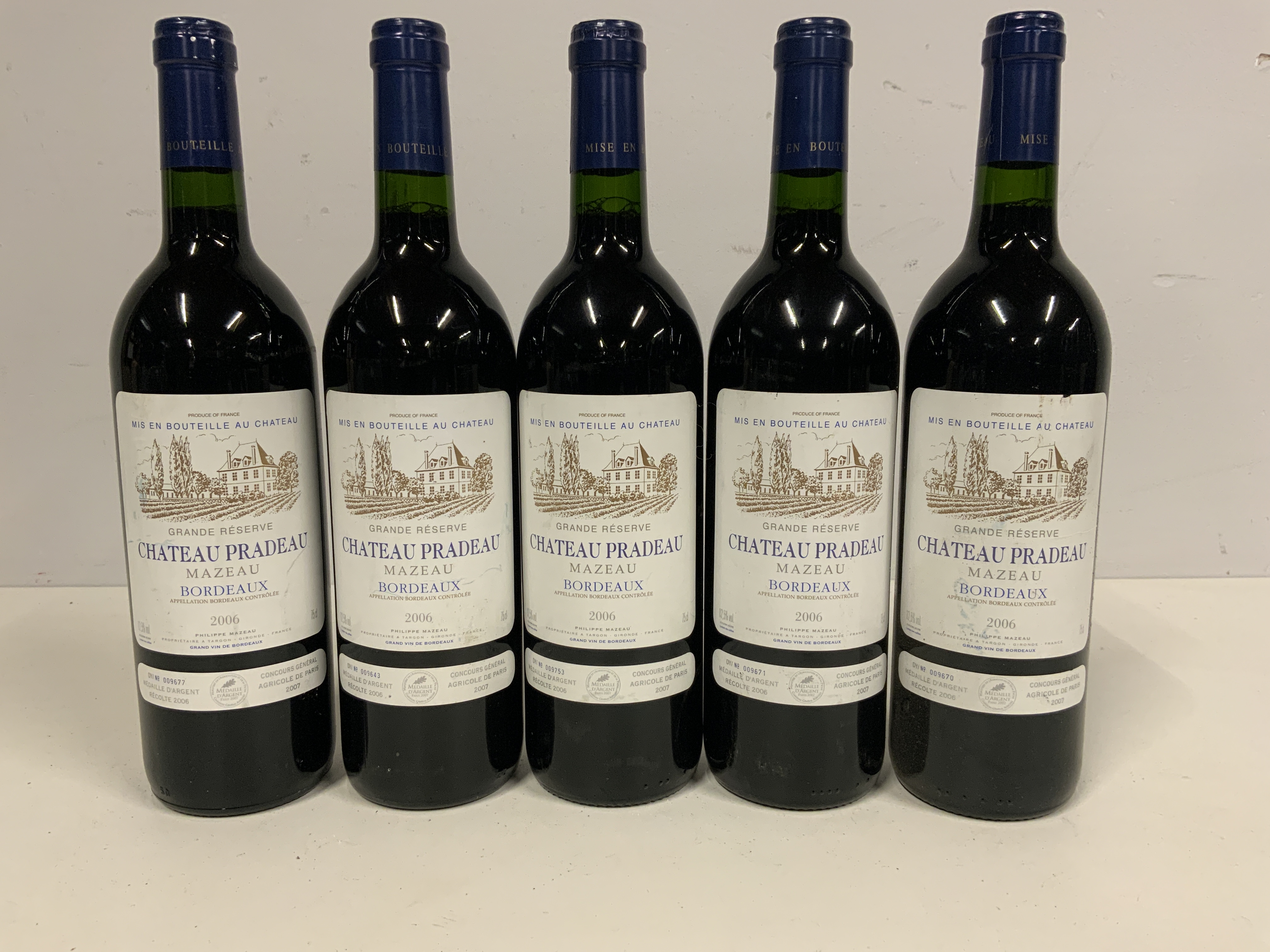 Set van 6 Flessen Chateau Pradeau Mazeau Bordeaux 2006